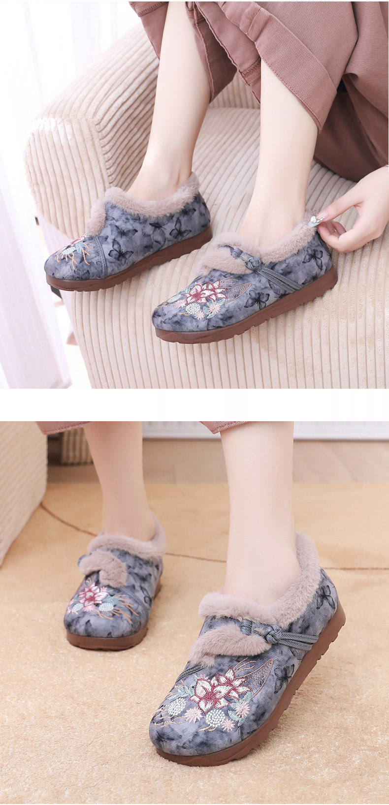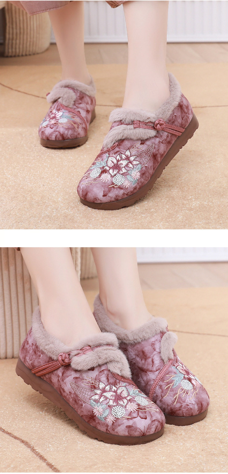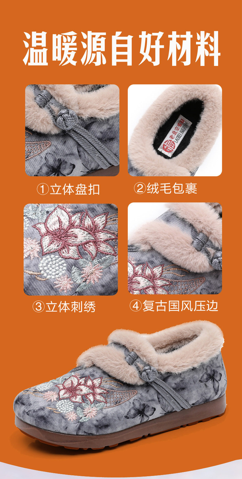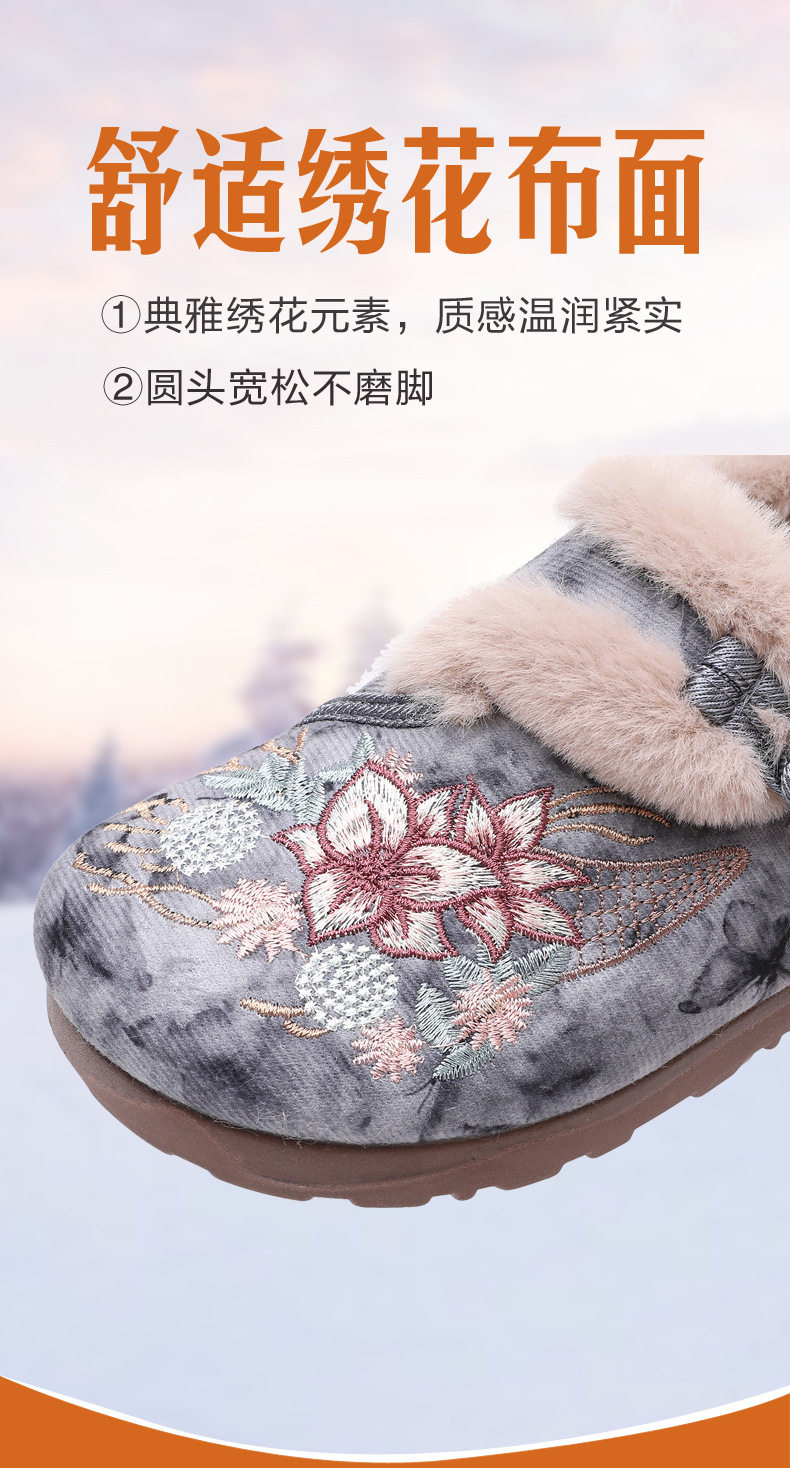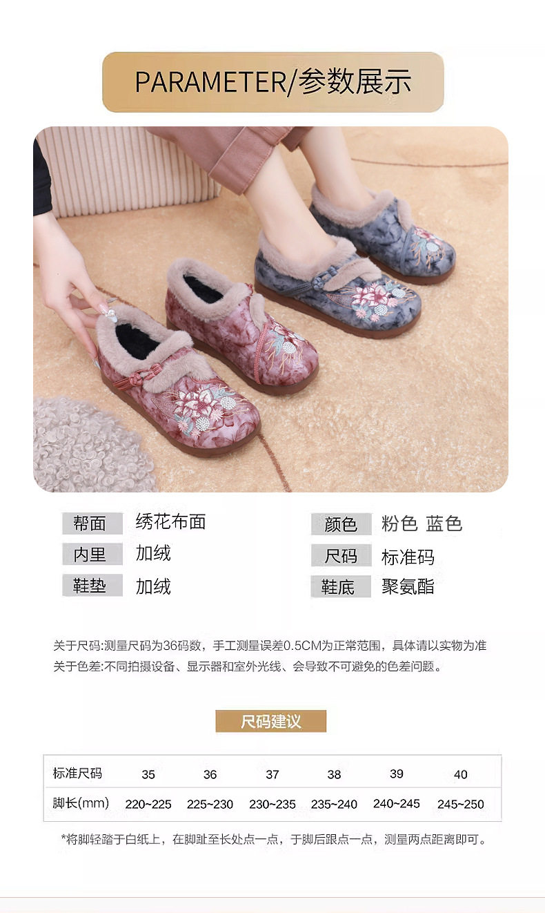 Women's Winter Hanfu Ethnic Cotton Shoes with Soft Soles, Old Beijing Cloth Shoes, Lightweight, Fleece-Lined for Warmth, Thickened for Warmth