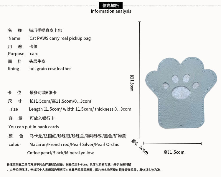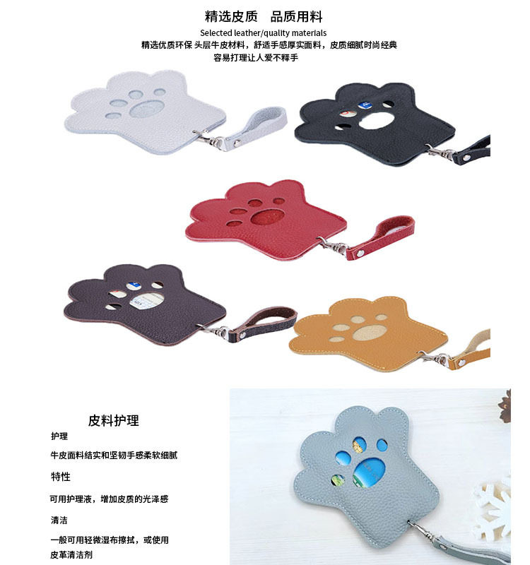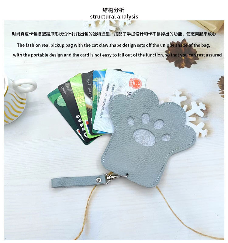 | Features | Cartoon cat claw design first layer cowhide card holder |
