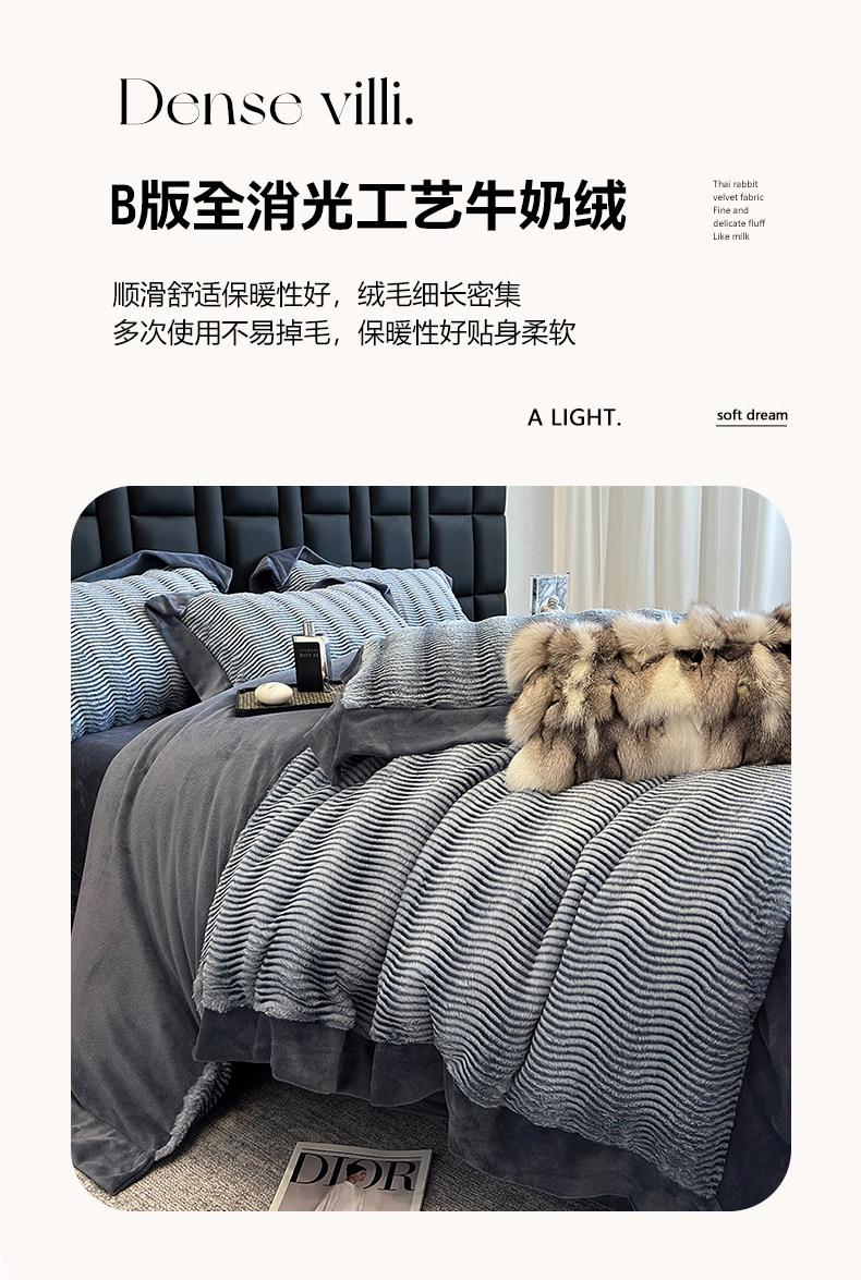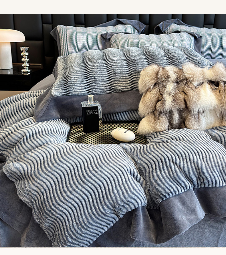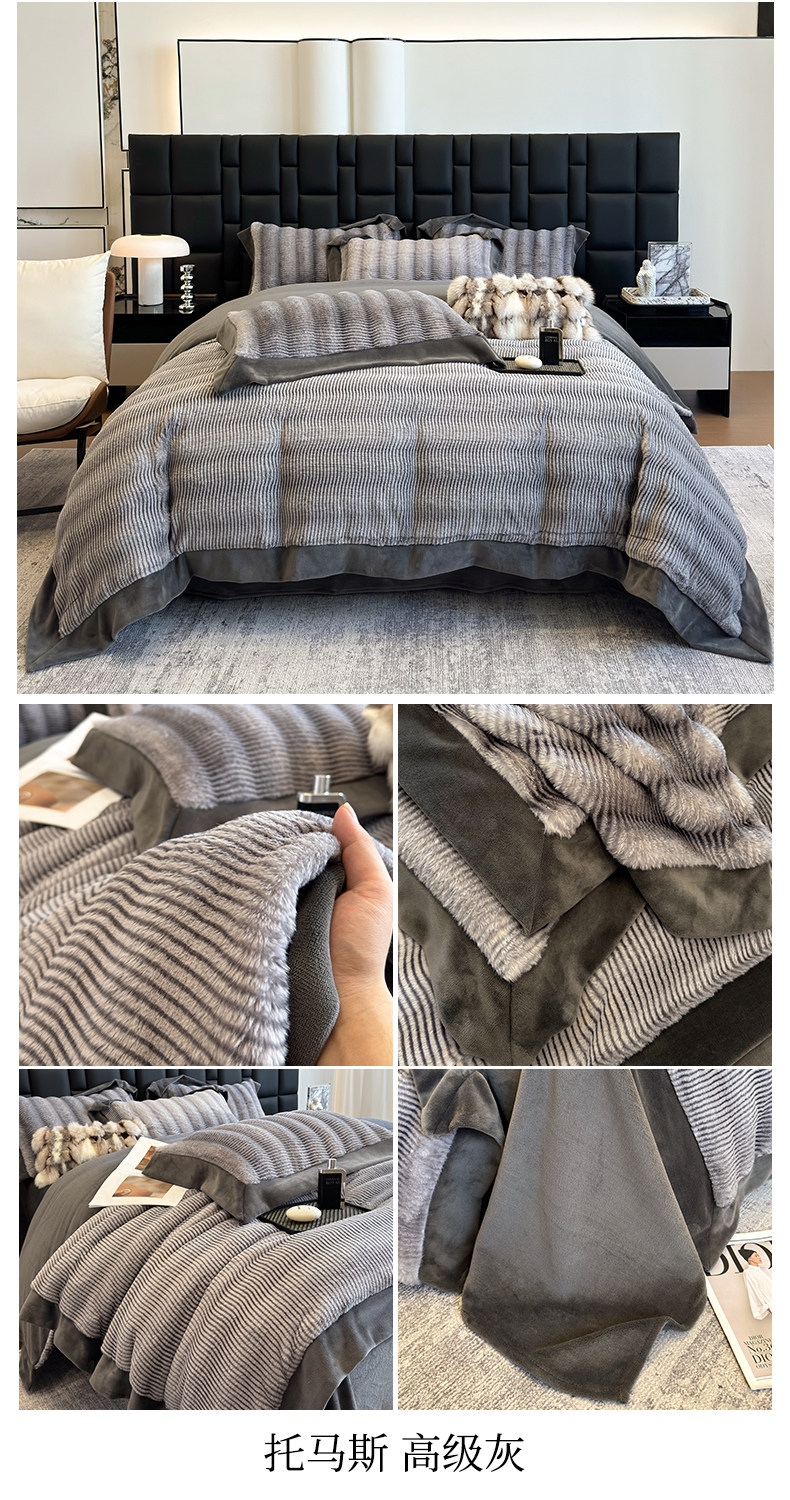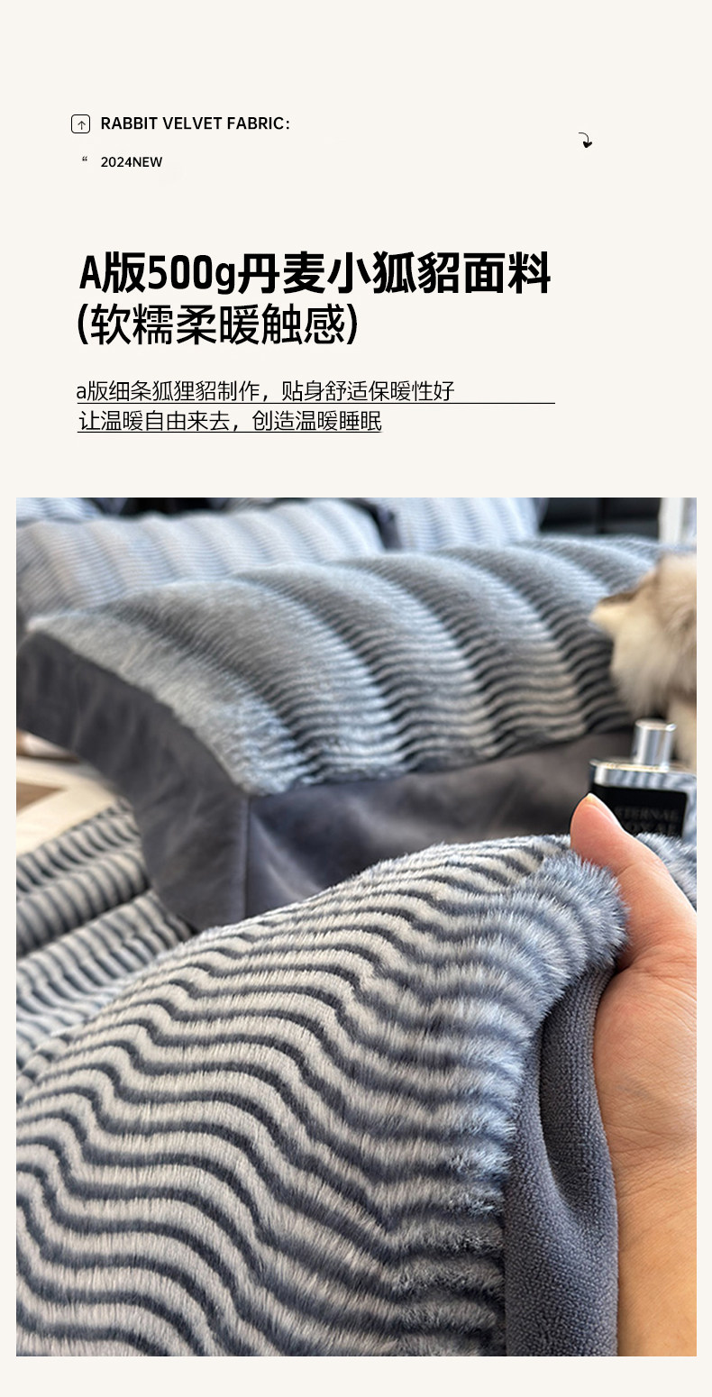 2024 Autumn/Winter Light Luxury Thin Fox Mink Four-Piece Set Non-Shedding Anti-Static Milk Velvet Wholesale High-End Thin Style