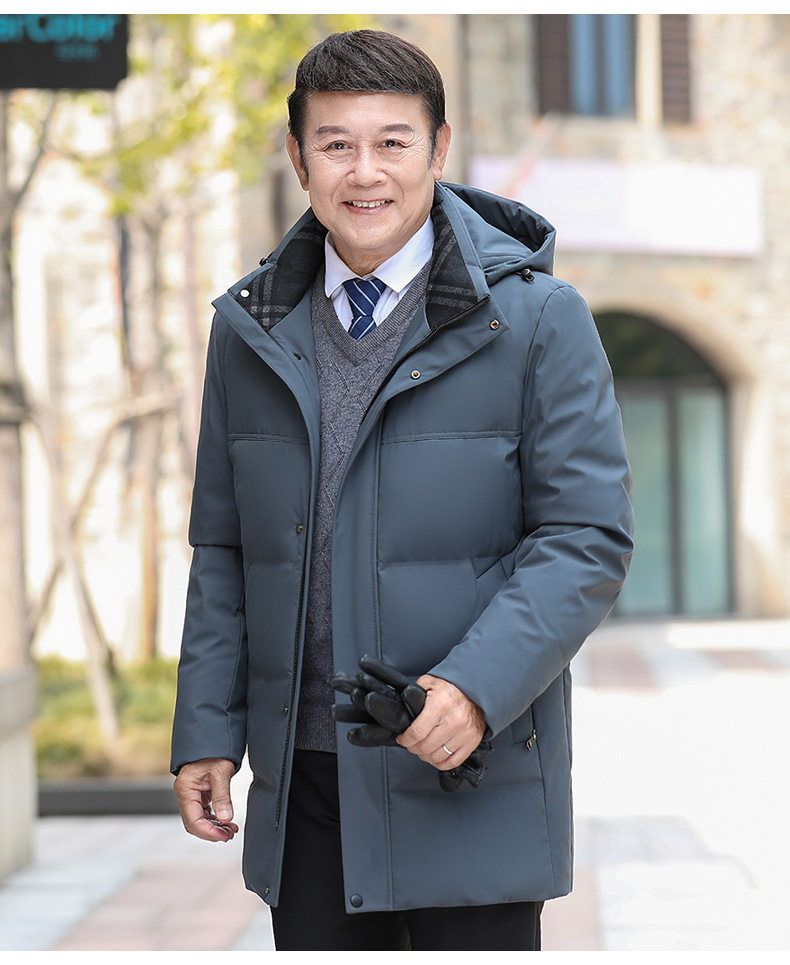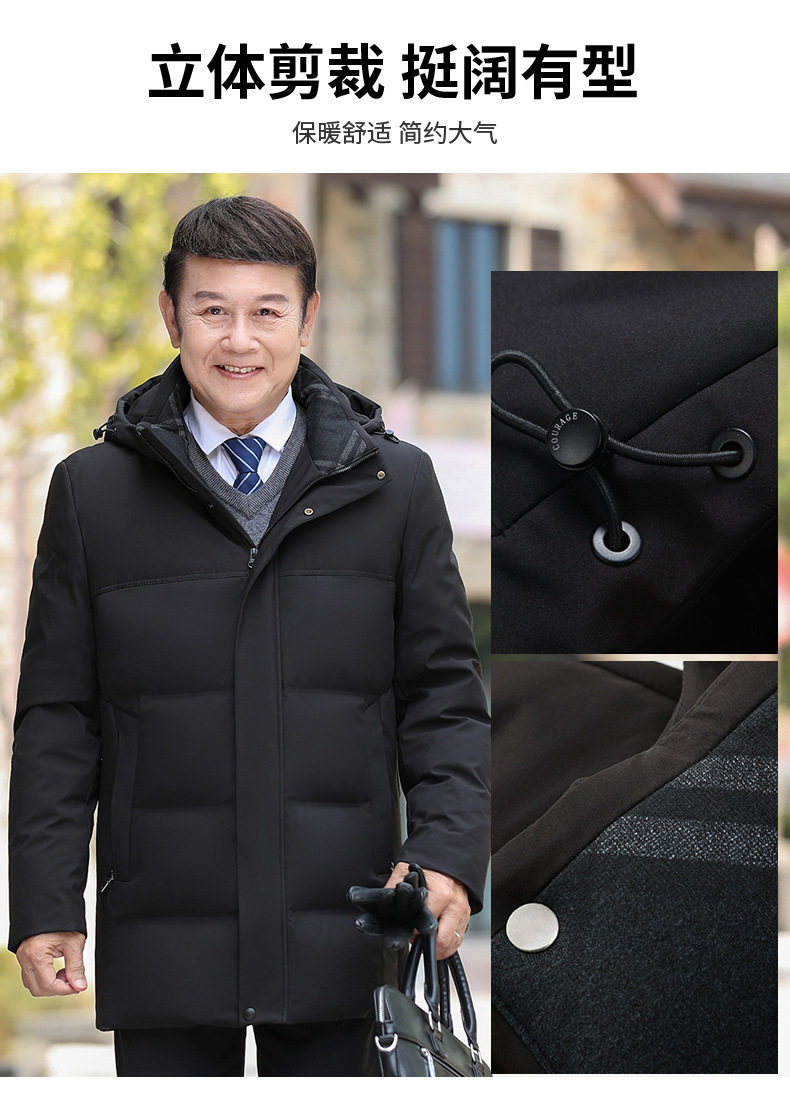 Middle-aged and elderly down jacket men's mid-length thick 2024 winter clothing for middle-aged and elderly fathers duck down warm jacket