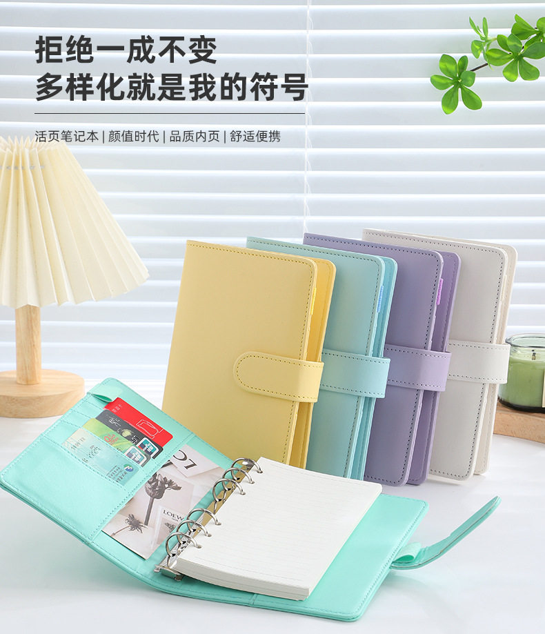 In-Stock A5/A6 Macaron-Colored Simple Notebook Pu Loose-Leaf Planner Portable Financial Planning Journal