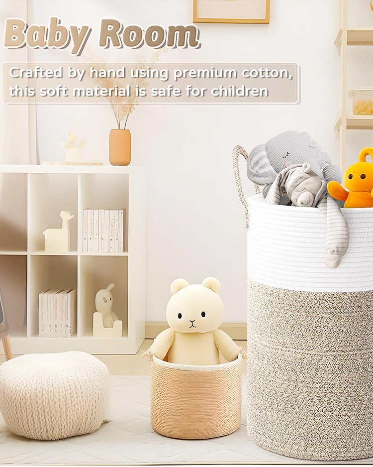 Cotton Rope Dirty Clothes Basket Cross-Border Popular Round Woven 40L Hand Basket 60L Foldableable Large Capacity Dirty Clothes Basket 80L