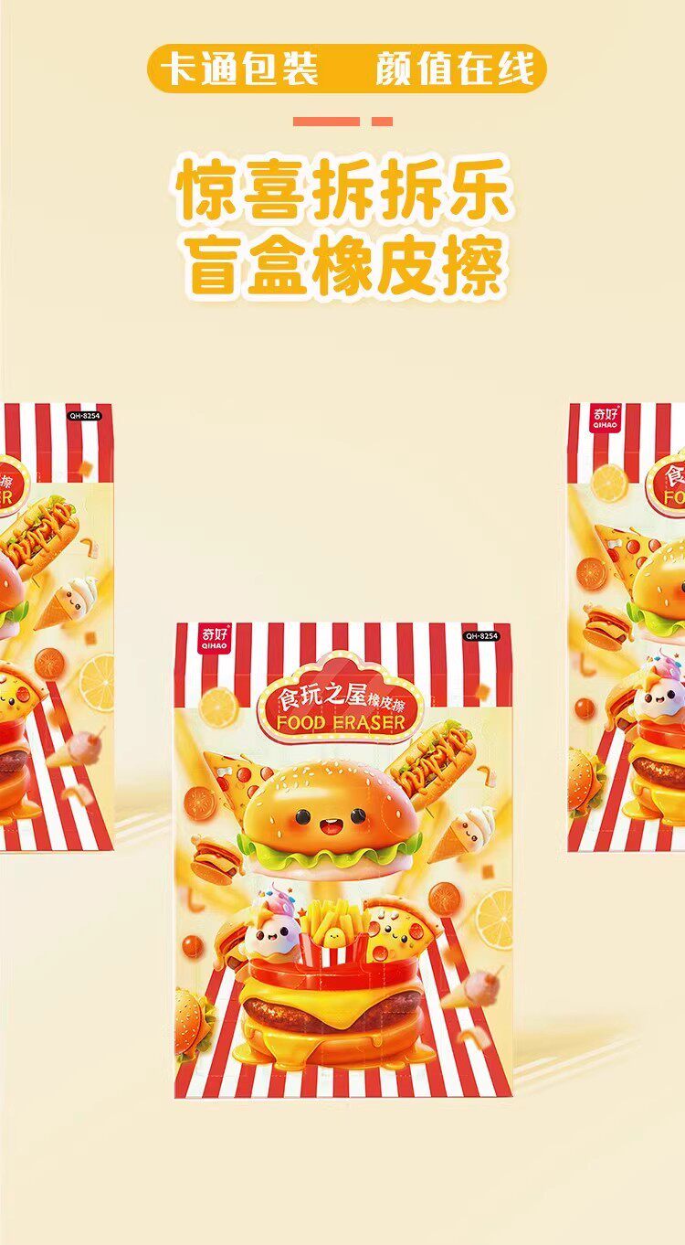 Qihao Cartoon Rubber Gift Box Food and Play House Demolition Music Children's Hole Music Eraser suit Christmas Gift