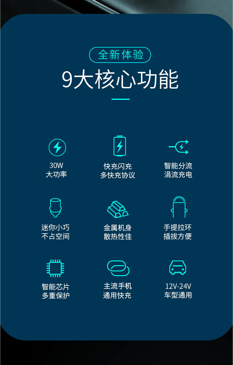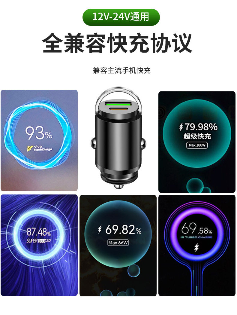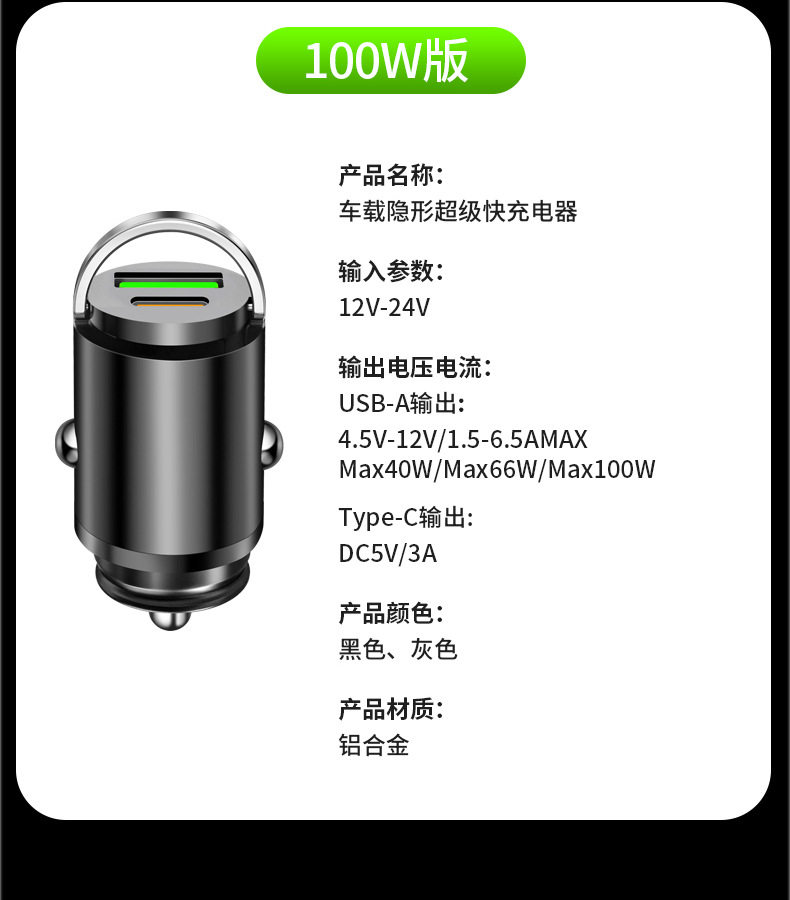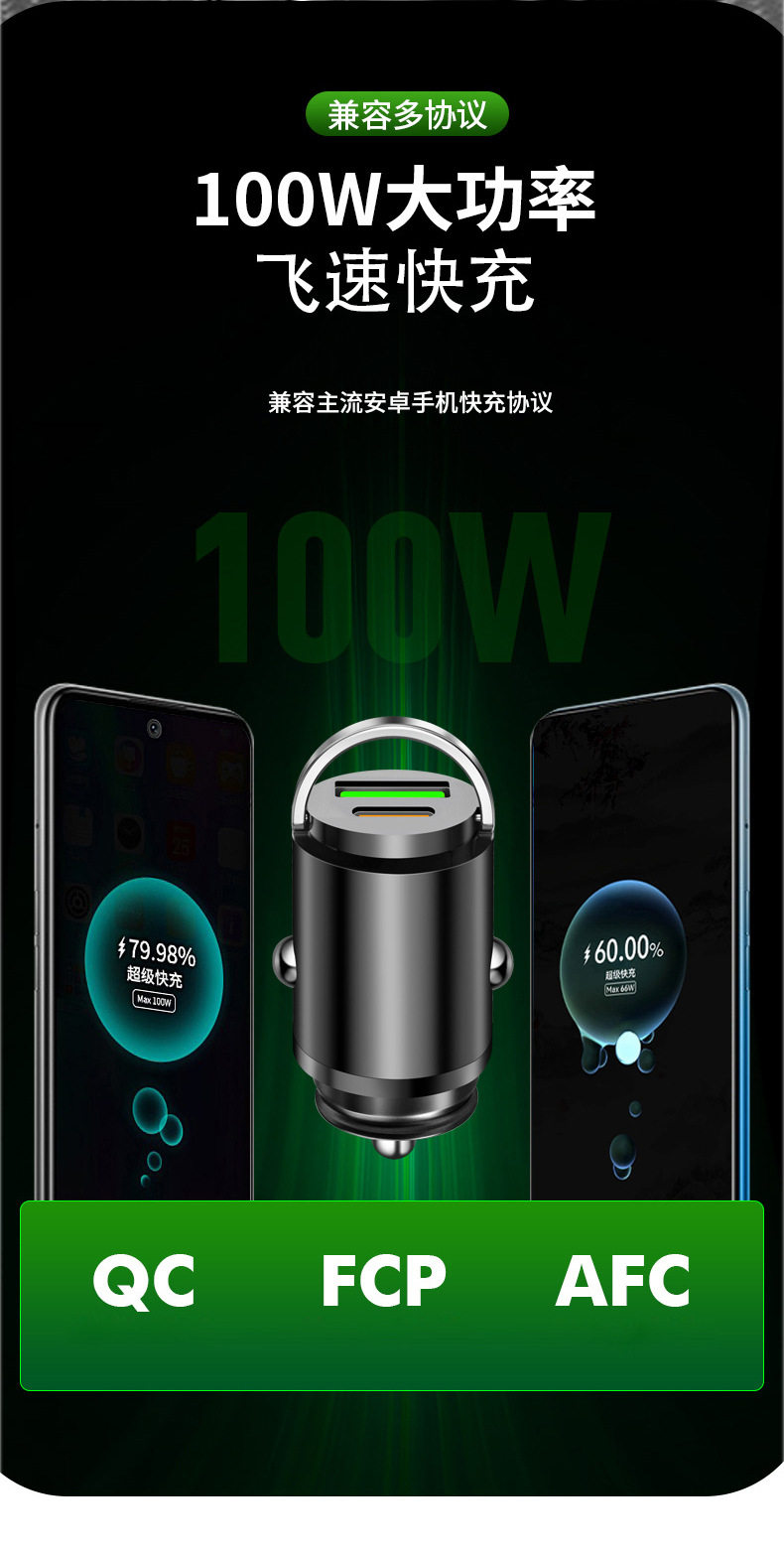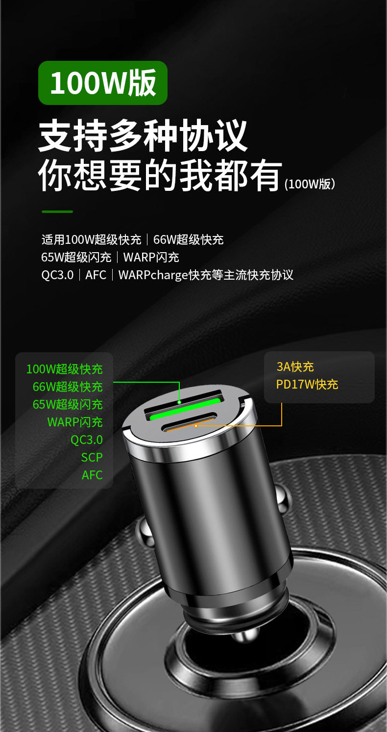 100w car charger one drag two cigarette lighter mobile phone conversion plug mini car charger wireless invisible car