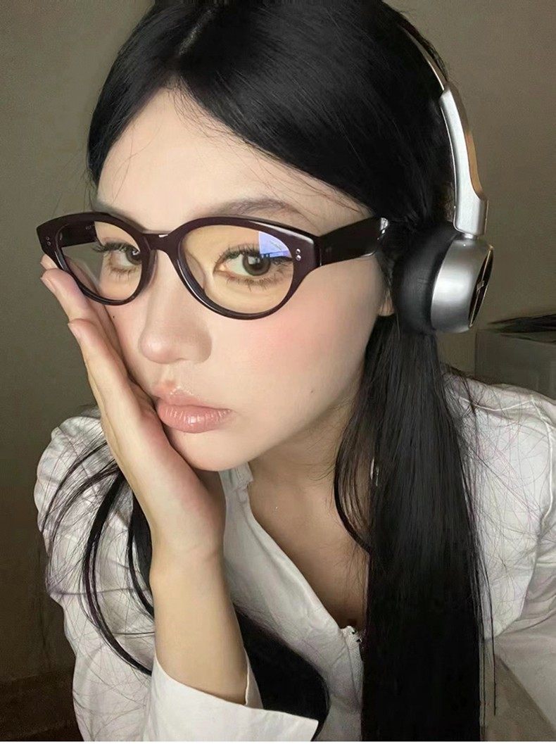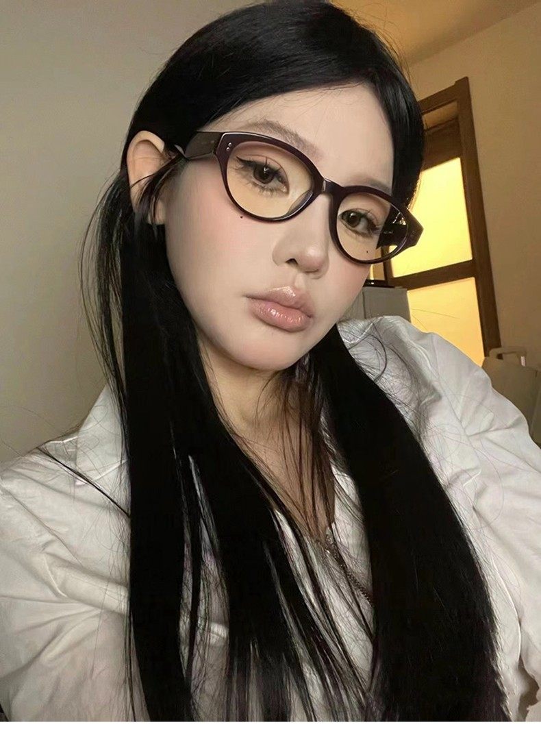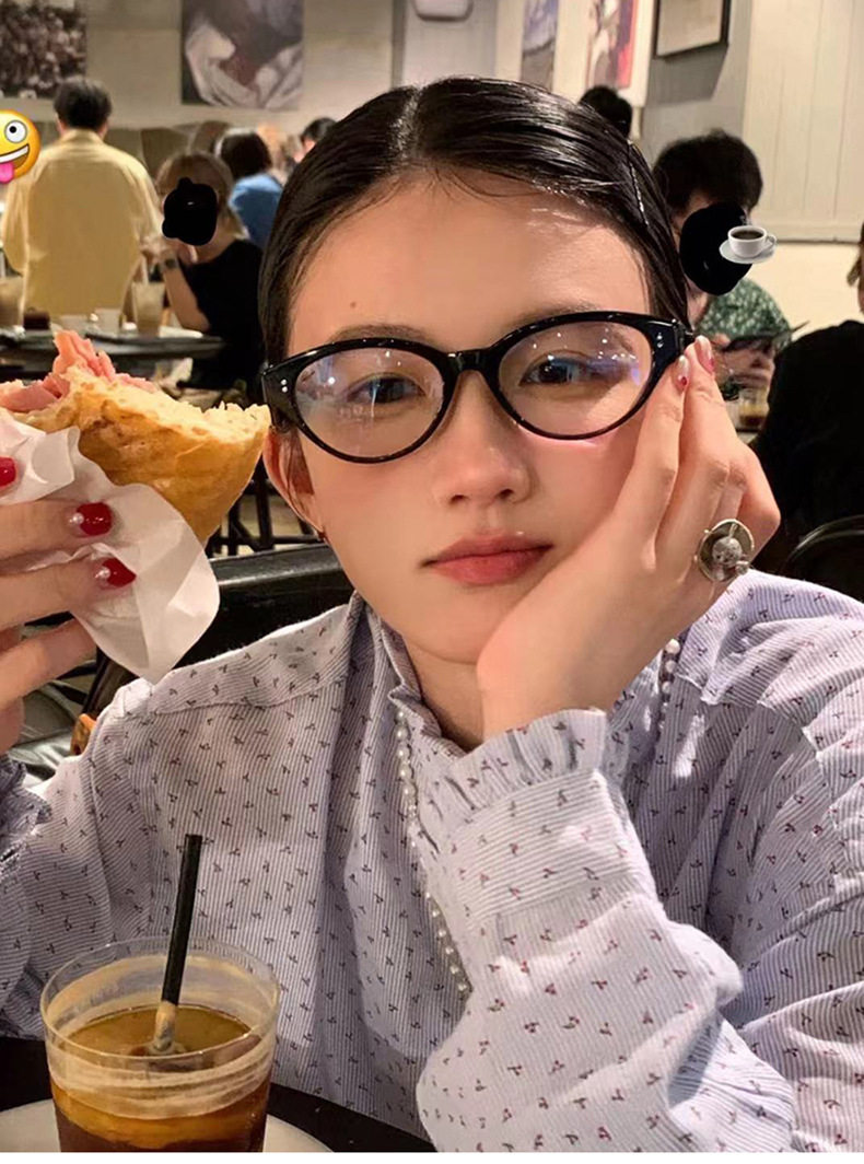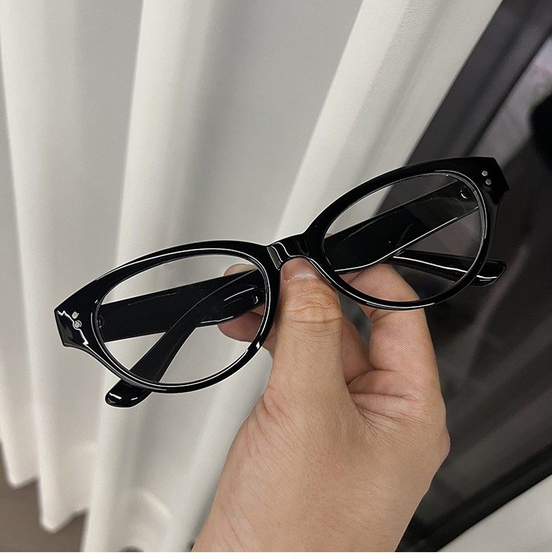 High-end Retro Cat's Eye Black Frame Myopia Glasses Women's Korean Style Square and Round Face Plain Face Anti-blue Light Can-match Internet Popular