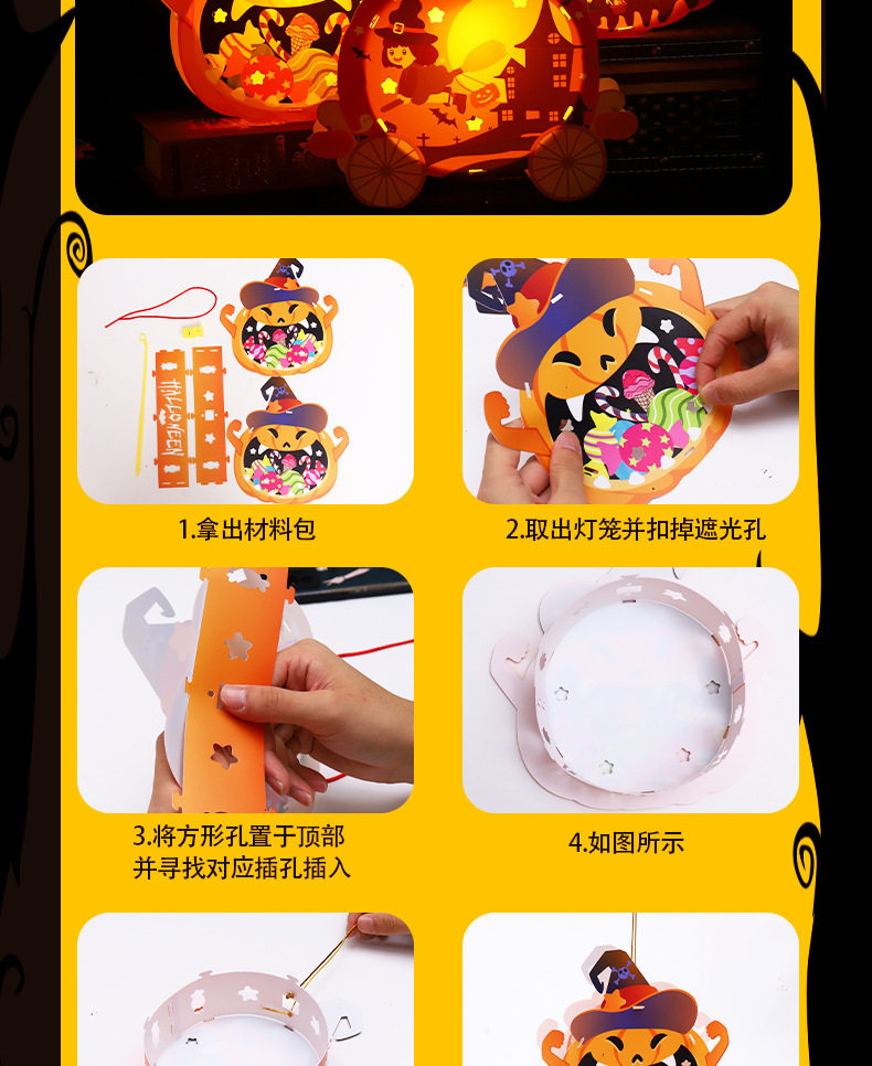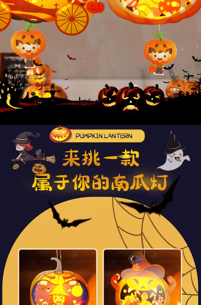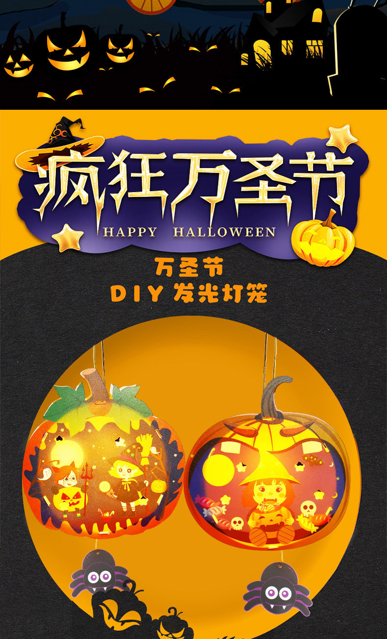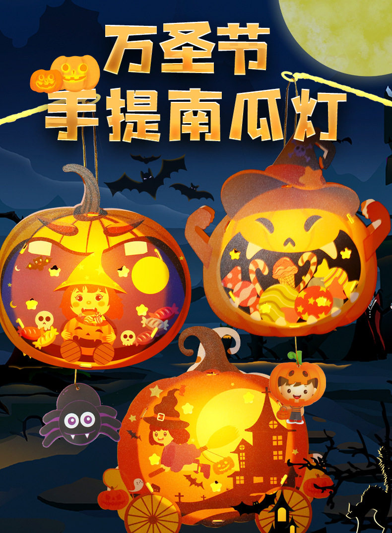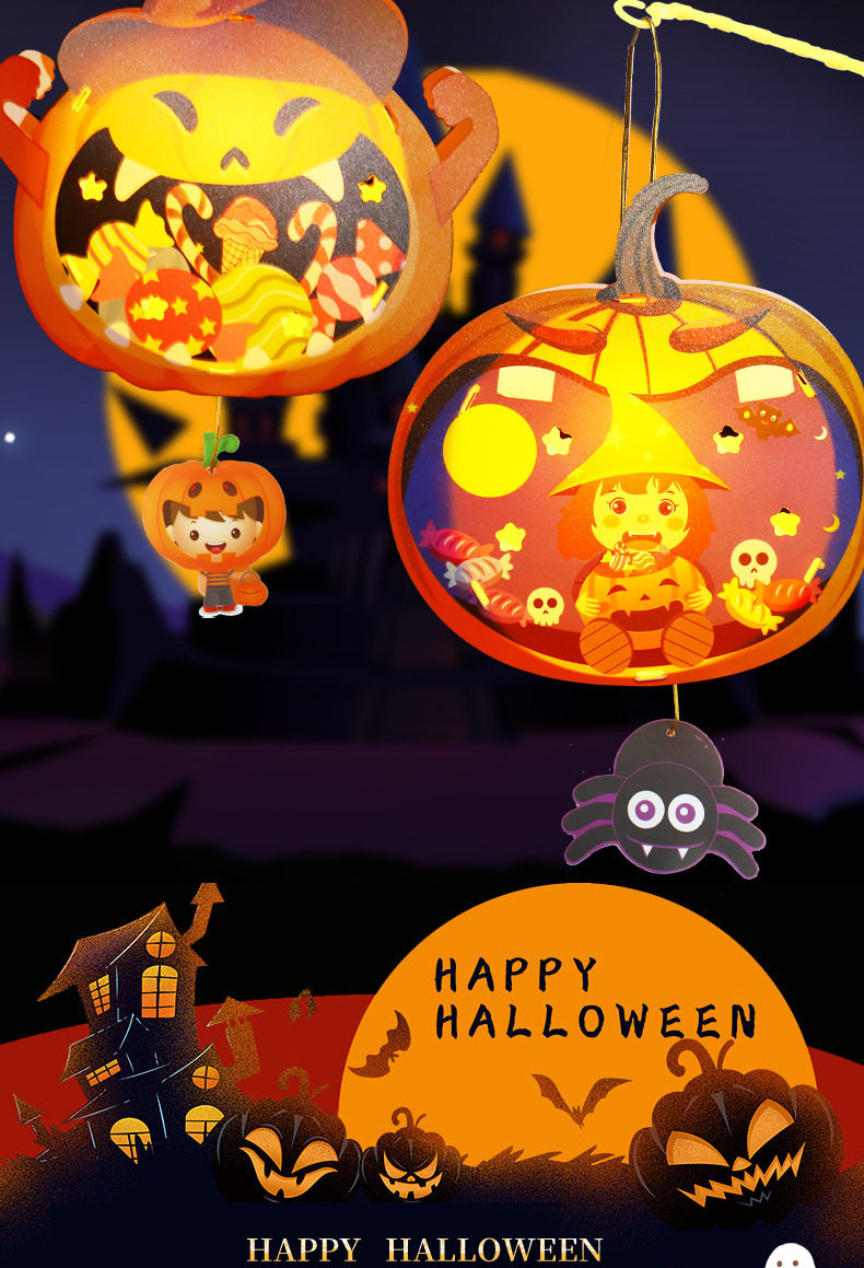 Halloween Props Pumpkin Lantern Decoration Lantern Children's Handmade DIY Portable Lamp Luminous Kindergarten Atmosphere Arrangement