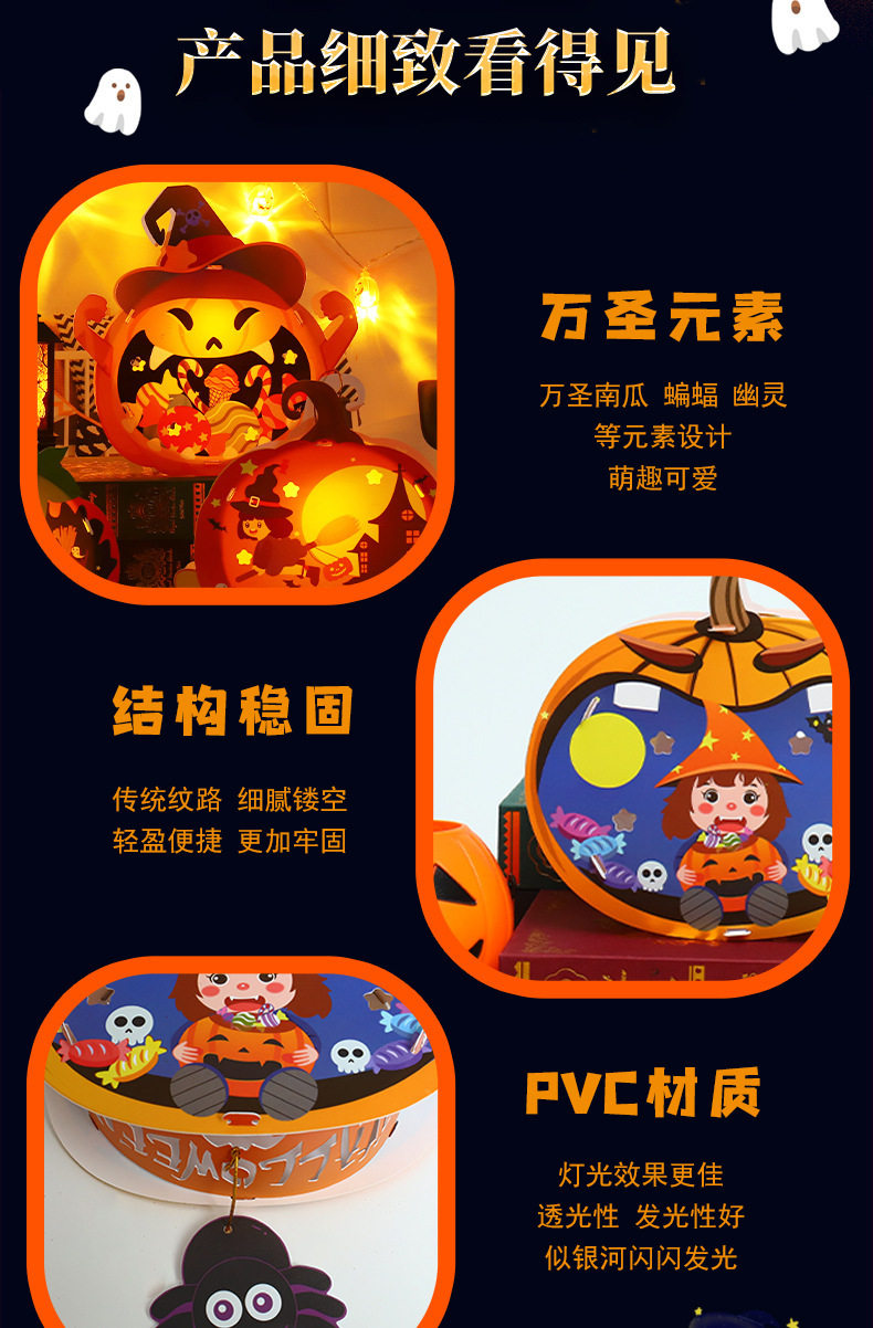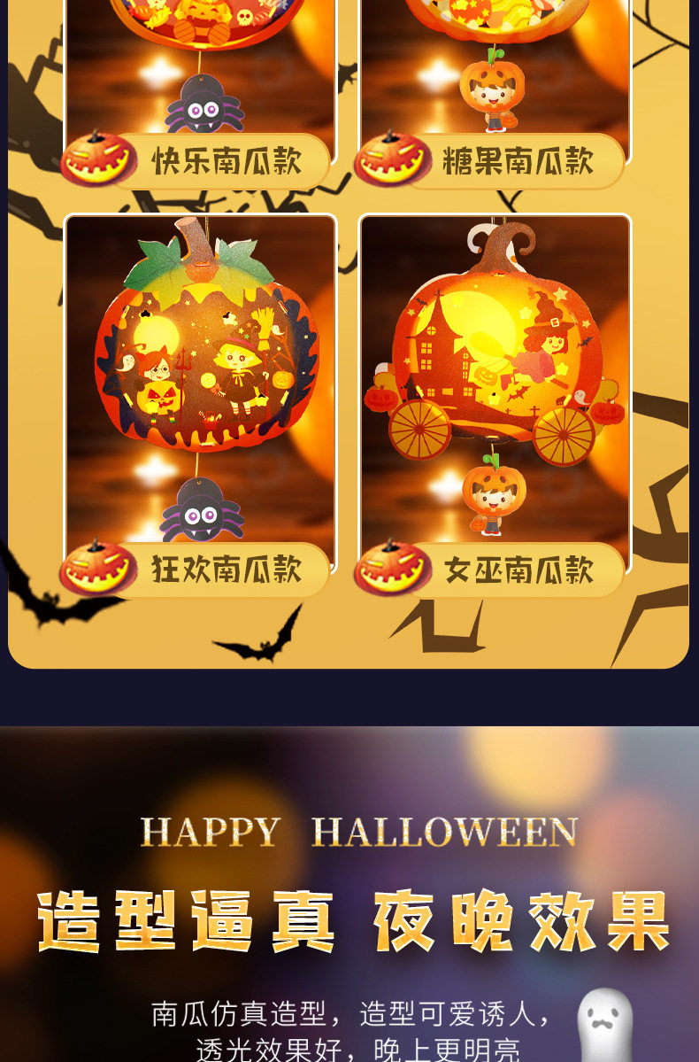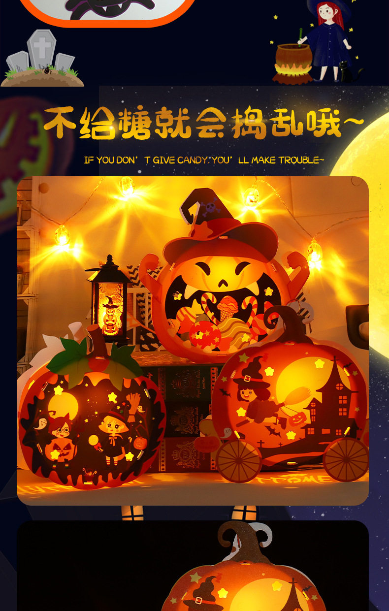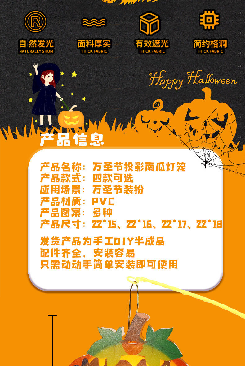 | Color | Happy pumpkin,Candy pumpkin,Witch pumpkin,Carnival pumpkin,Ghost style,Pumpkin style,Black cat model,Witch style |