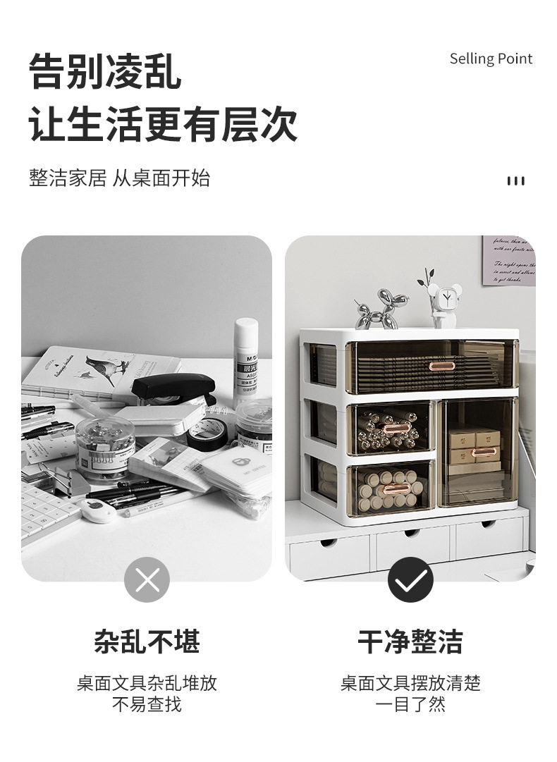 Desktop Large Capacity Storage Box Dressing Table Top Skin Care Finishing Rack Student Stationery Multi-Layer Drawer Storage Box