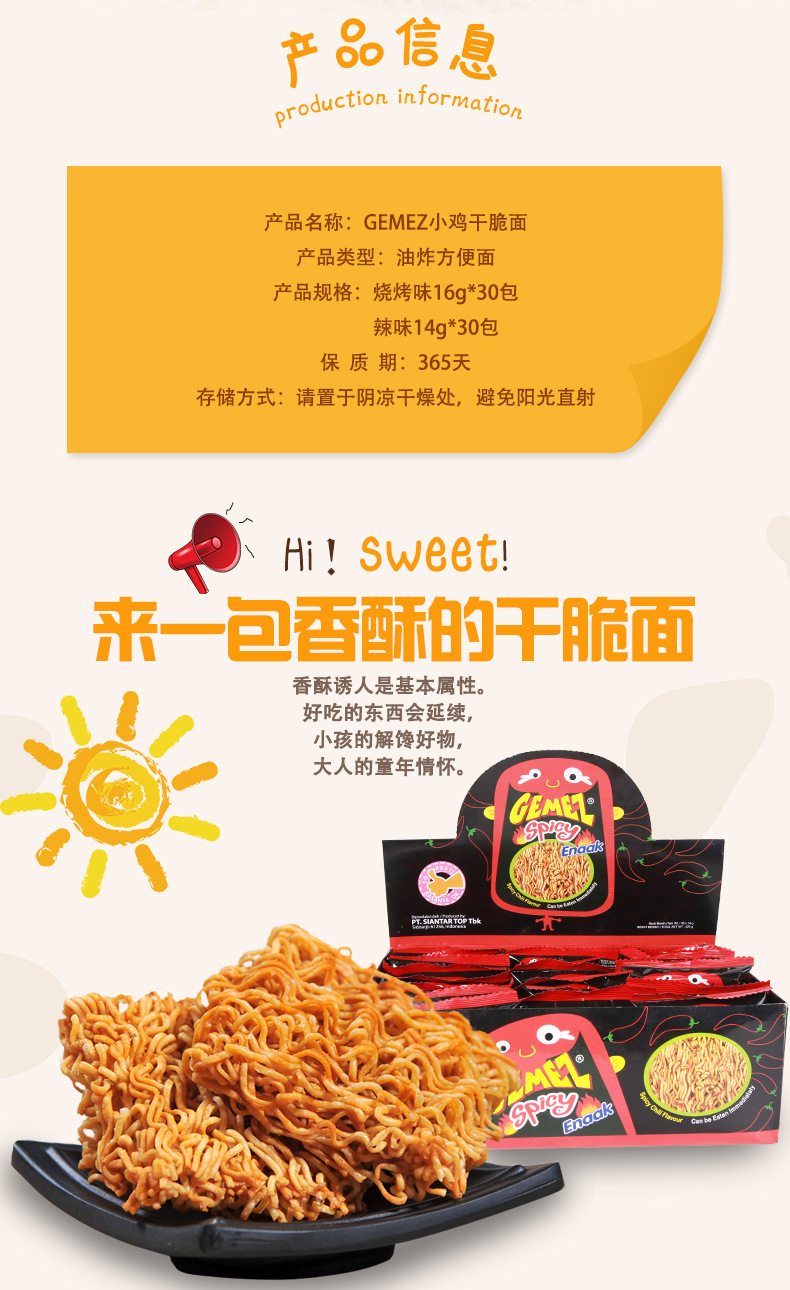 GEMEZ Indonesia imported barbecue chicken noodles net red crisp noodles spicy snacks dry instant noodles 30 packs/box