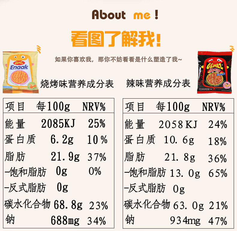 | Packaging specifications | Bbq chicken flavor,Spicy,Smoked beef flavor |