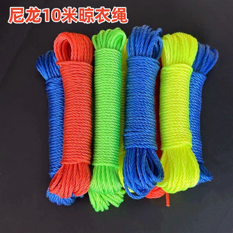 Color nylon 10 m clothesline multi-purpose rope clothes drying outdoor quilted drying line 1 yuan store supply