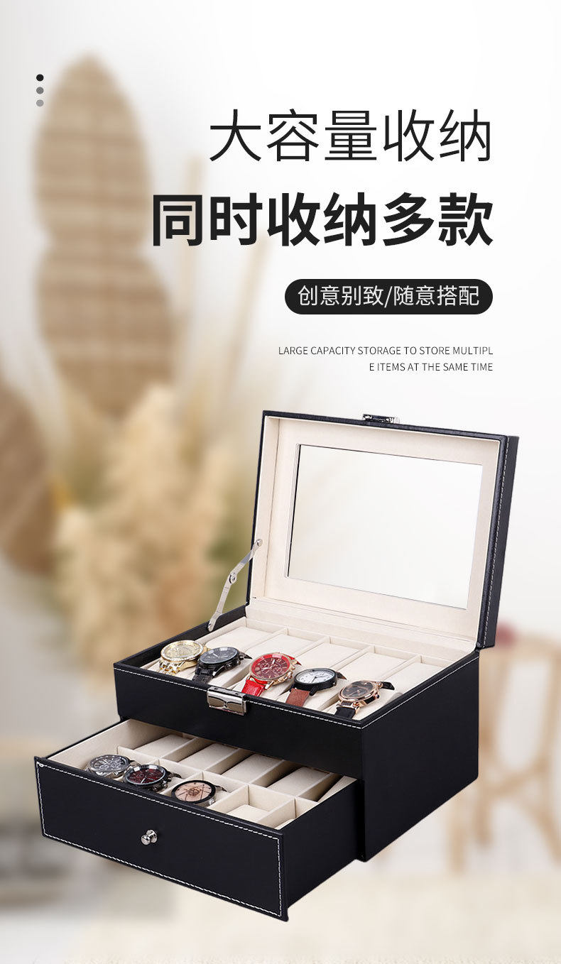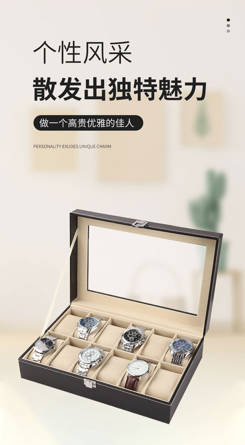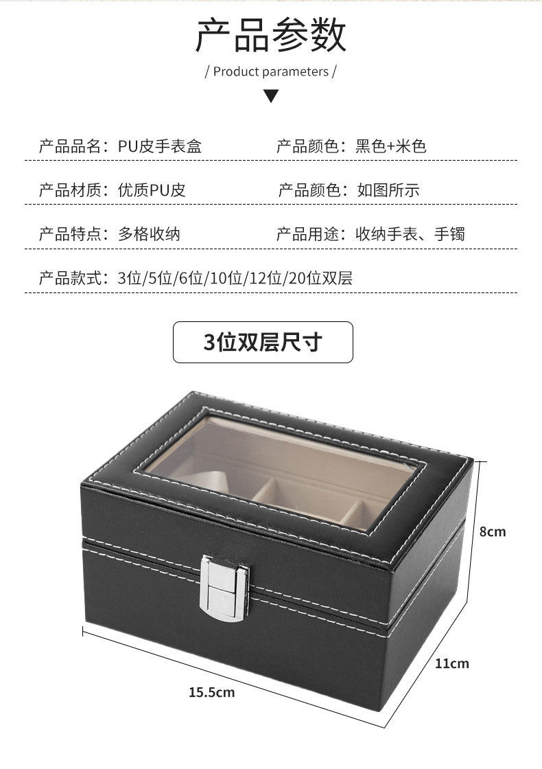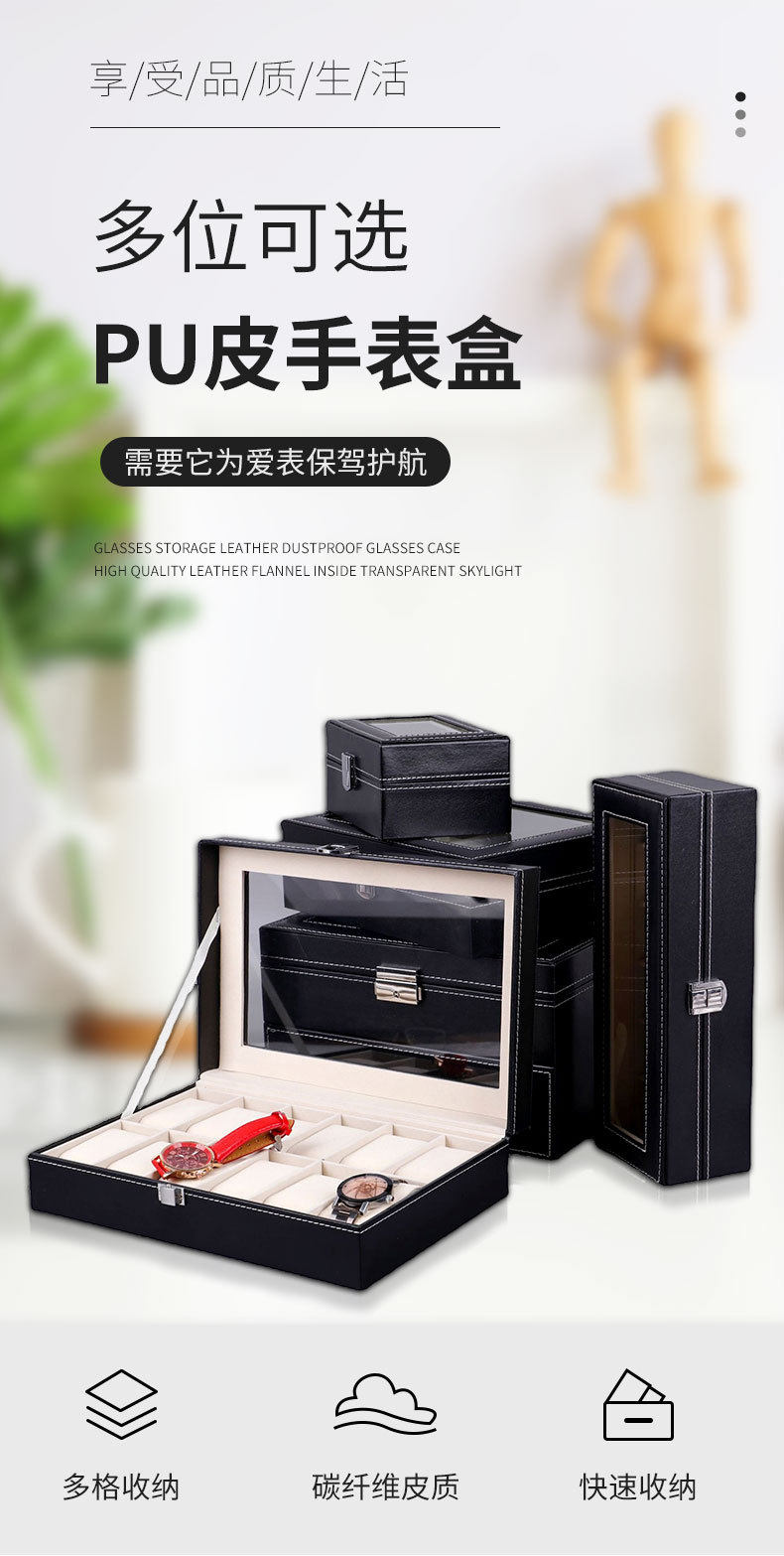 | Specifications and models | 3-position watch box; watch box,6-bit watch box; watch box,10-bit watch box; watch box,12-bit watch box; watch box,6+3 slot watch glasses case; watch box,24-bit watch box; watch box,Zipper style-2 brown; watch box,Zipper style-2 black; watch box,Zipper closure - 4-slot brown; watch box,Zipper style-4 black; watch box,Zipper closure - 8-slot brown watch box,Zipper model-8-bit black; watch box,Zipper model-6 bits; watch box,Zipper style-10 bits; watch box,Zipper style-12 bits; watch box |
