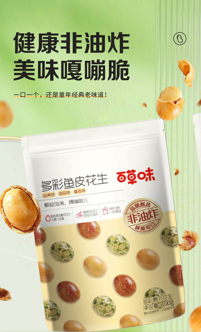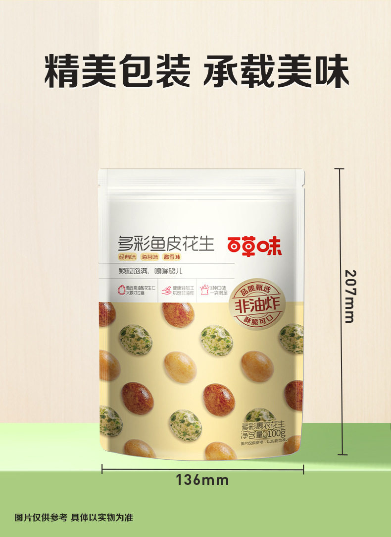 | Packaging specifications | [baicao flavor] colorful fish skin peanuts 100g (bag) |