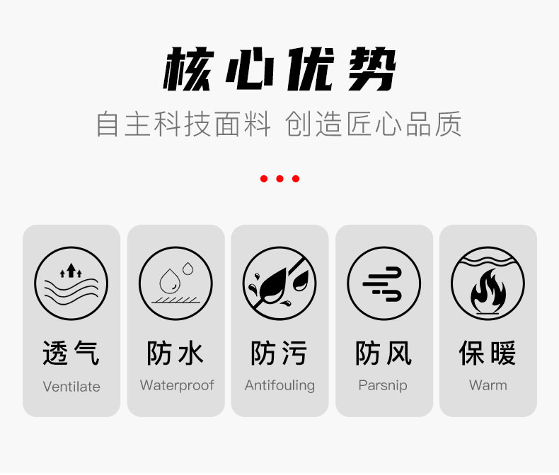 | Function | Breathable,Waterproof,Uv protection,Warm,Wear-resistant,Windproof,Anti-static,Moisture wicking,Anti-fouling and decontamination |
