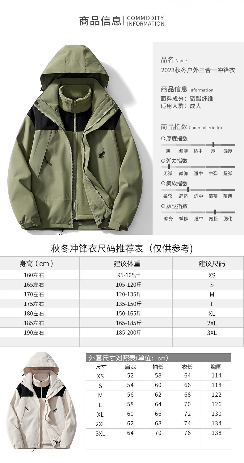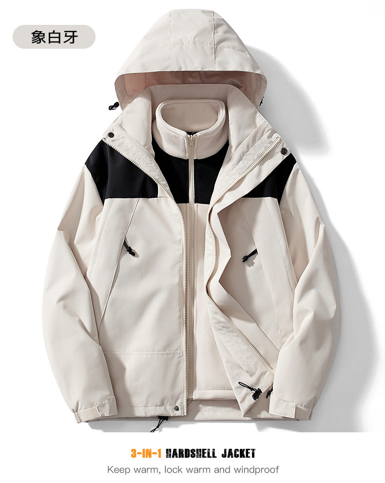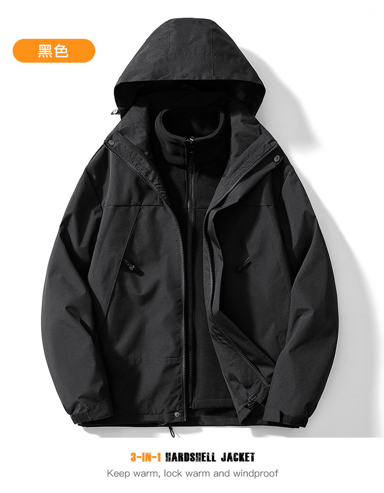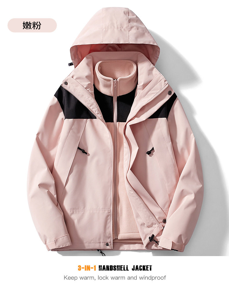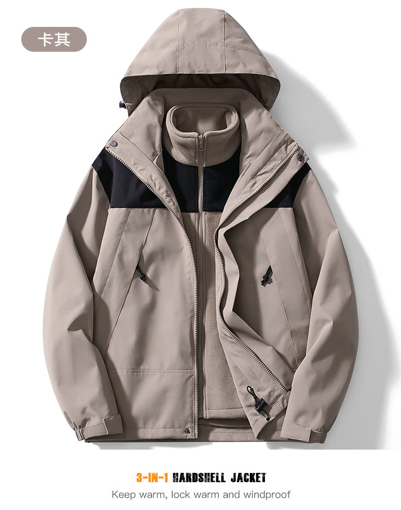 Outdoor Charge Clothes Three-in-One Men's Autumn and Winter Thickened Jacket Detachable Windproof and Waterproof Two-piece Mountaineering Suit for Women