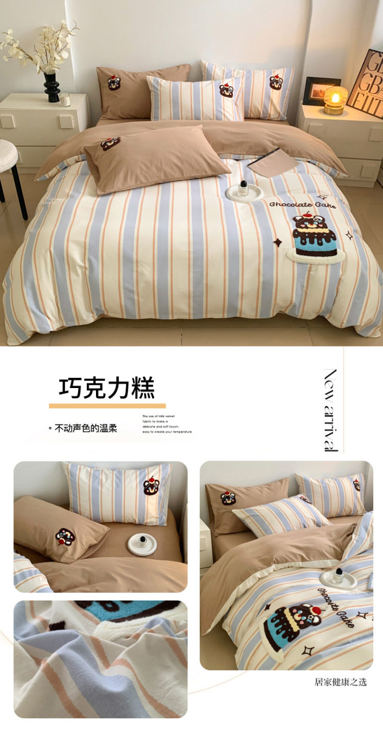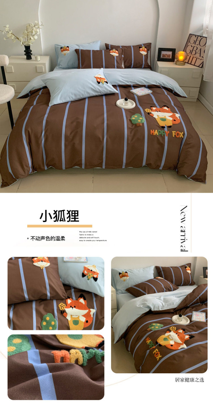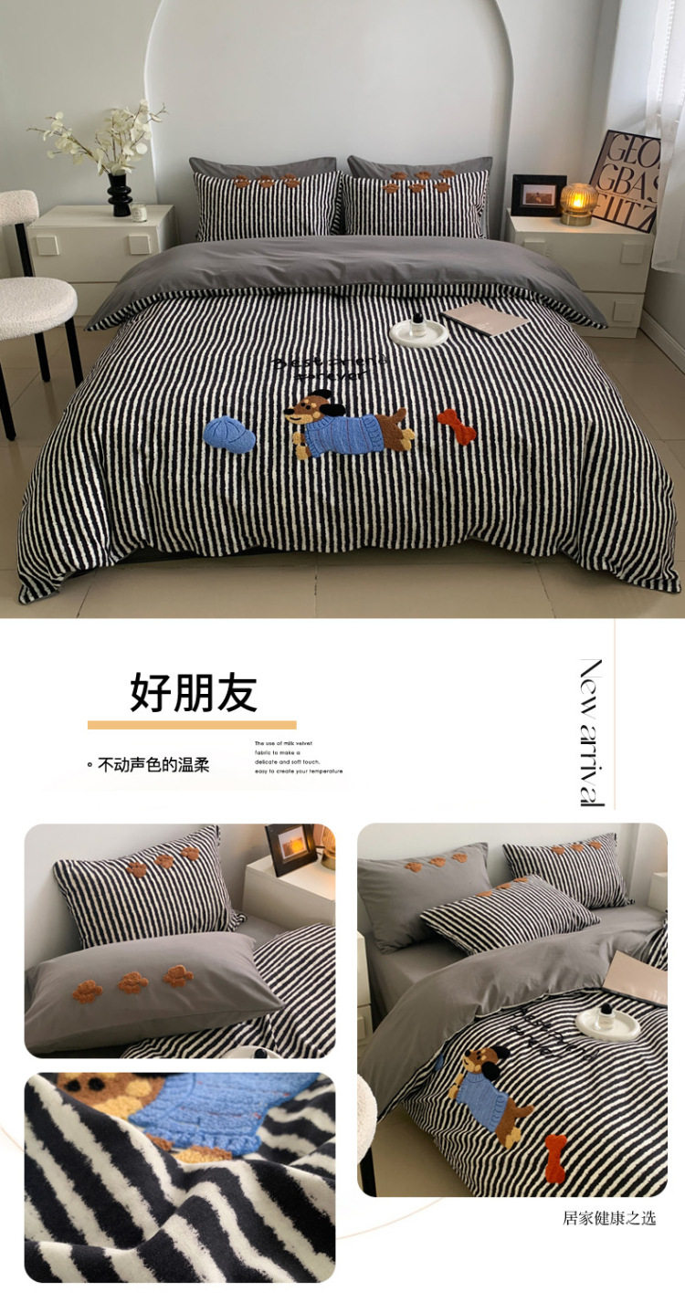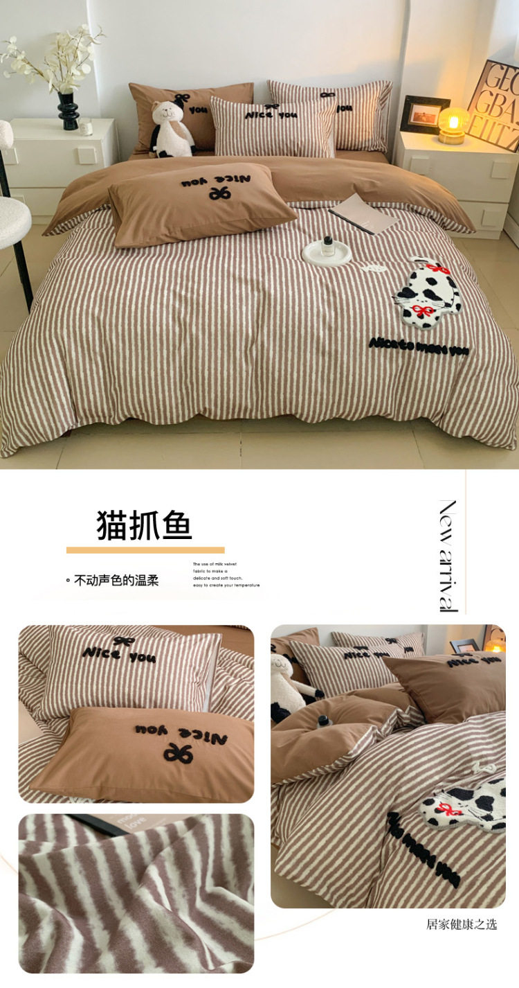 Autumn and winter thick sanding four-piece cotton cotton 2024 new cartoon boys and girls bed three-piece set