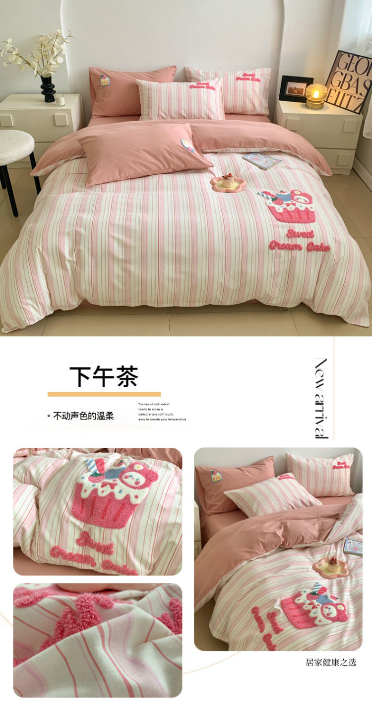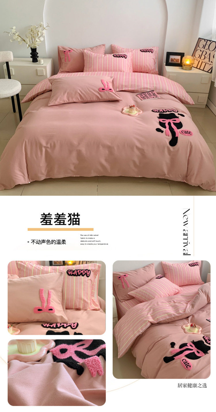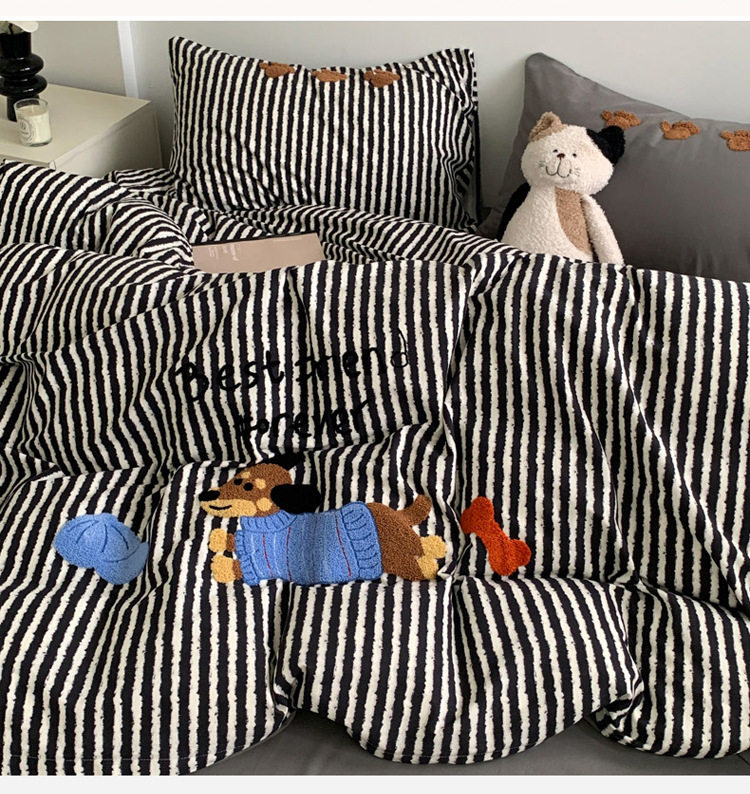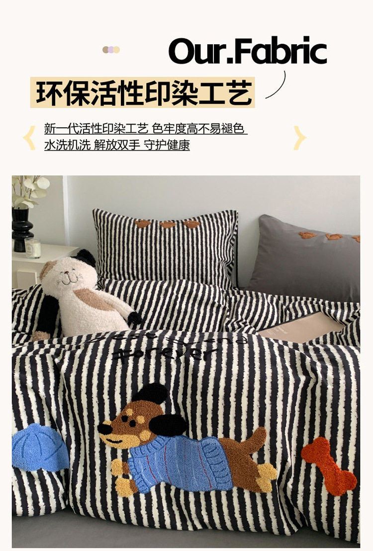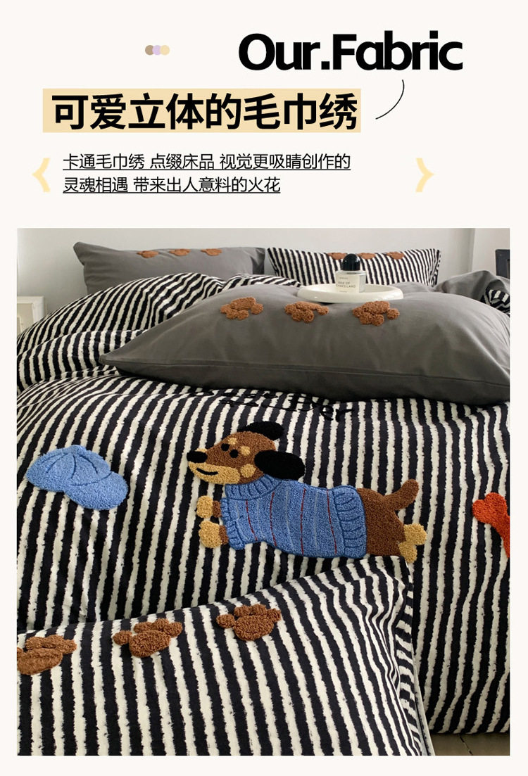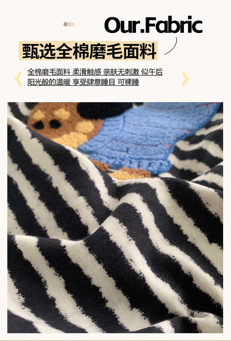 Autumn and winter thick sanding four-piece cotton cotton 2024 new cartoon boys and girls bed three-piece set