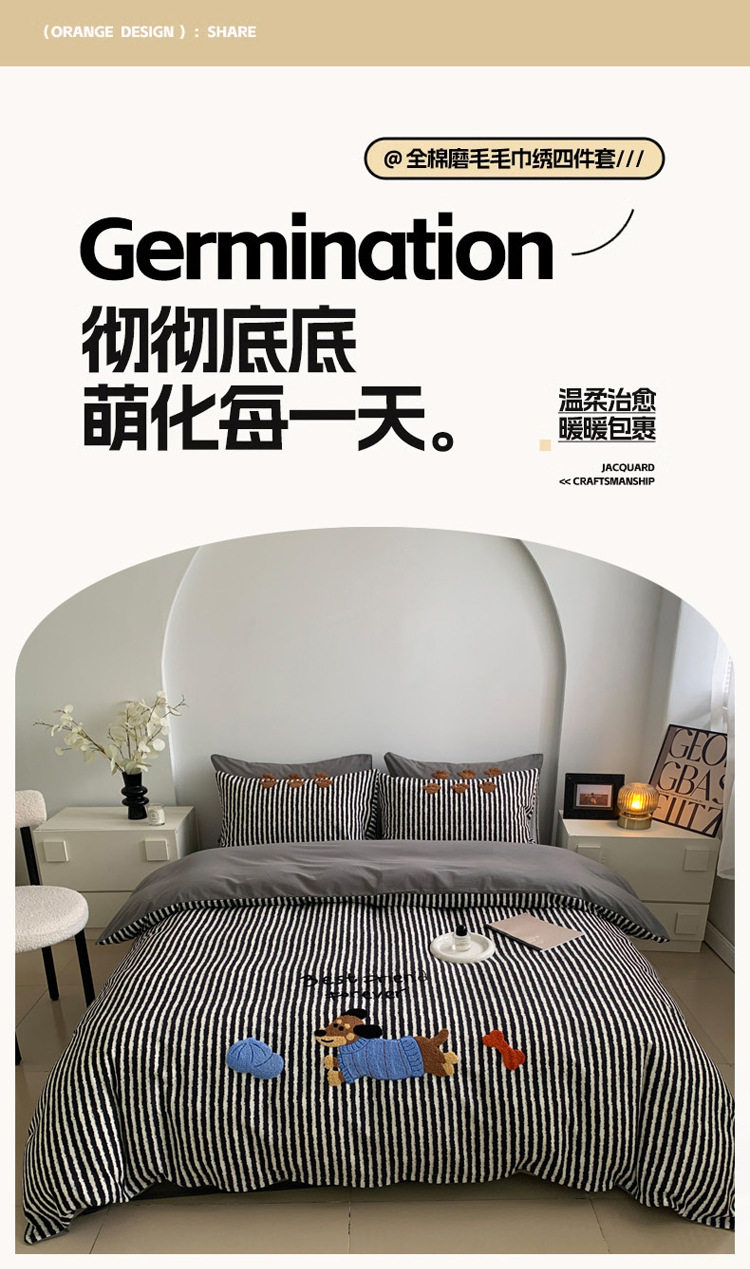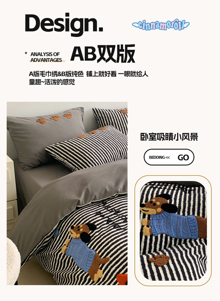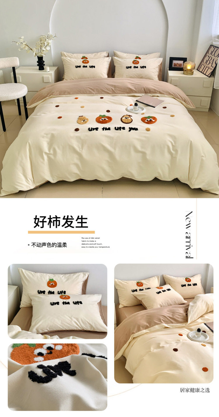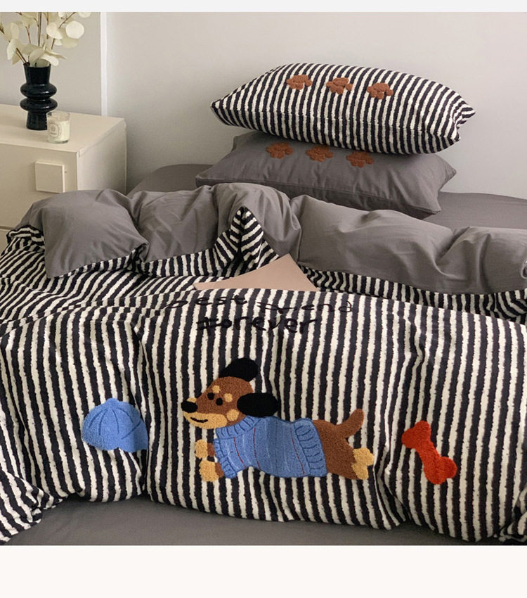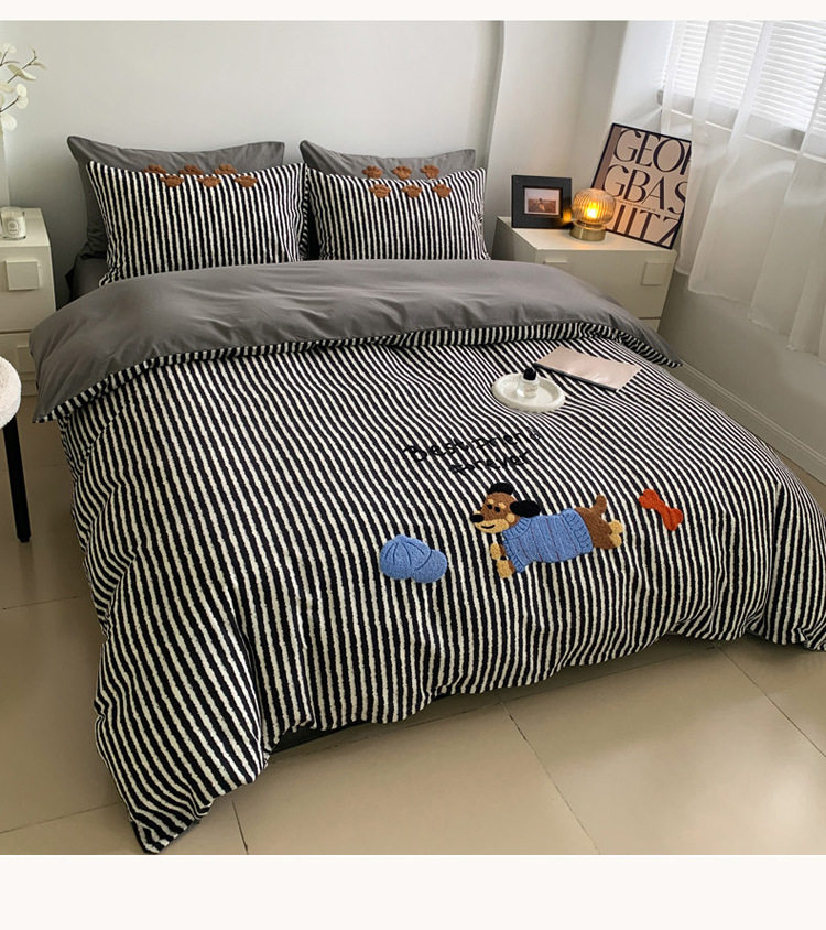 Autumn and winter thick sanding four-piece cotton cotton 2024 new cartoon boys and girls bed three-piece set