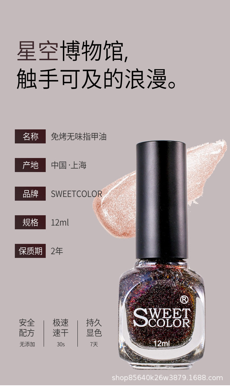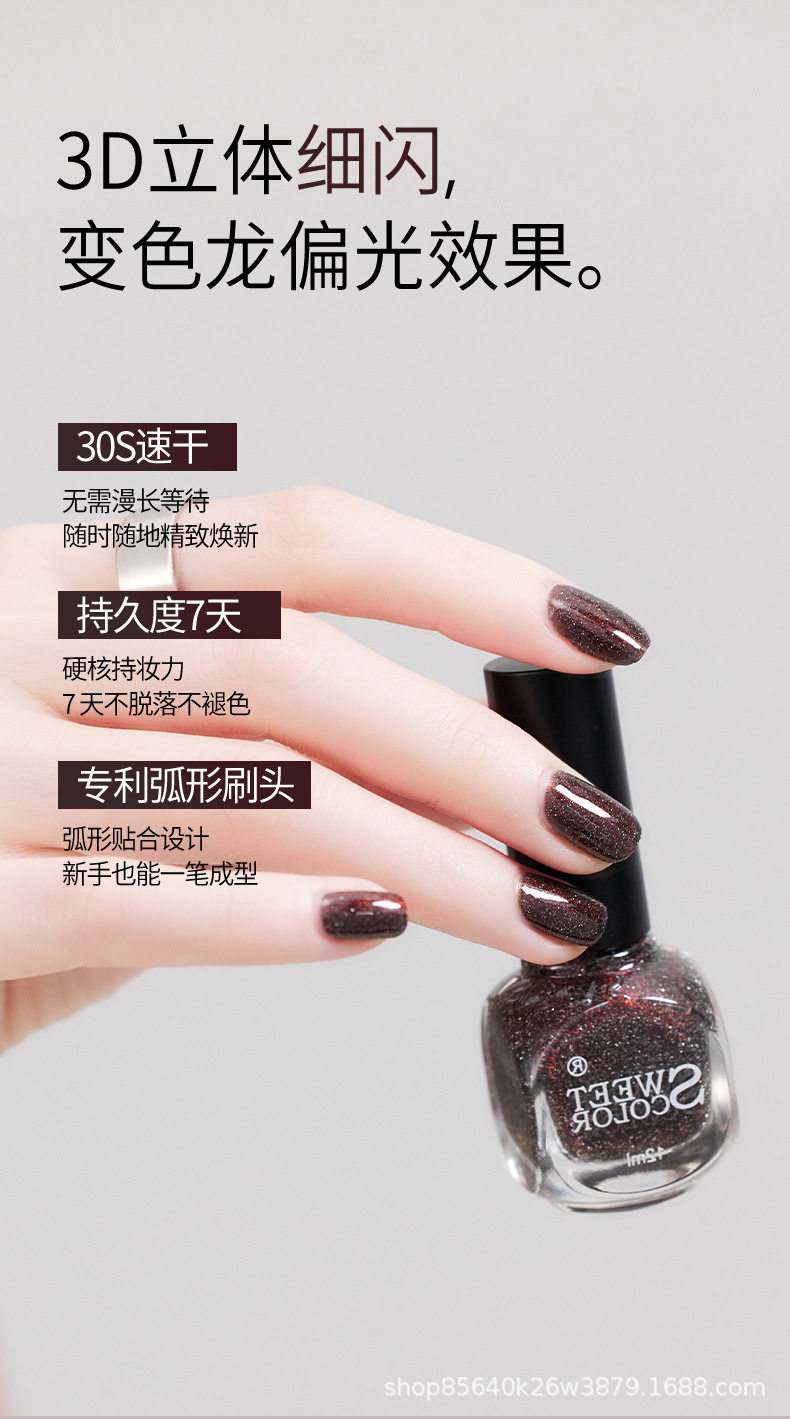 One-Piece Drop-Shipping Nail Polish from the Source Factory Sweetcolor, Diamond Glitter, Aurora Effect, Water-Based, Non-Fading