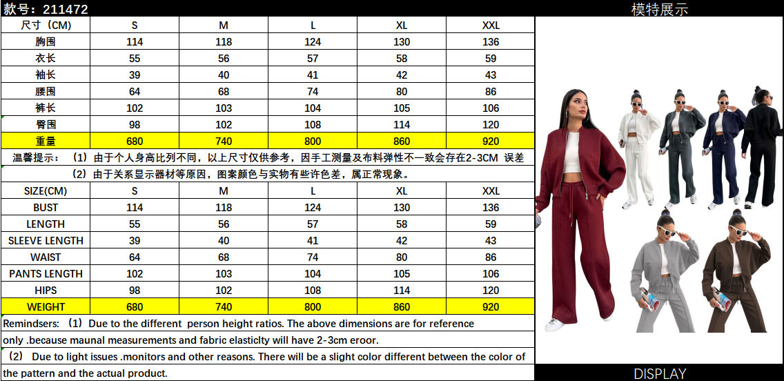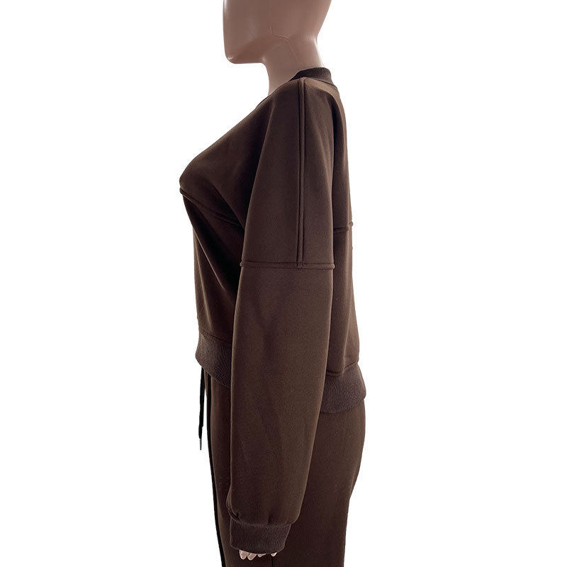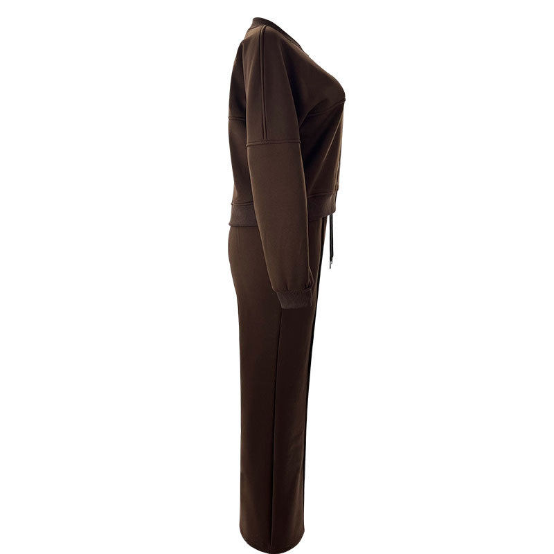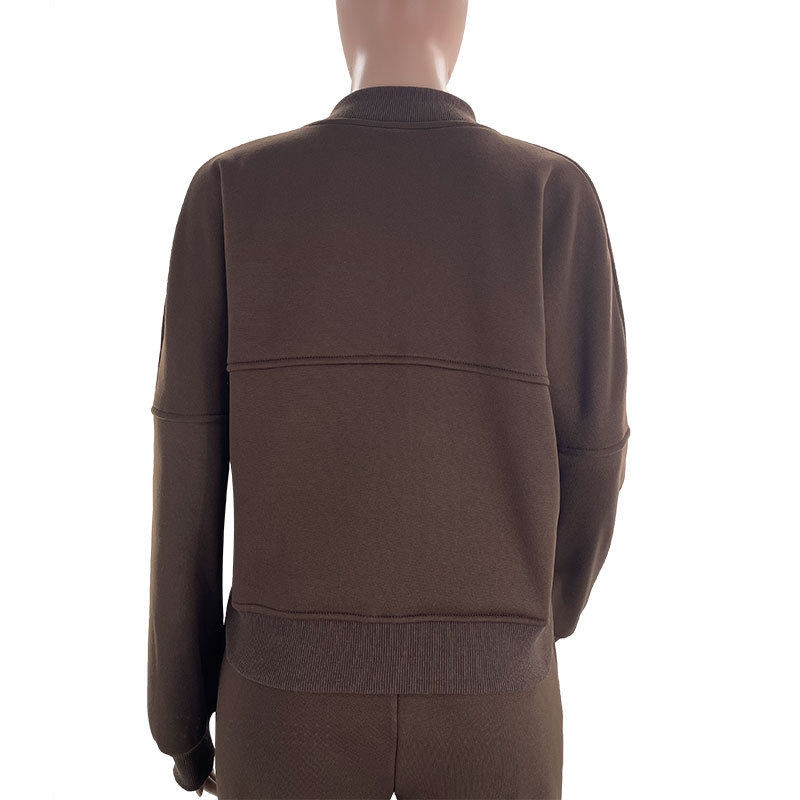 211472 autumn and winter new cross-border Europe and the United States solid color fleece-lined zipper cardigan women's fashion casual straight pants suit