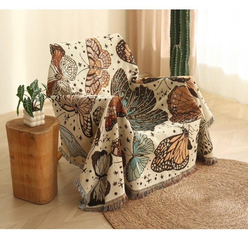 Nordic Style Butterfly Sofa Blanket Background Cloth Single Sofa Set Multifunctional Blanket Outdoor Leisure Blanket Tablecloth