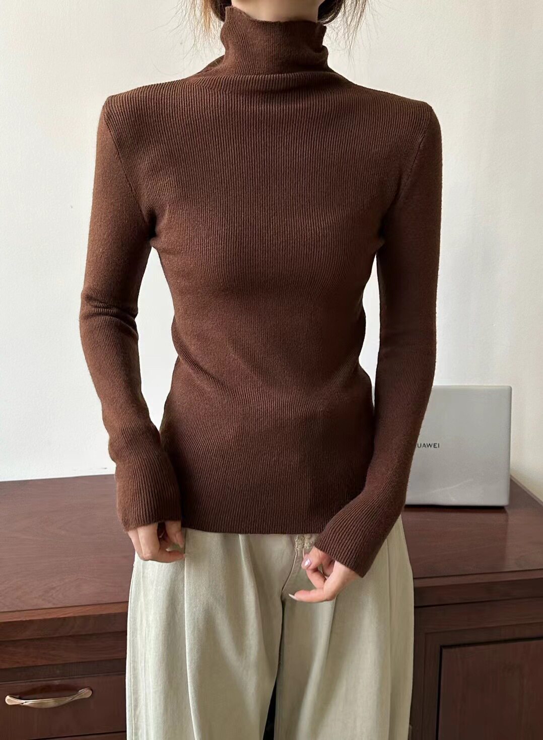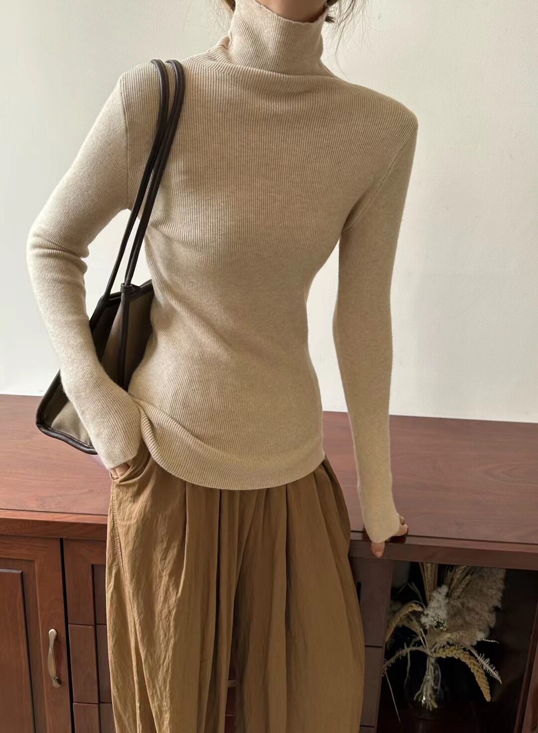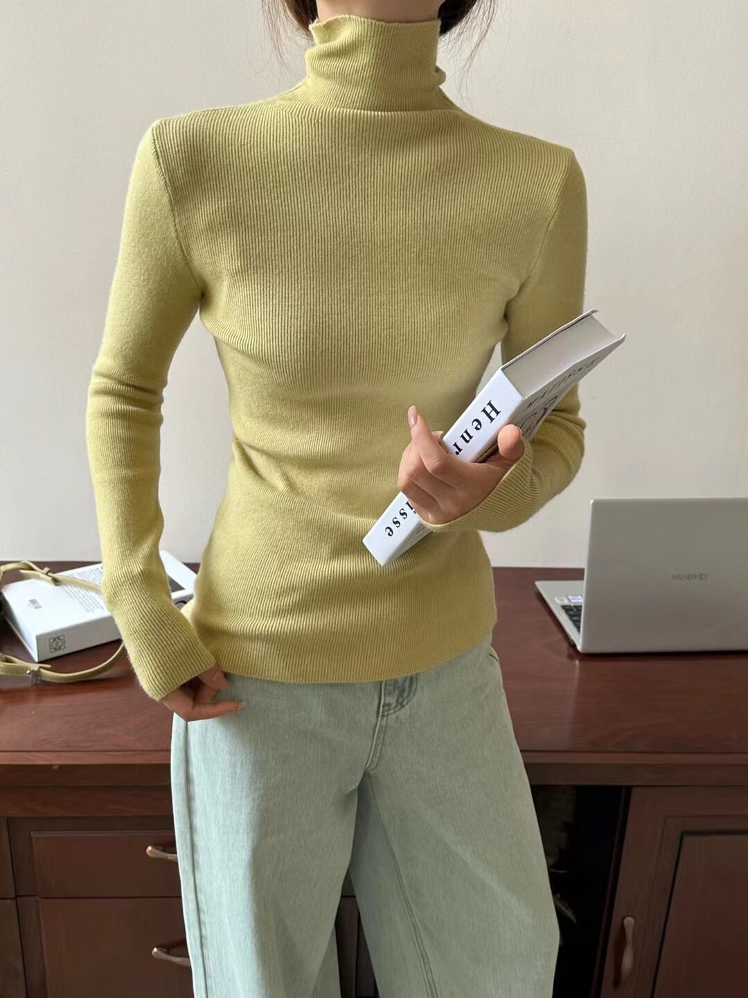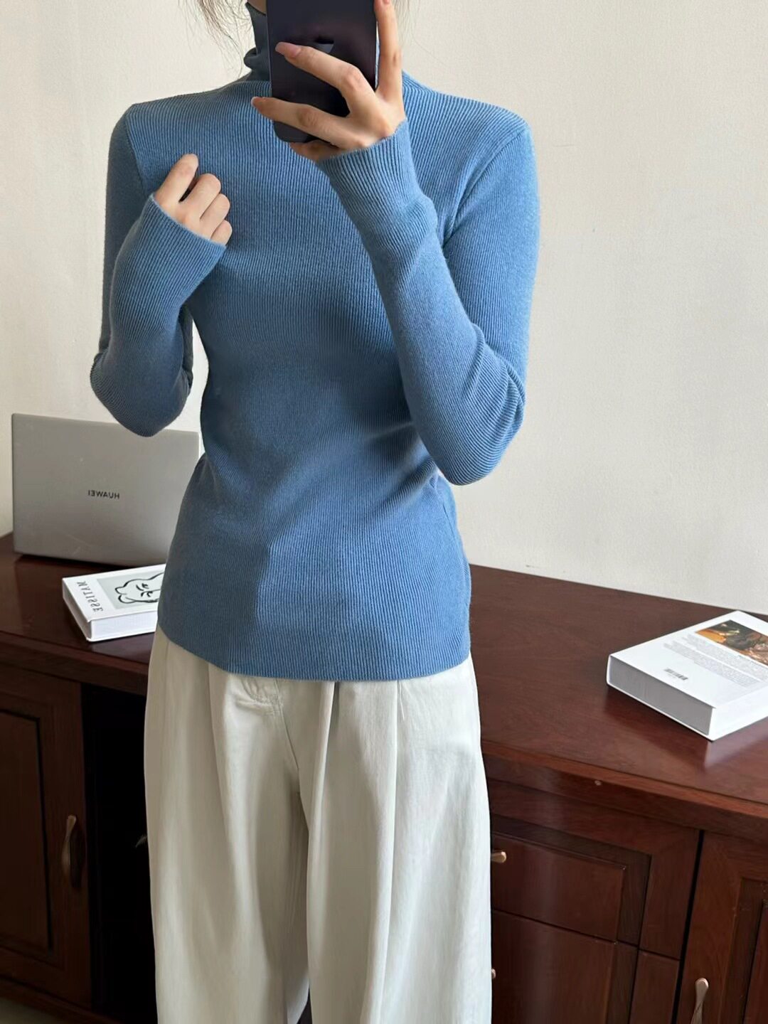 High-Neck Knitted Base Shirt 2025 Autumn and Winter New Solid Color Slim Fit Stacked Collar Sweater Inner Wear Pullover for Women Trendy