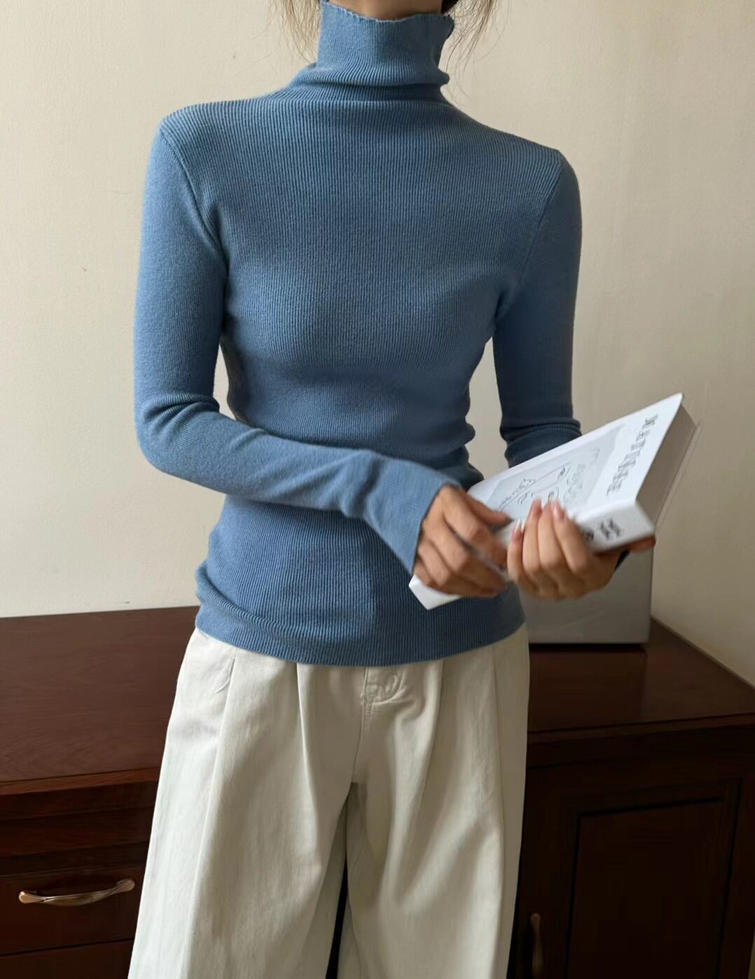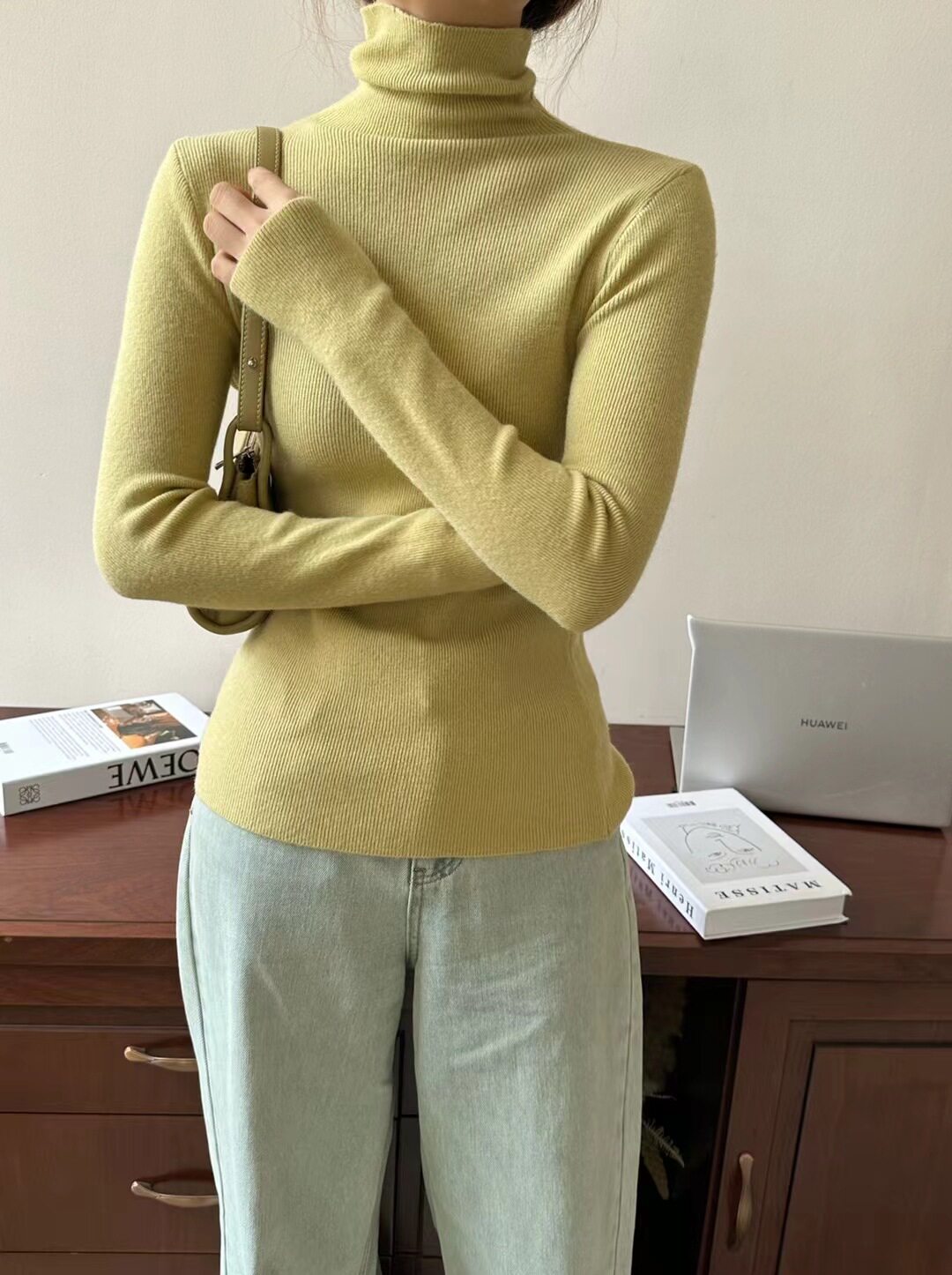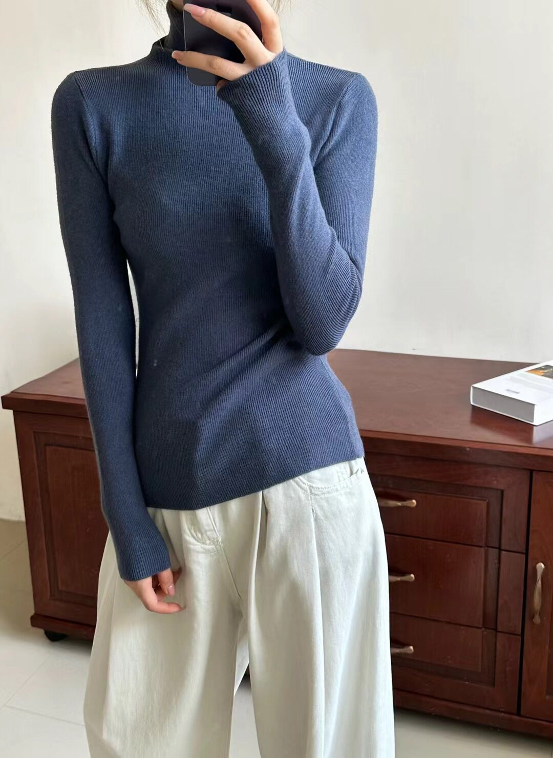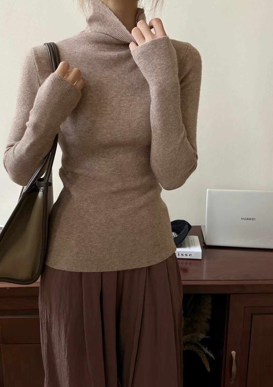 High-Neck Knitted Base Shirt 2025 Autumn and Winter New Solid Color Slim Fit Stacked Collar Sweater Inner Wear Pullover for Women Trendy