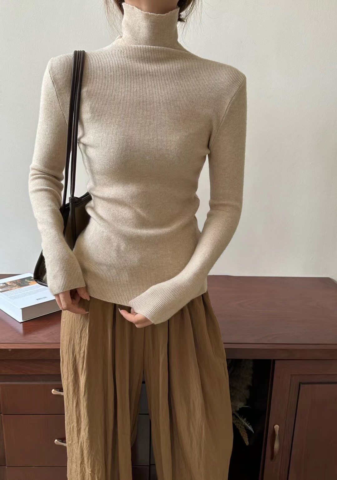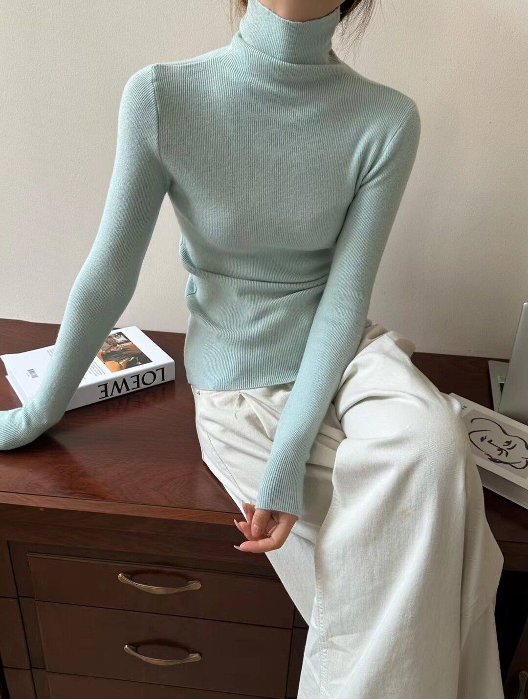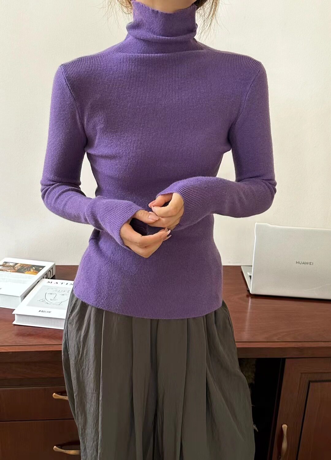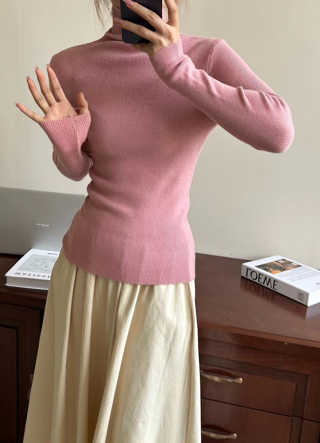High-Neck Knitted Base Shirt 2025 Autumn and Winter New Solid Color Slim Fit Stacked Collar Sweater Inner Wear Pullover for Women Trendy