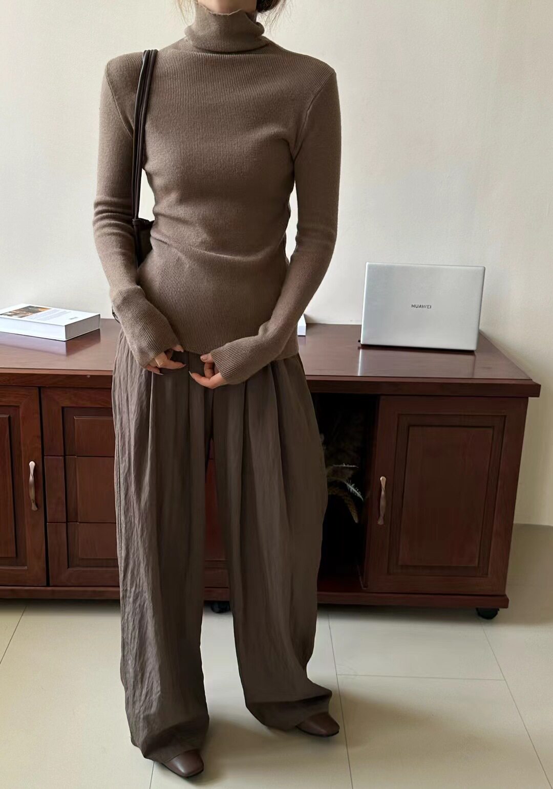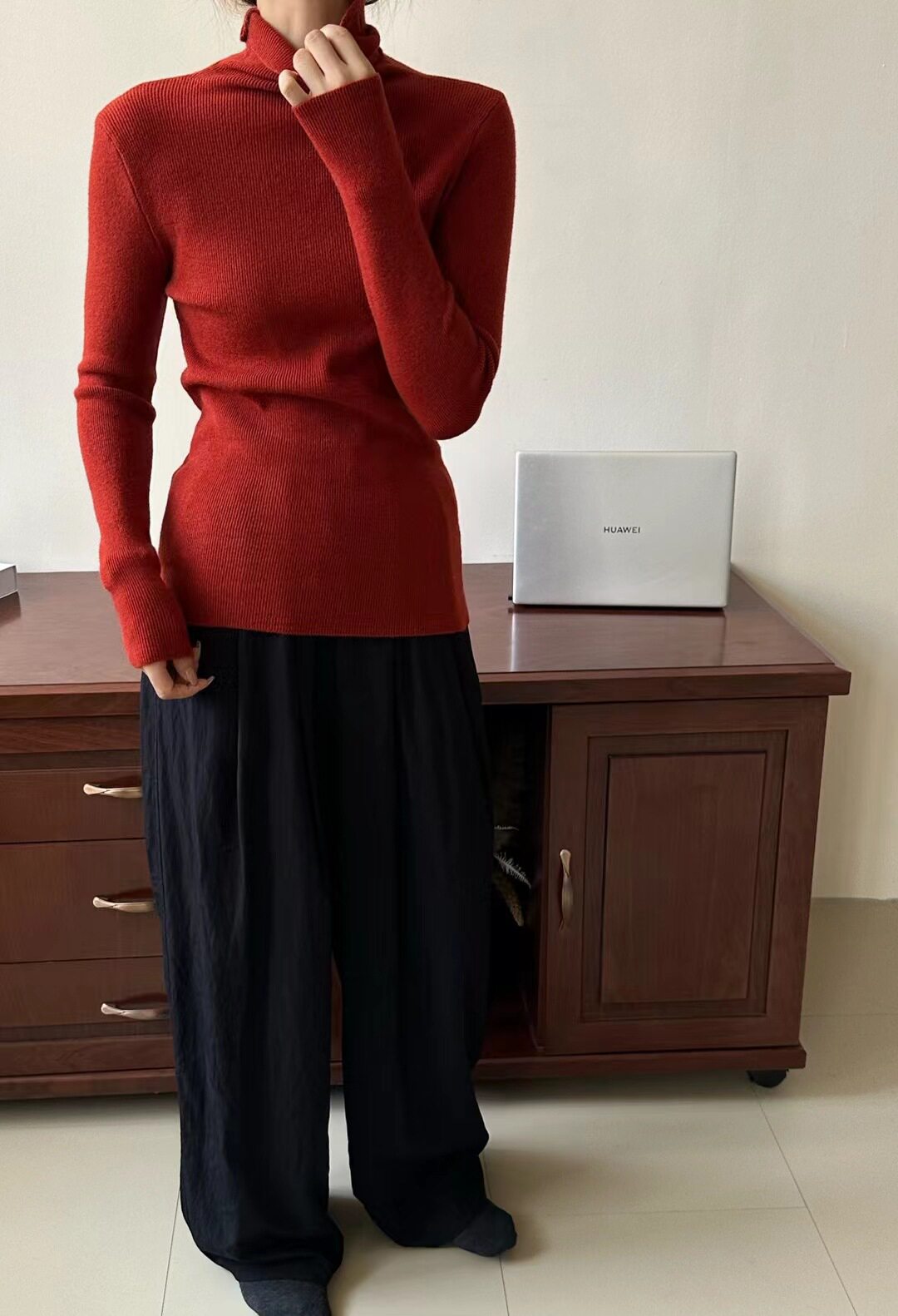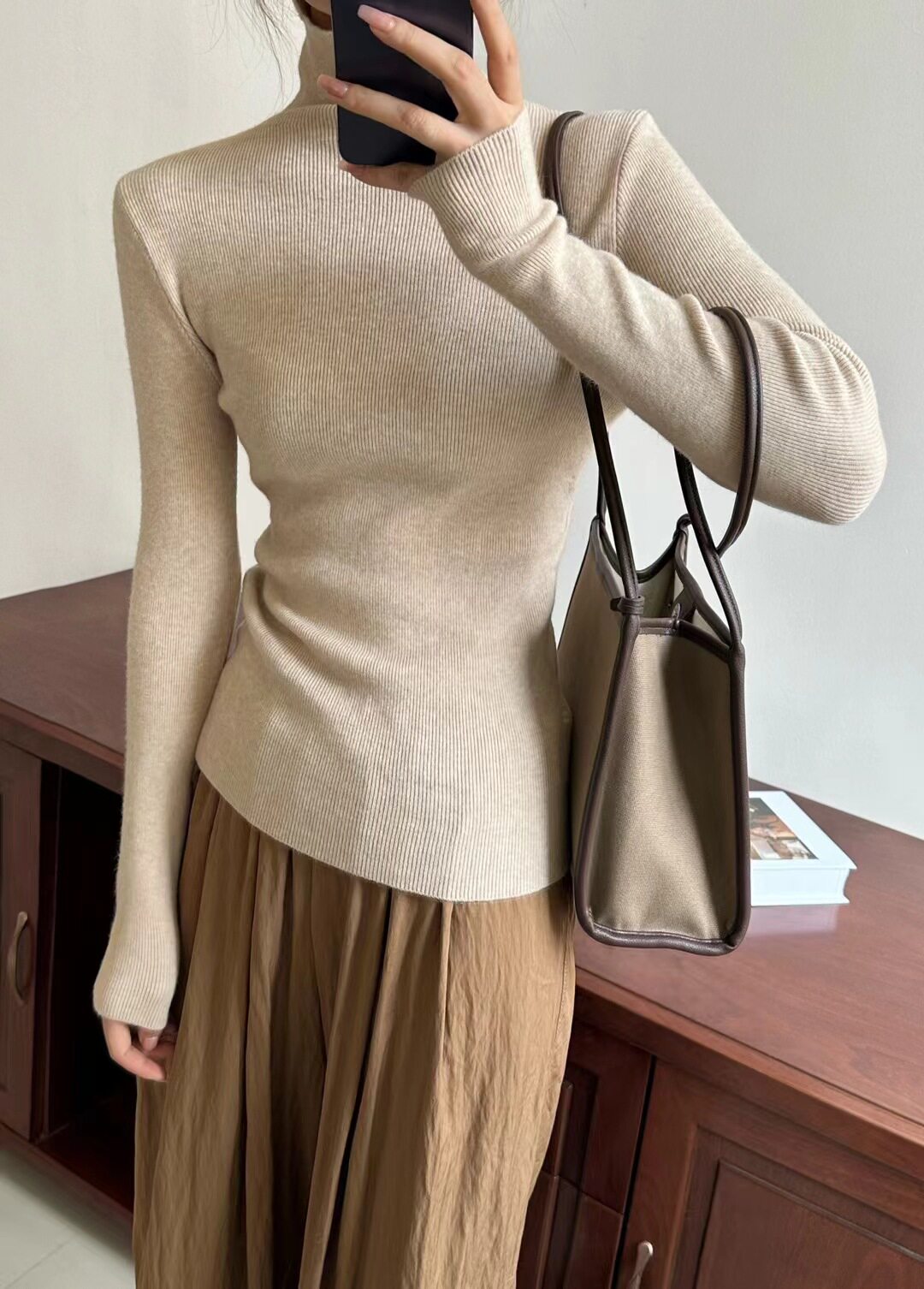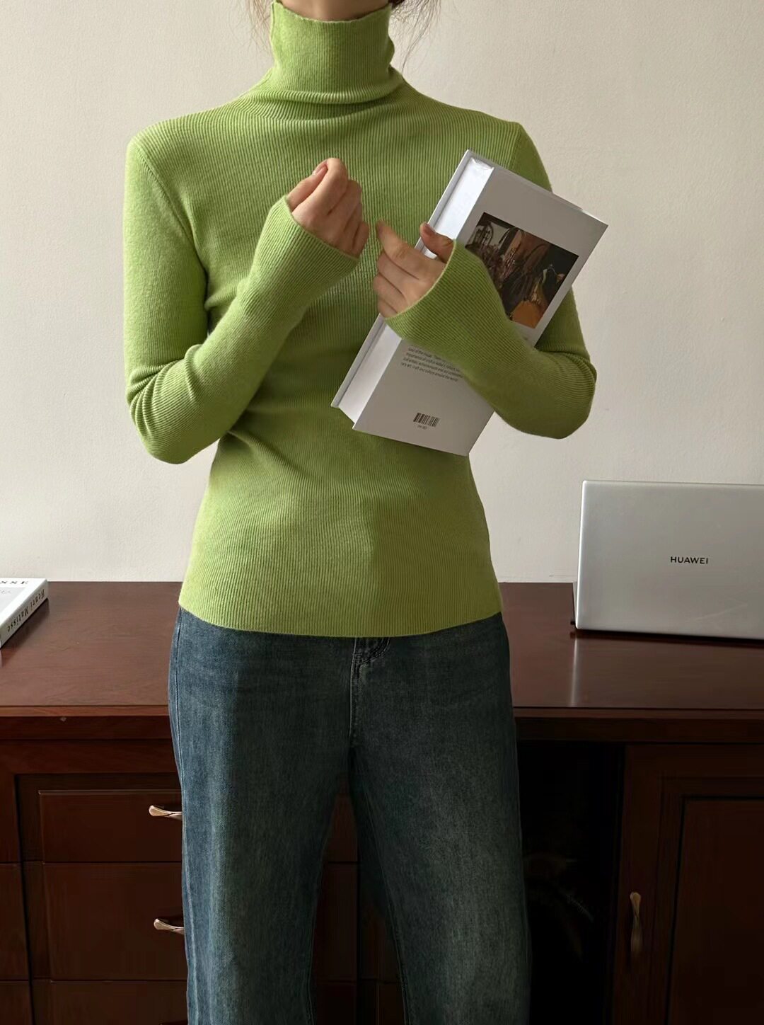 High-Neck Knitted Base Shirt 2025 Autumn and Winter New Solid Color Slim Fit Stacked Collar Sweater Inner Wear Pullover for Women Trendy