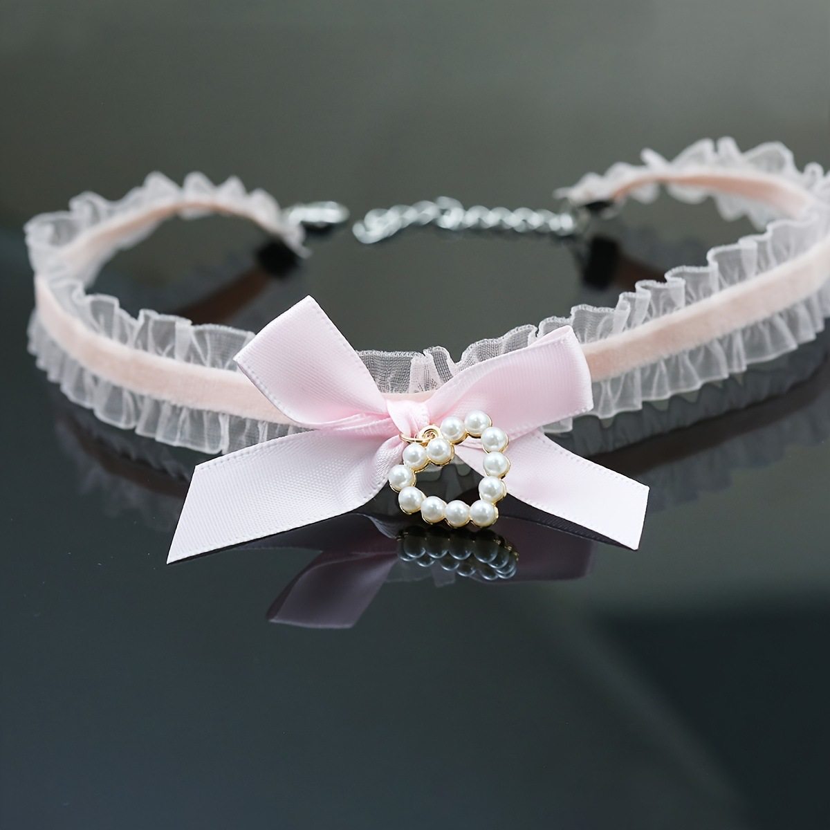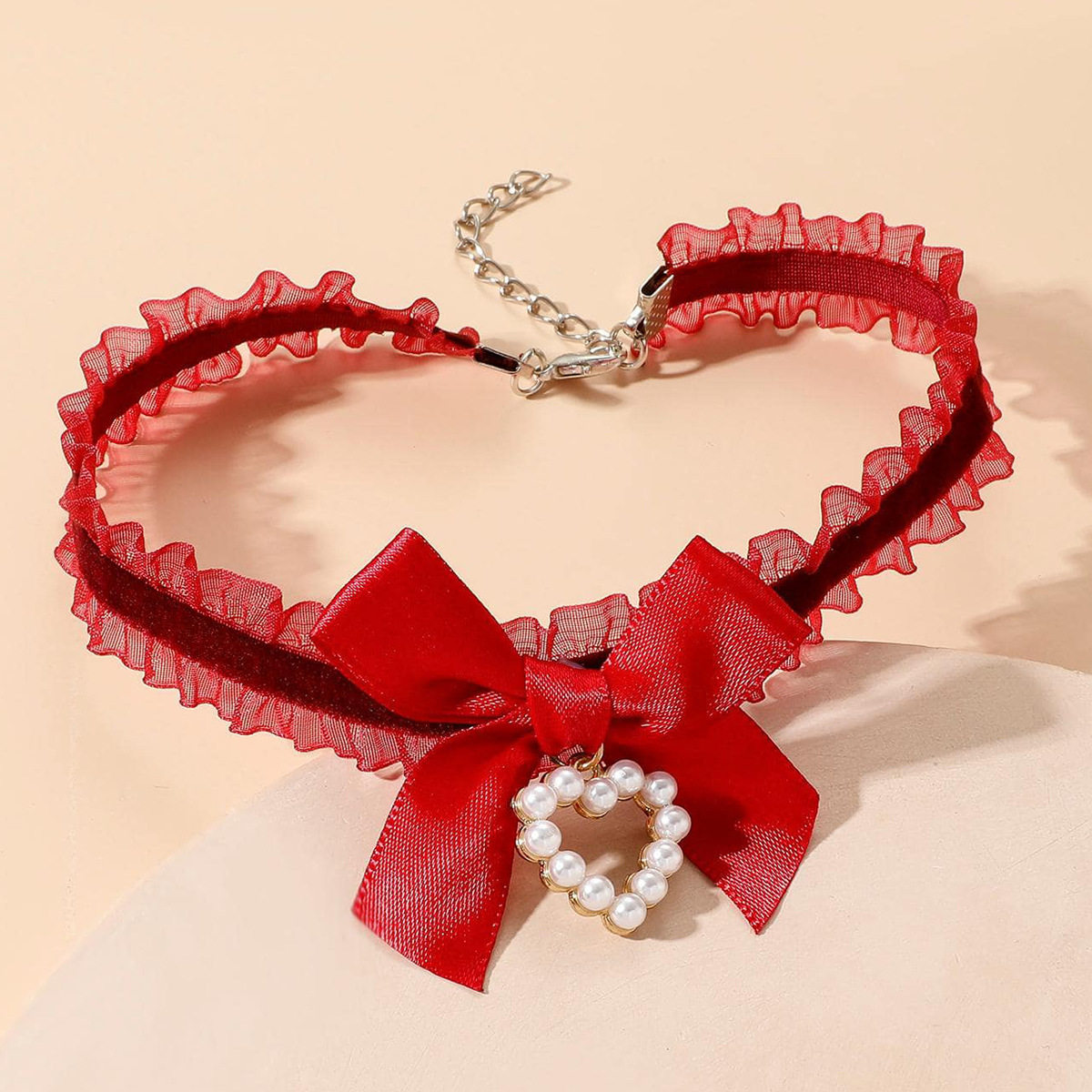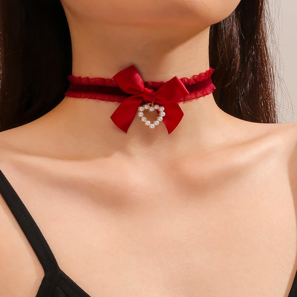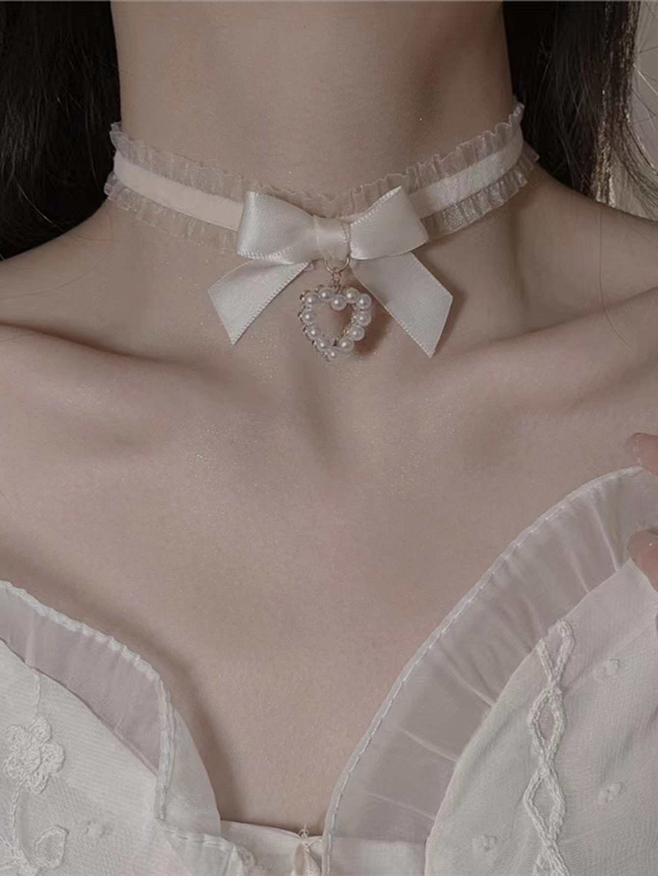 Cross-Border Tiktok Trending Product Lace Heart Bow Choker Collarbone Necklace Eco-Friendly Korean Style