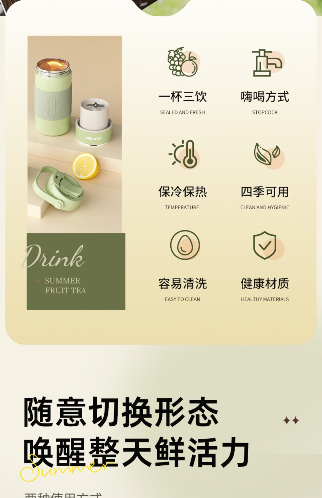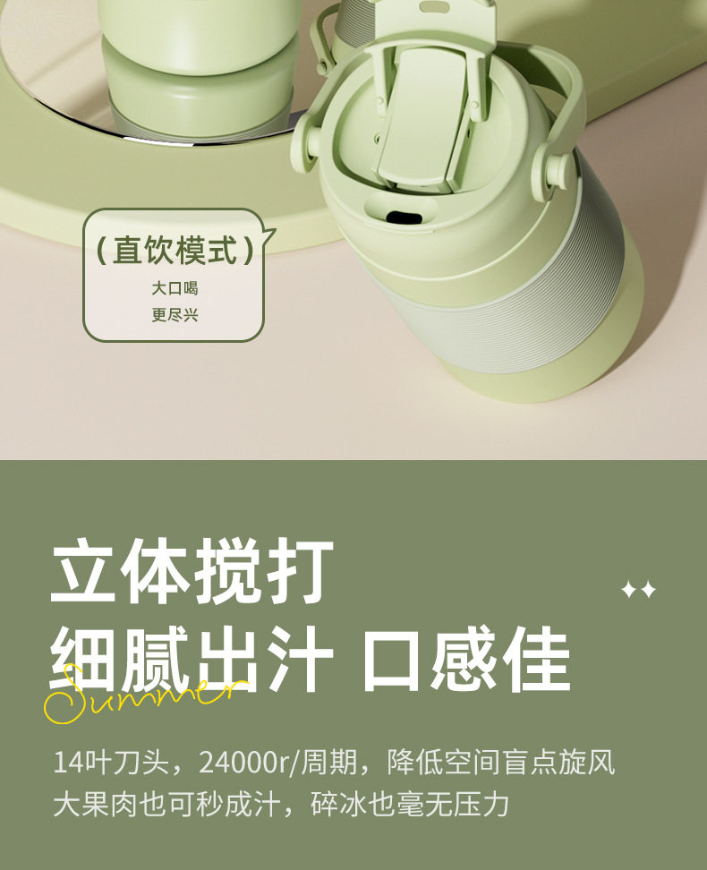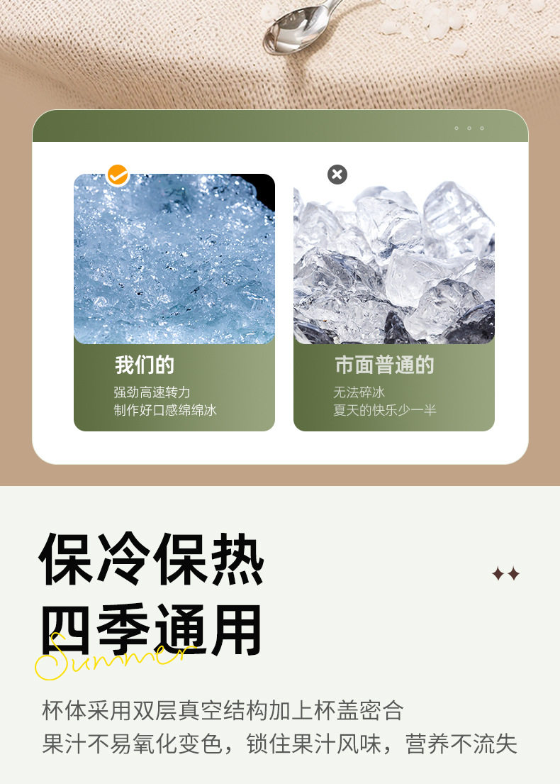 Factory Direct Sales Double-Layer Stainless Steel Insulated Juicer Wireless Portable Fruit and Vegetable Juicer Cup Household Ice Crushing Juicer