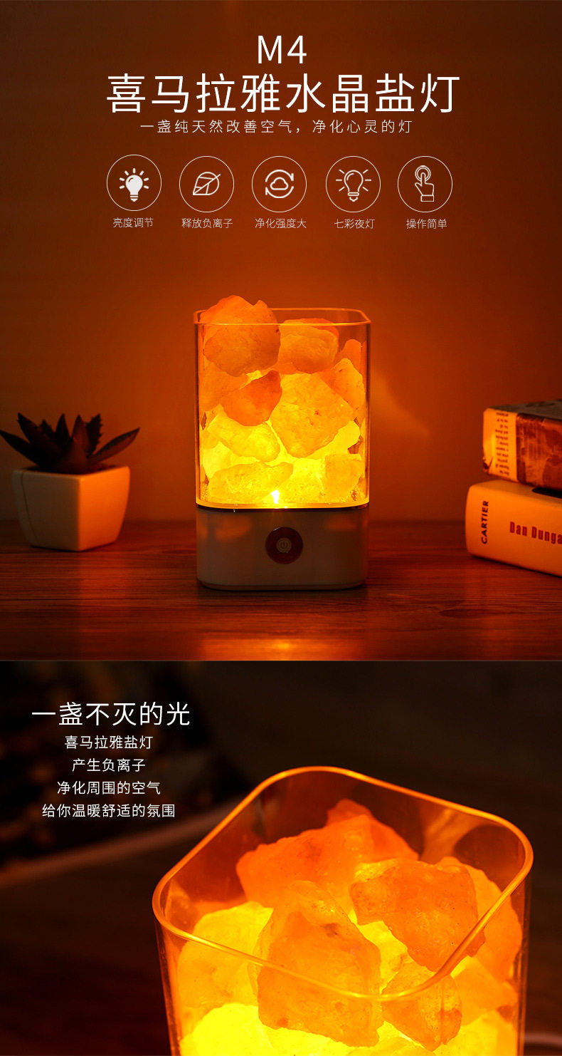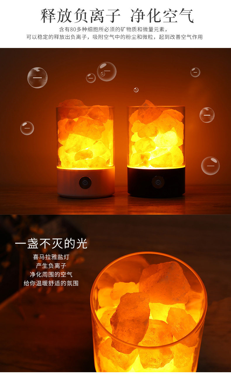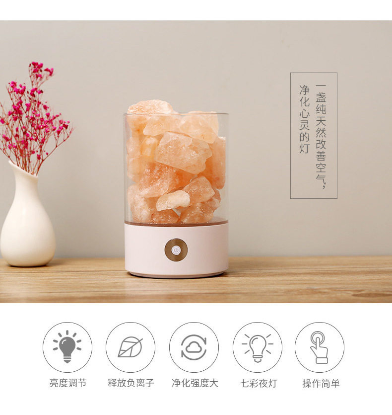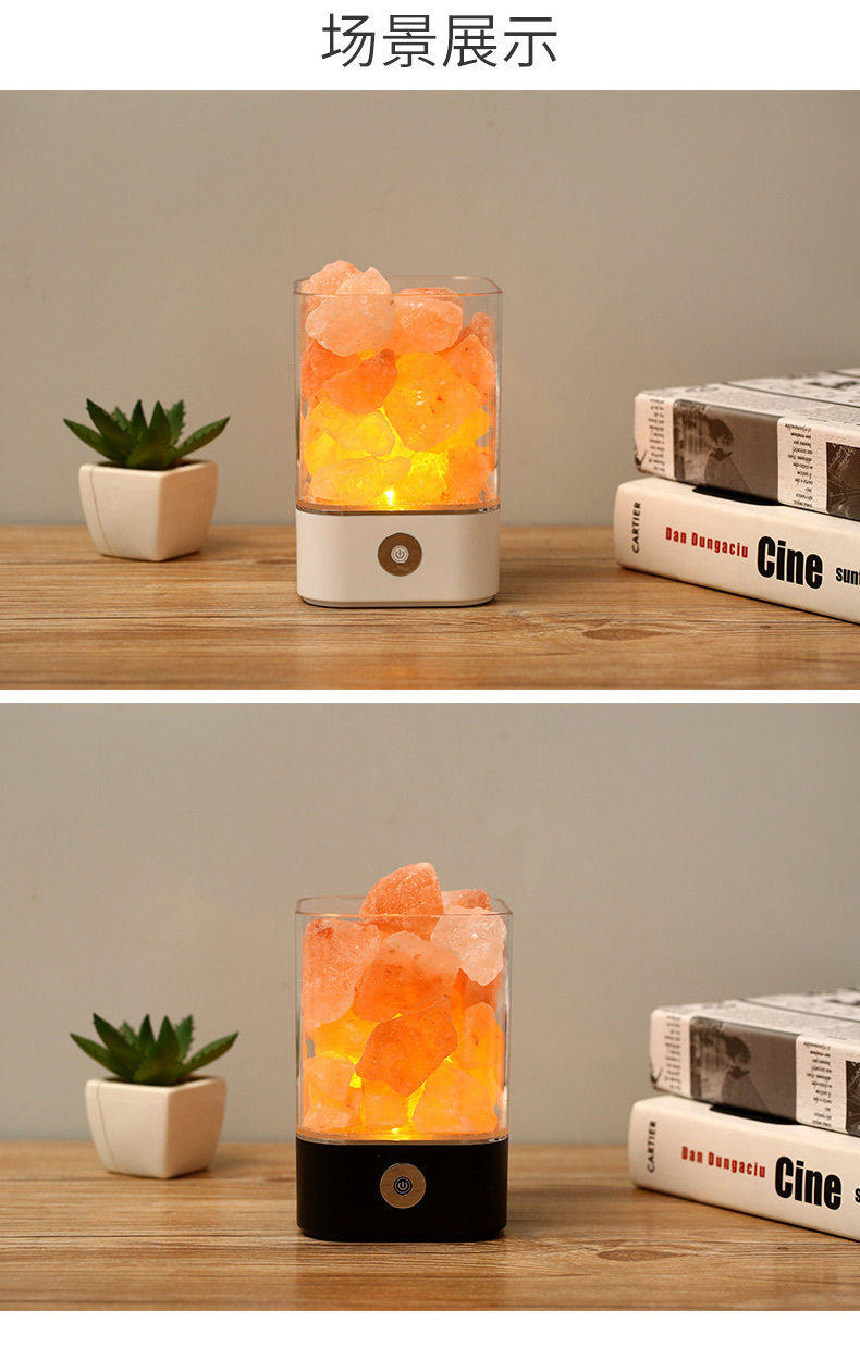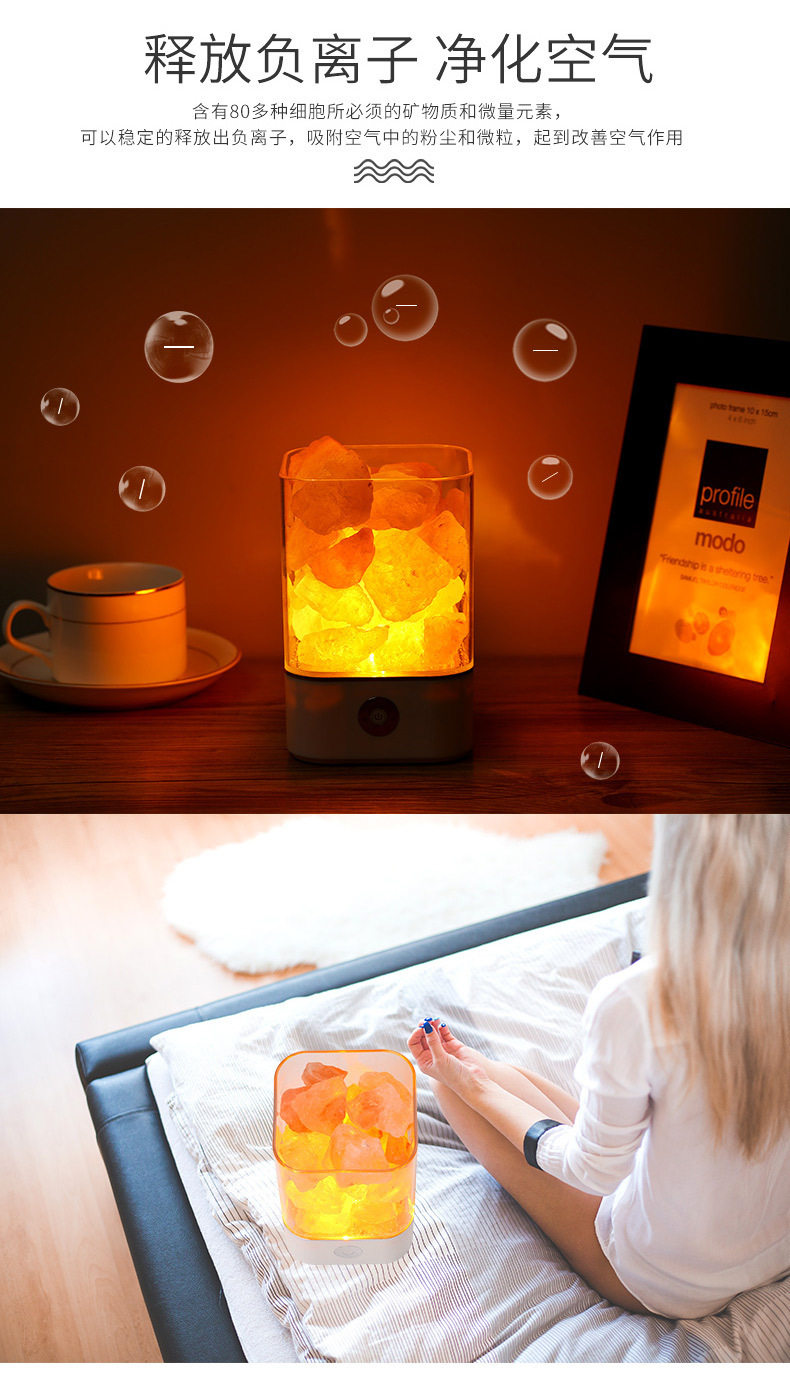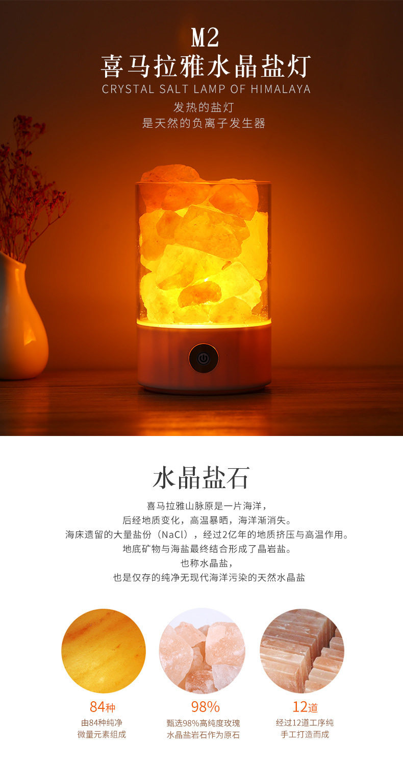 Creative Himalayan Crystal Salt Lamp Negative Ion Salt Mineral USB Night Light Bedroom Sleep Companion Table Lamp Creative Ornament