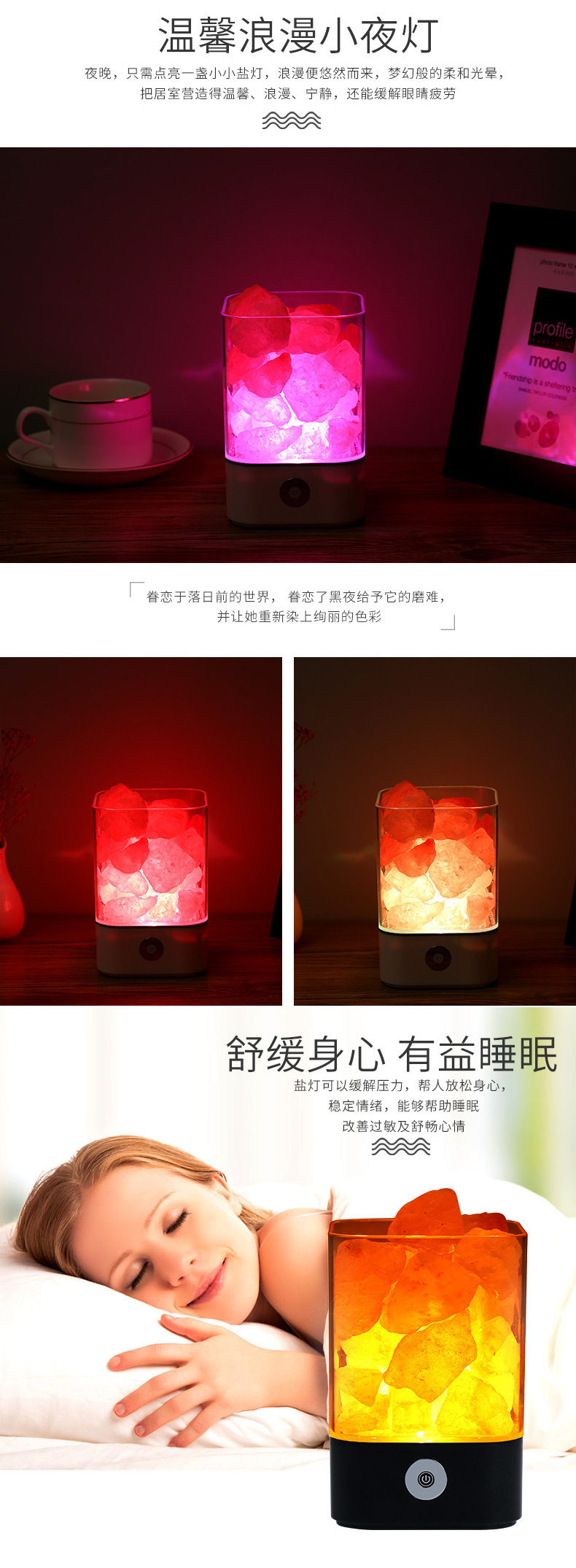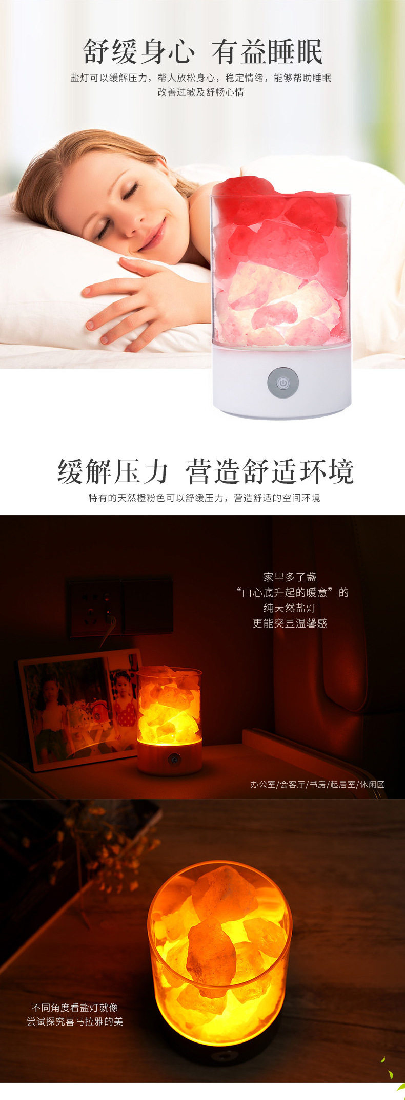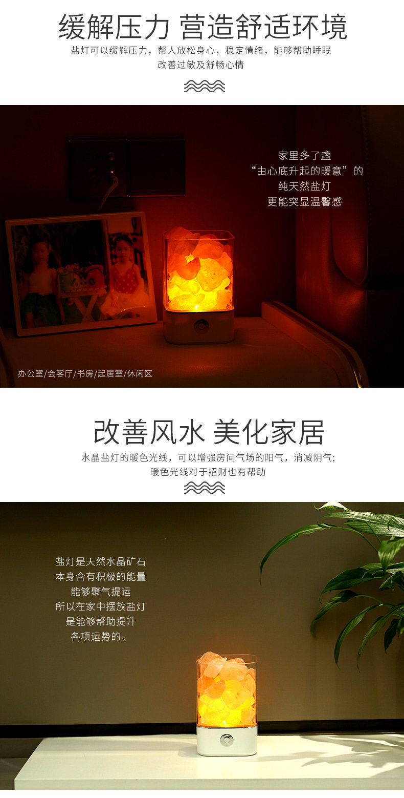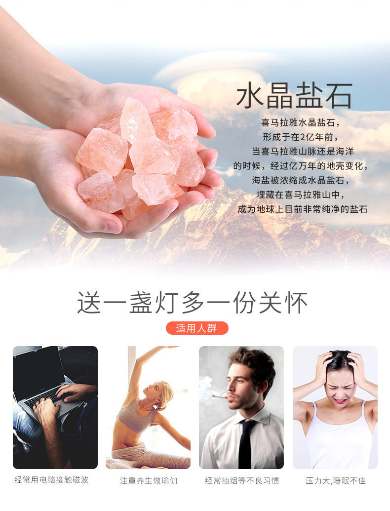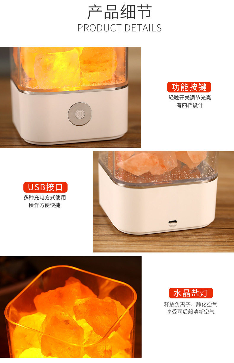 Creative Himalayan Crystal Salt Lamp Negative Ion Salt Mineral USB Night Light Bedroom Sleep Companion Table Lamp Creative Ornament