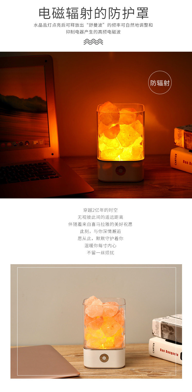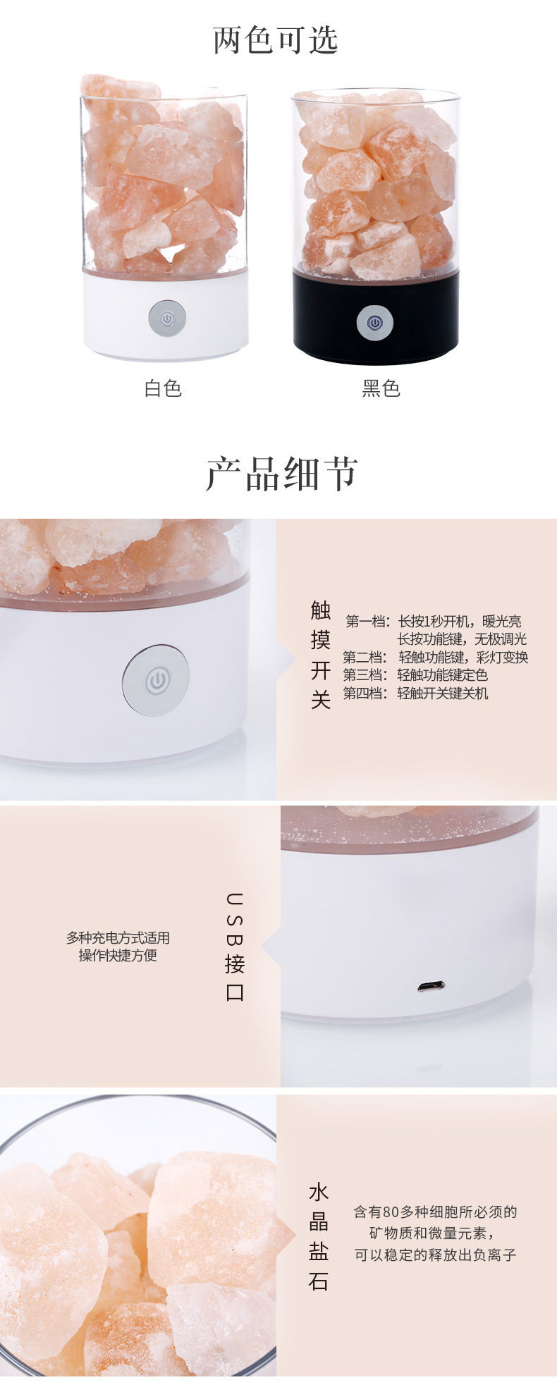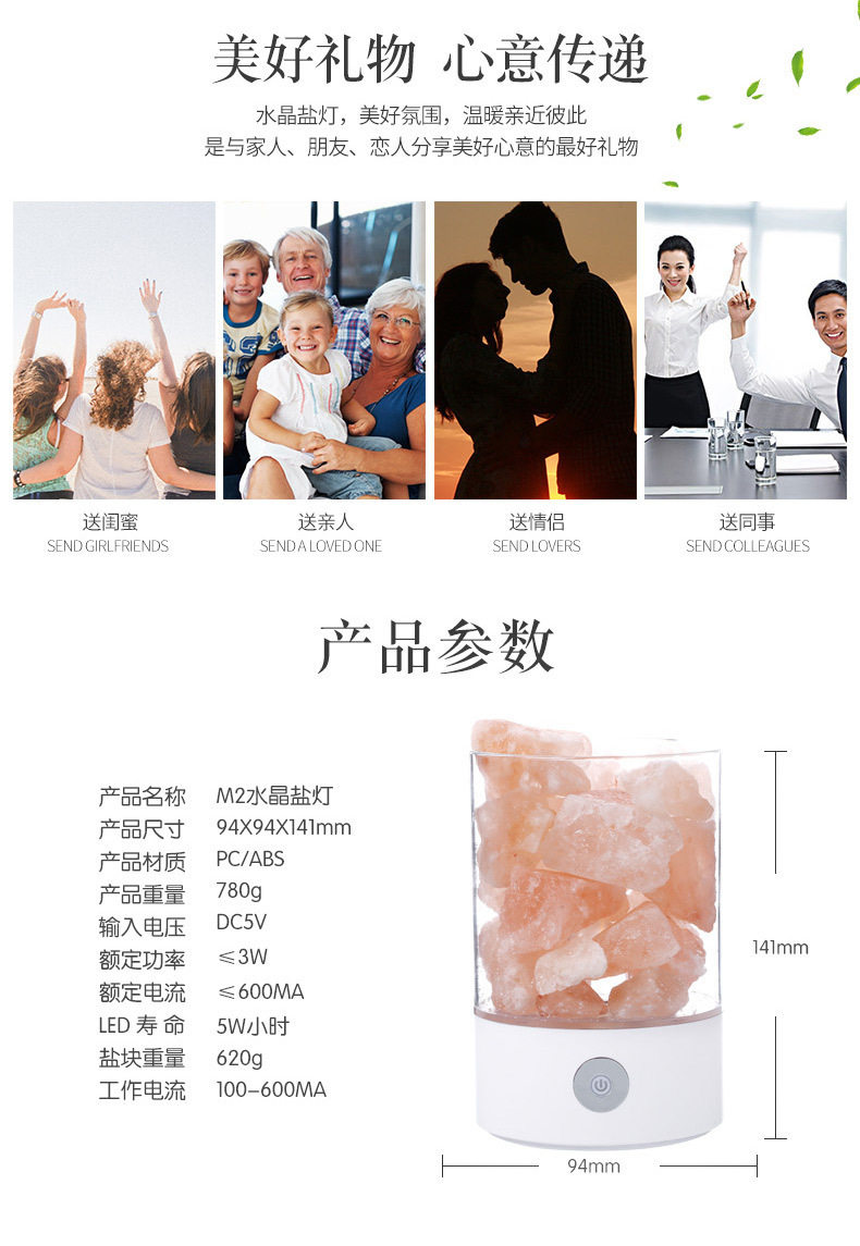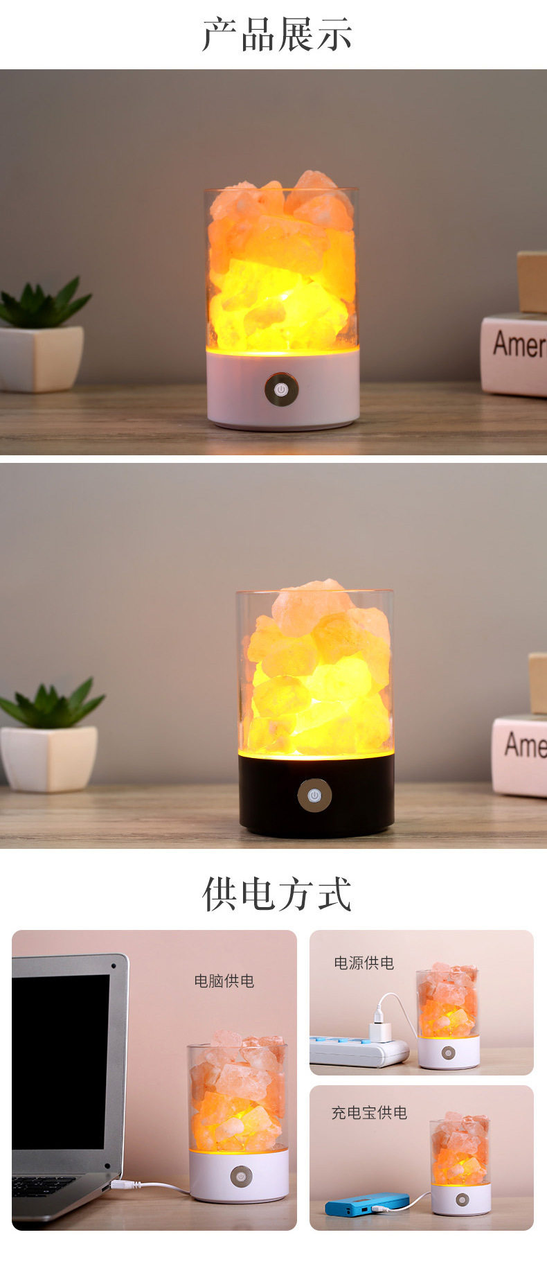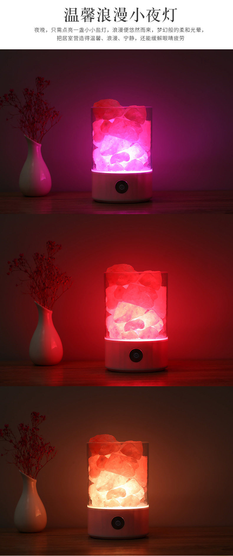 Creative Himalayan Crystal Salt Lamp Negative Ion Salt Mineral USB Night Light Bedroom Sleep Companion Table Lamp Creative Ornament