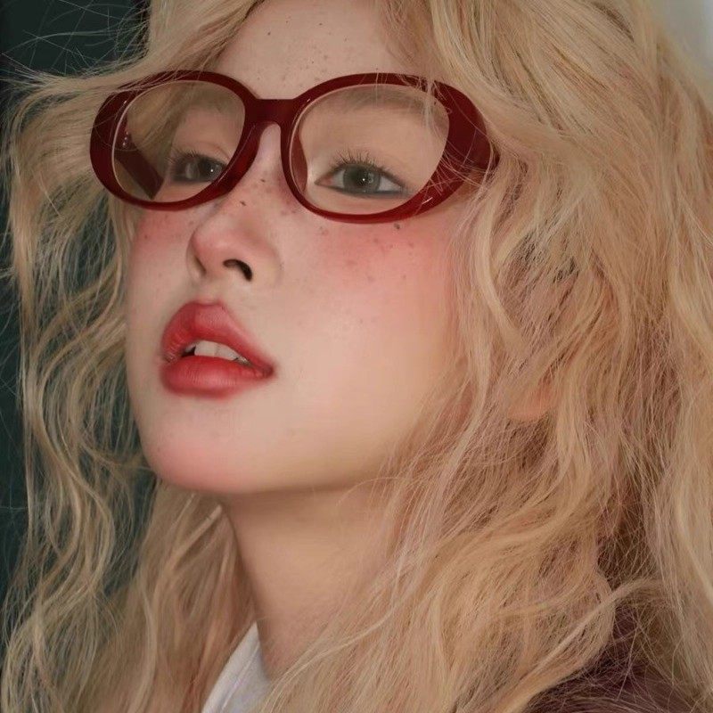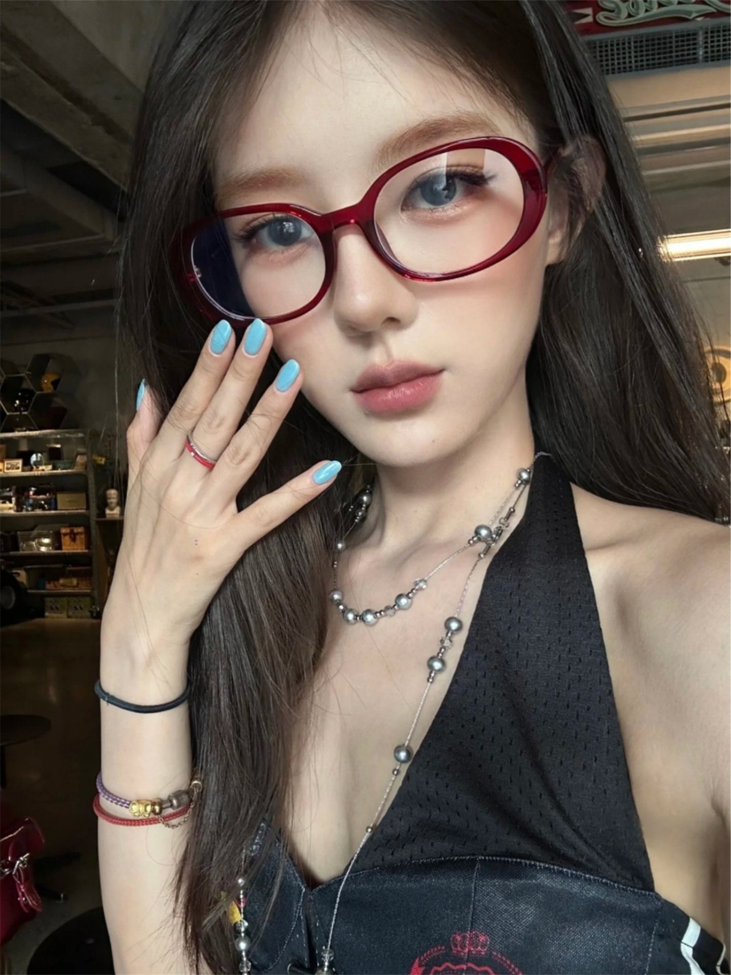 Ankesela Red Myopia Glasses for Women Retro Oval Cat Eye Y2K Asian Sexy Pure Lust Style Plain Glasses