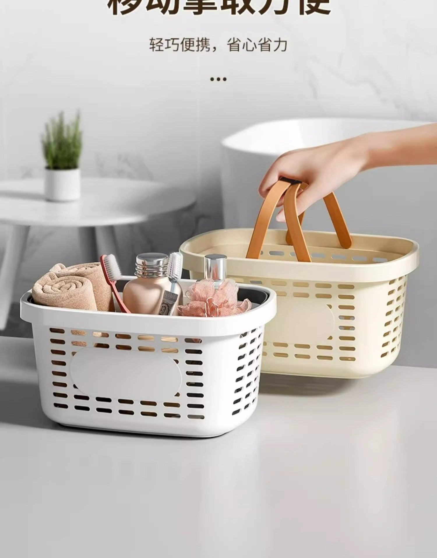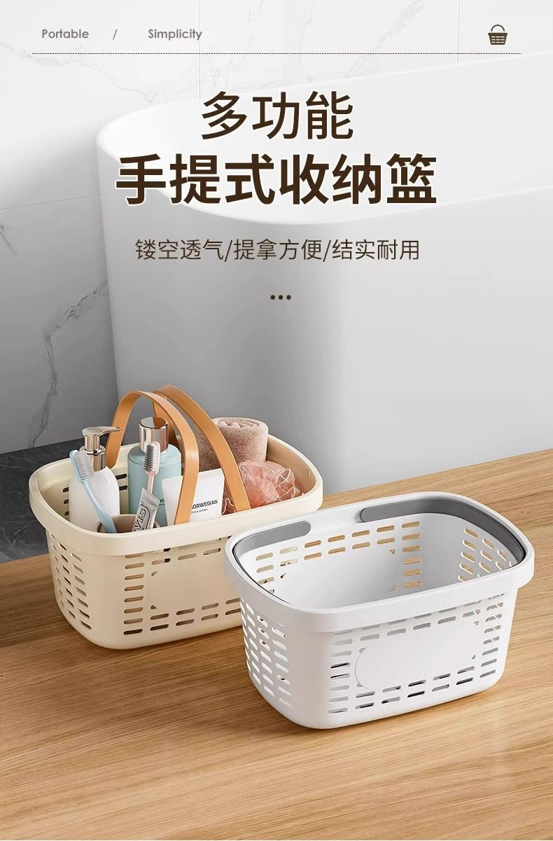 Portable Bath Basket Plastic Multifunctional Bathroom Toiletries Draining Storage Basket Hollow Large Open Storage Basket