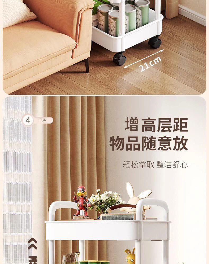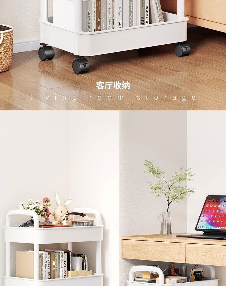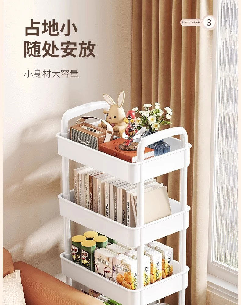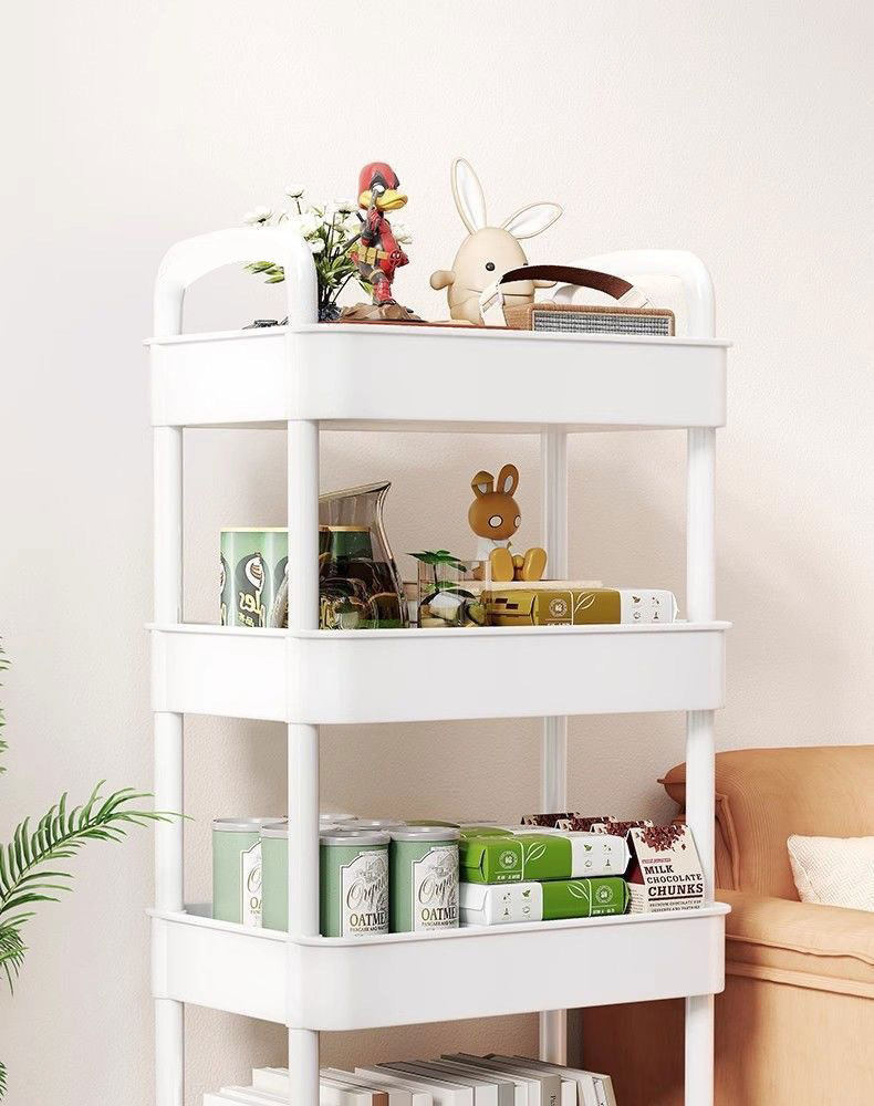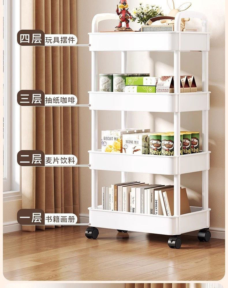 Household Small Cart Storage Rack White Plastic Multi-layer Storage Rack Gap Storage Rack Living Room Snack Storage Rack