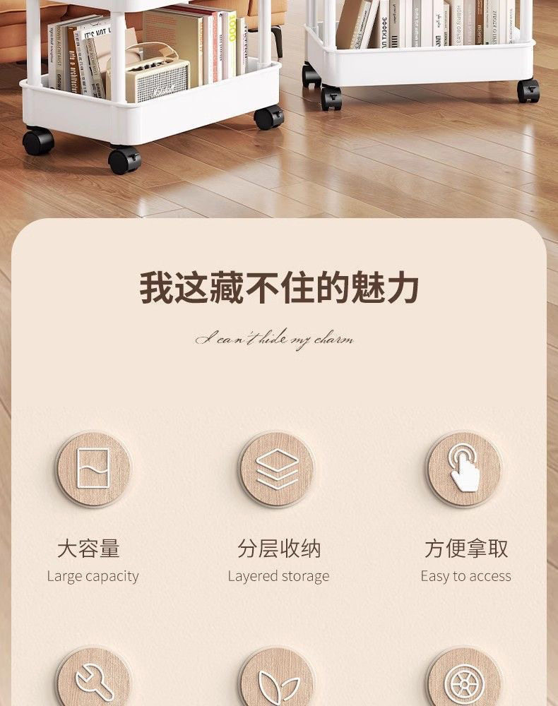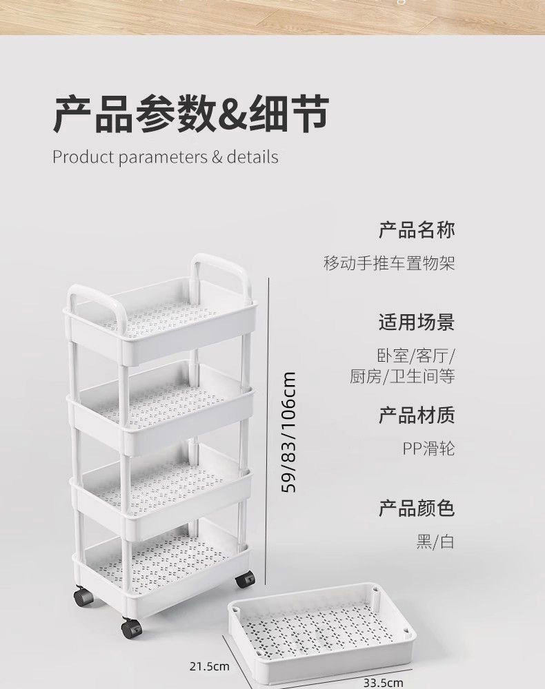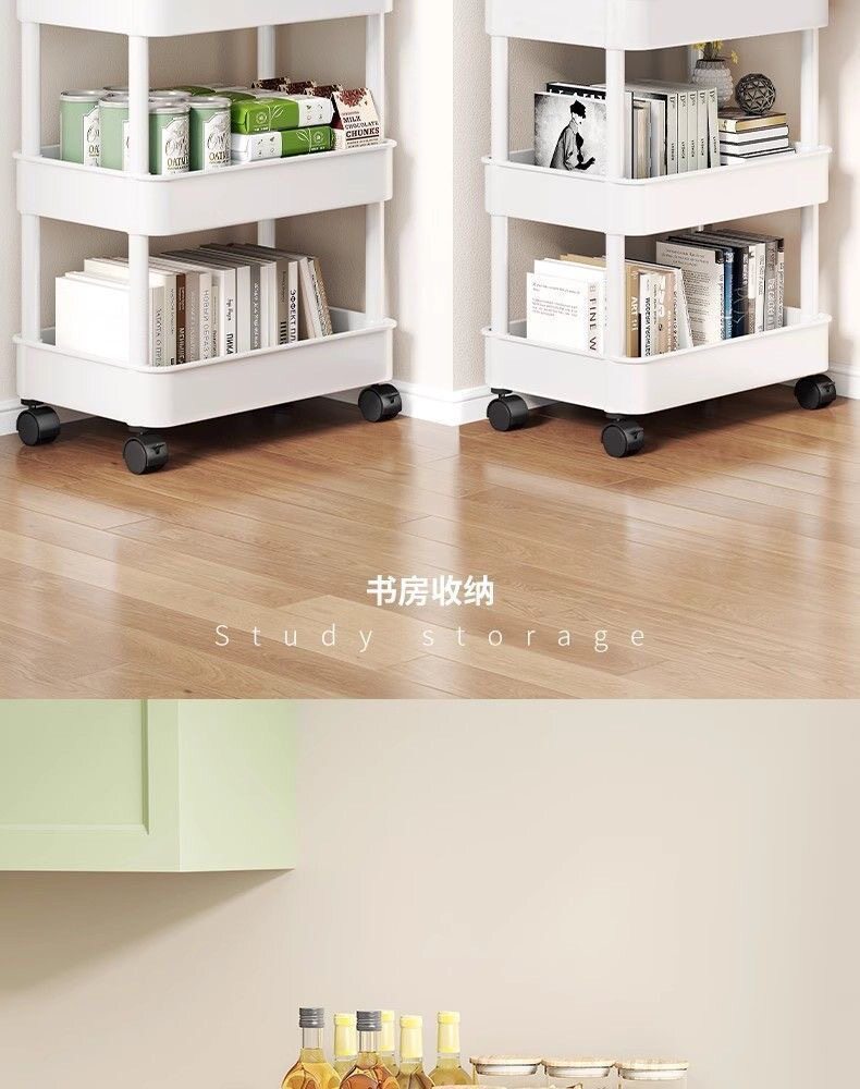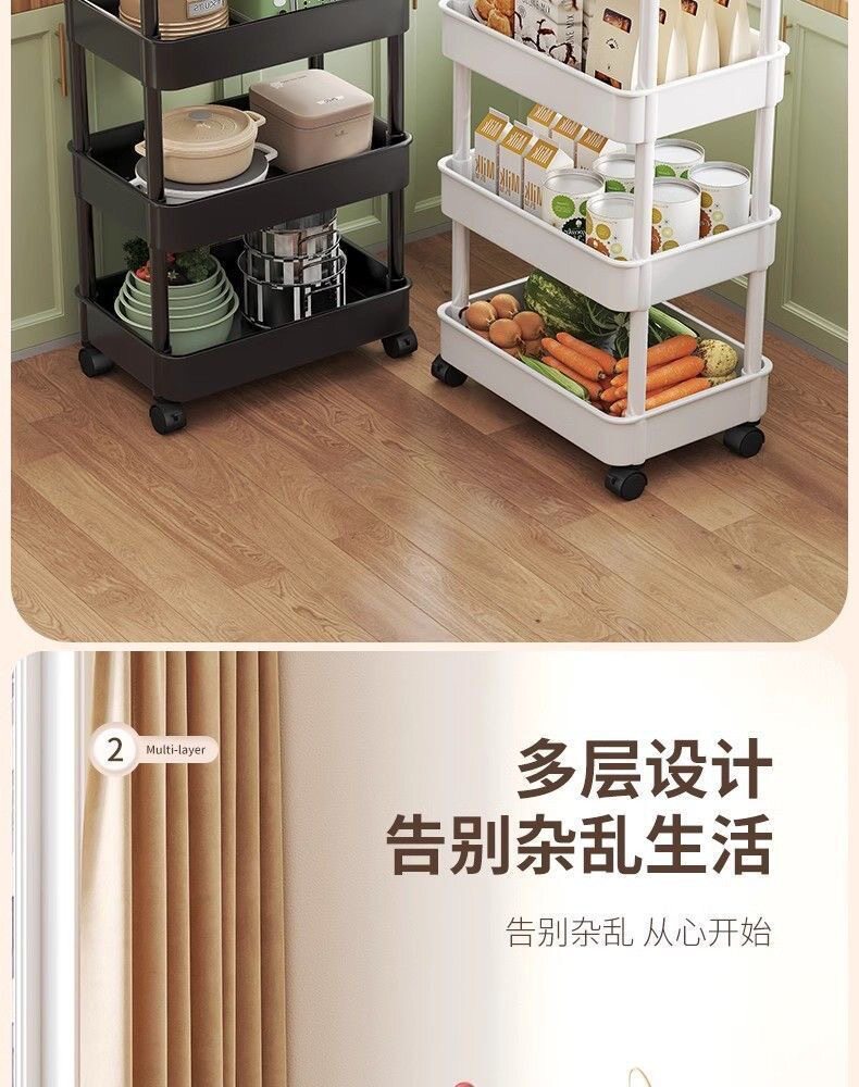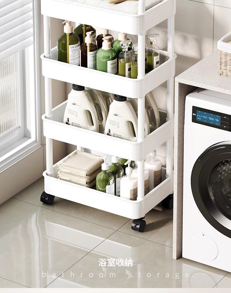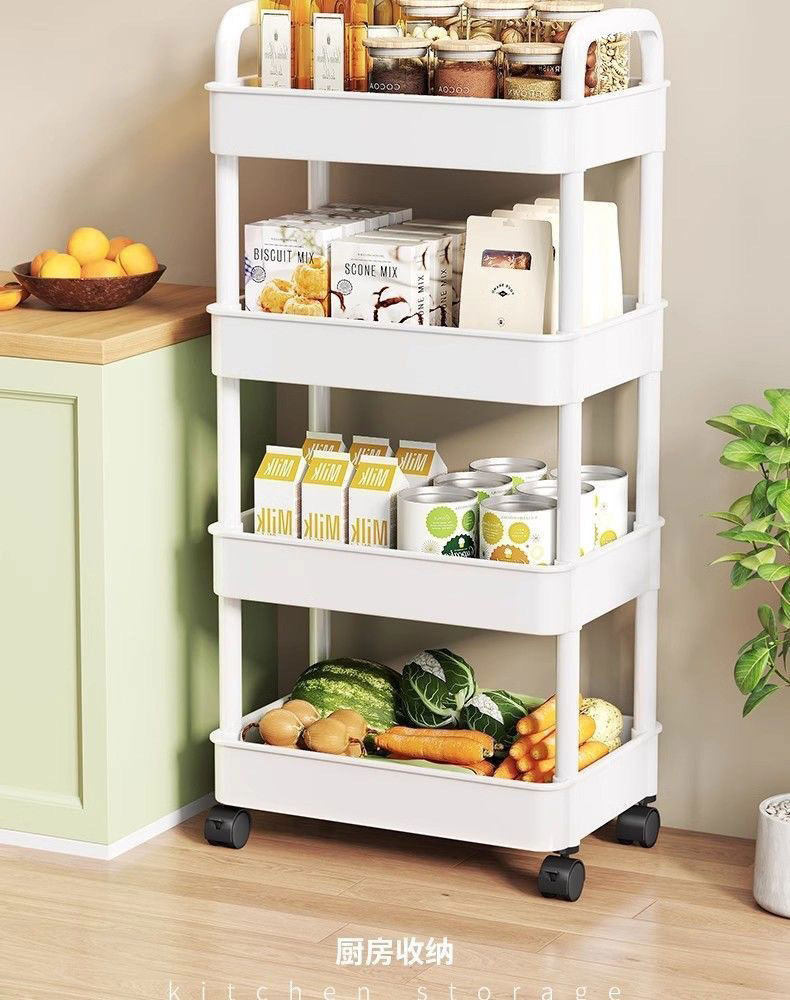 Household Small Cart Storage Rack White Plastic Multi-layer Storage Rack Gap Storage Rack Living Room Snack Storage Rack