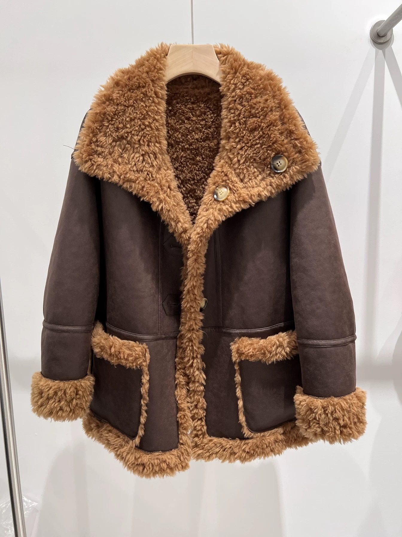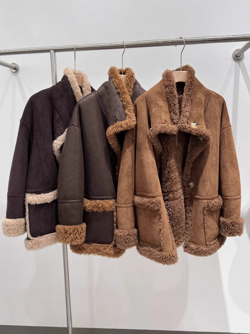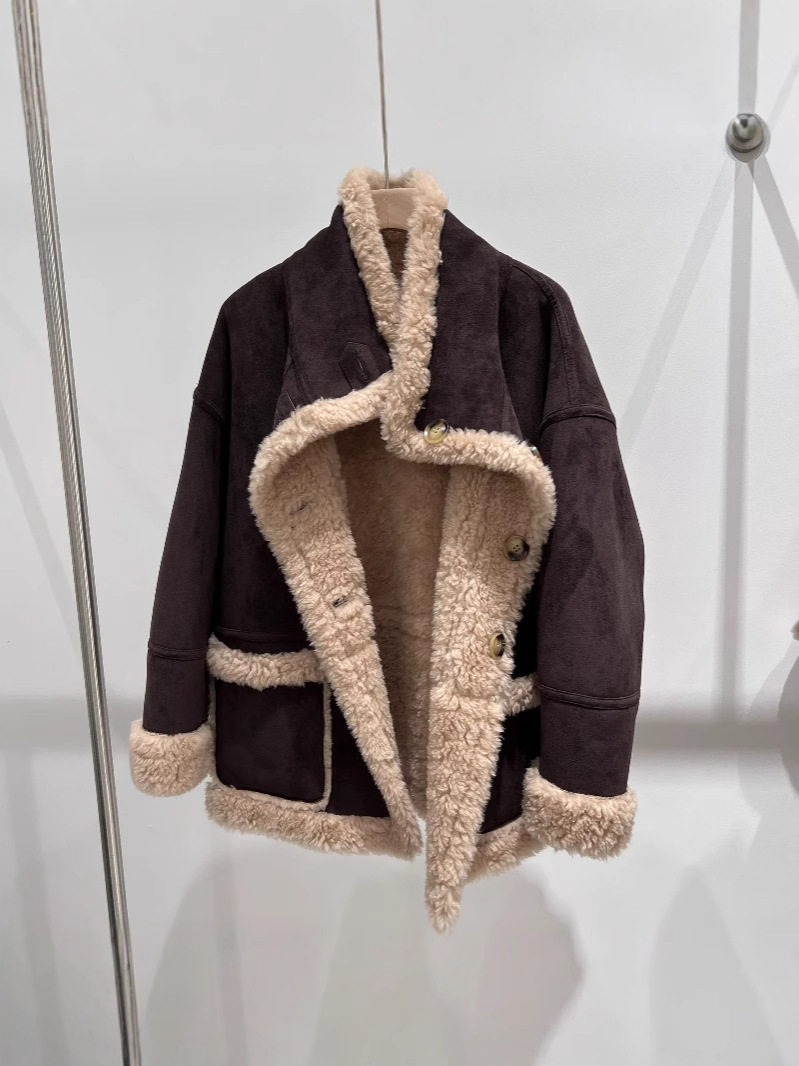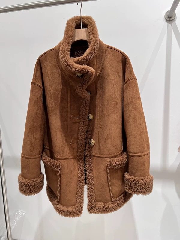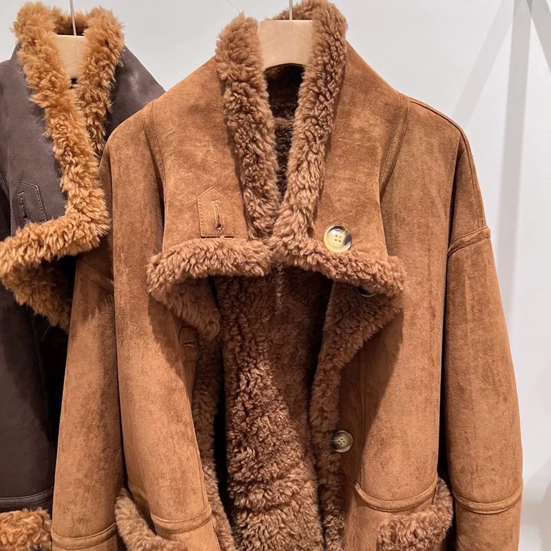 "William Castle" 2024 Full Wool Fur Coat Suede Fur One Sheep Shearer Mid-length Coat for Women