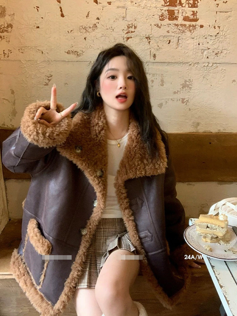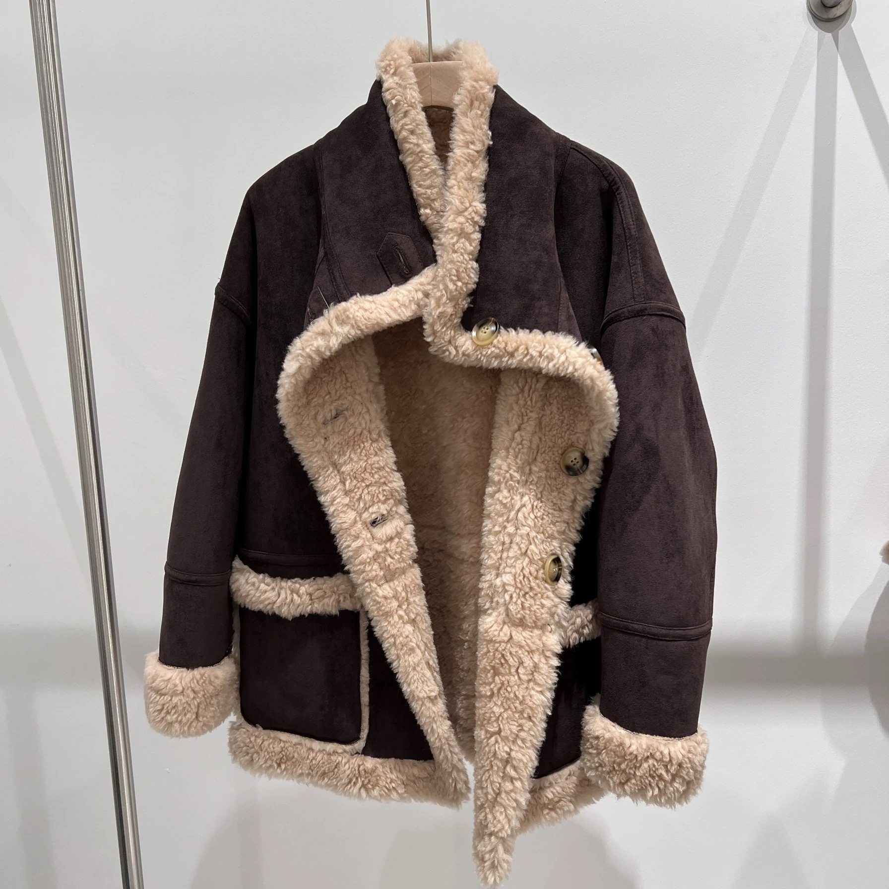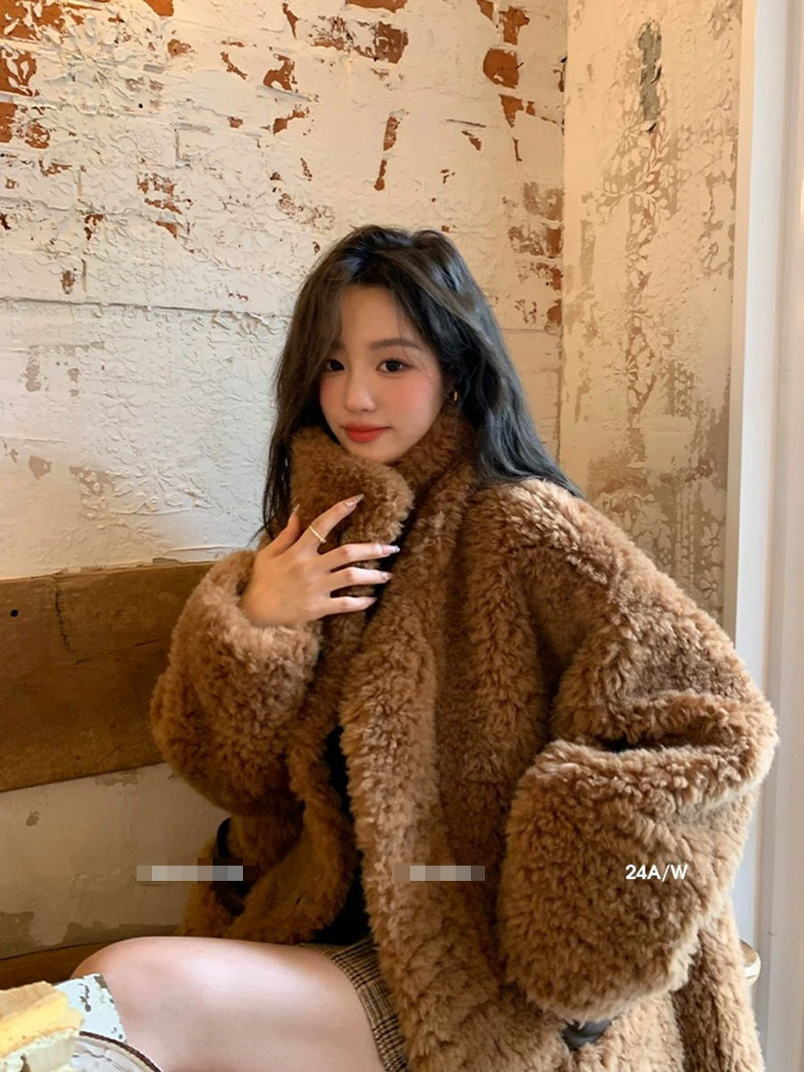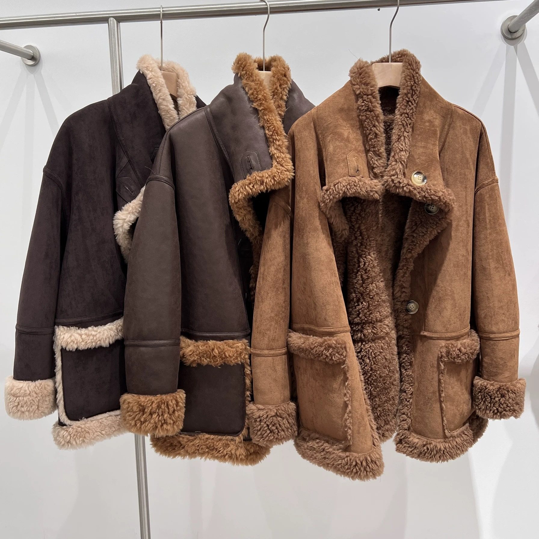 "William Castle" 2024 Full Wool Fur Coat Suede Fur One Sheep Shearer Mid-length Coat for Women
