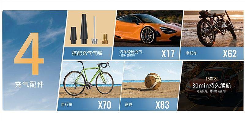 | Additional functions | Lighting,Tire pressure gauge,Warning light,Usb charging |