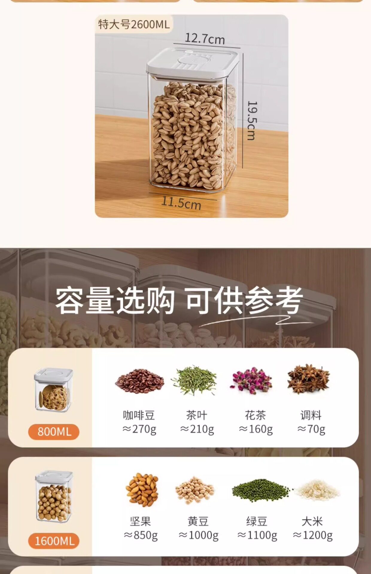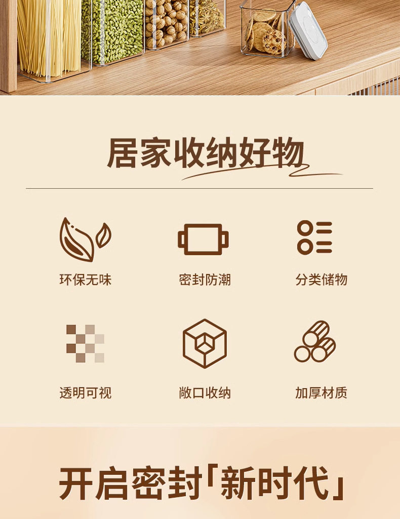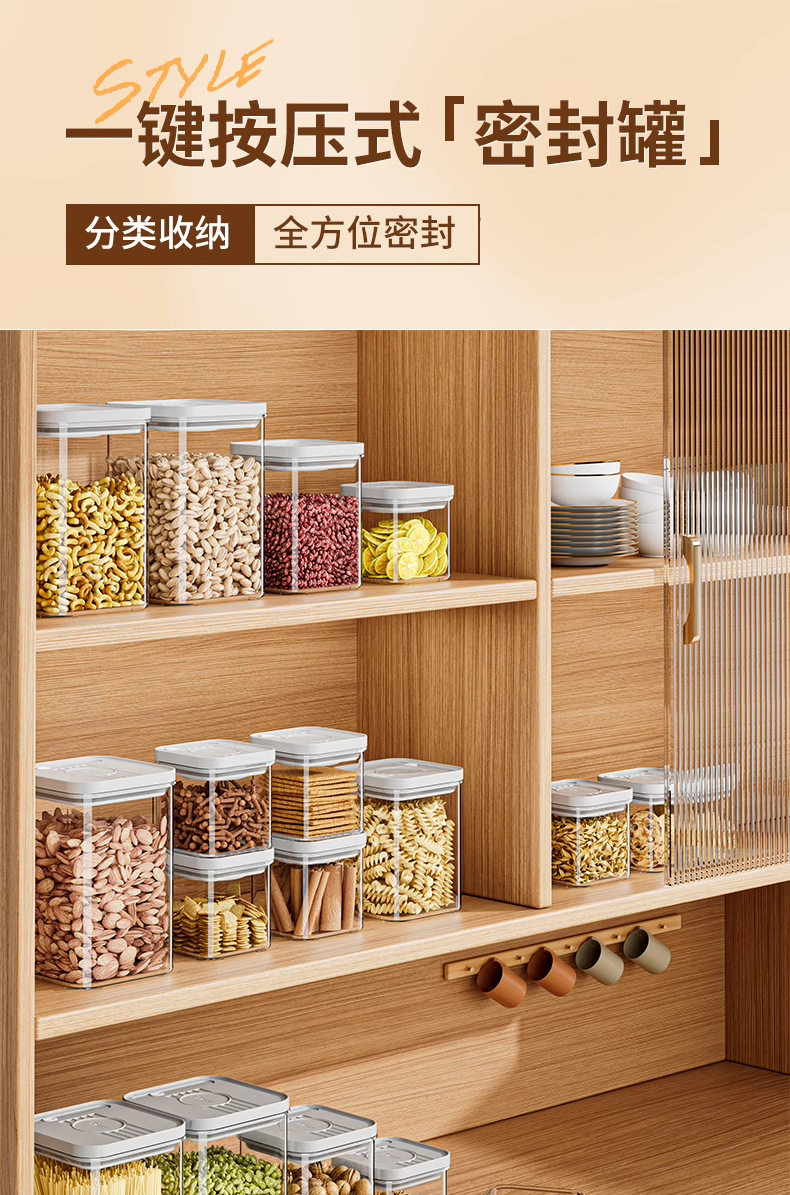 Kitchen Push-Type Sealed Jar Grains Food-Grade Storage Box Snacks Spices Moisture-Proof Plastic Storage Jar