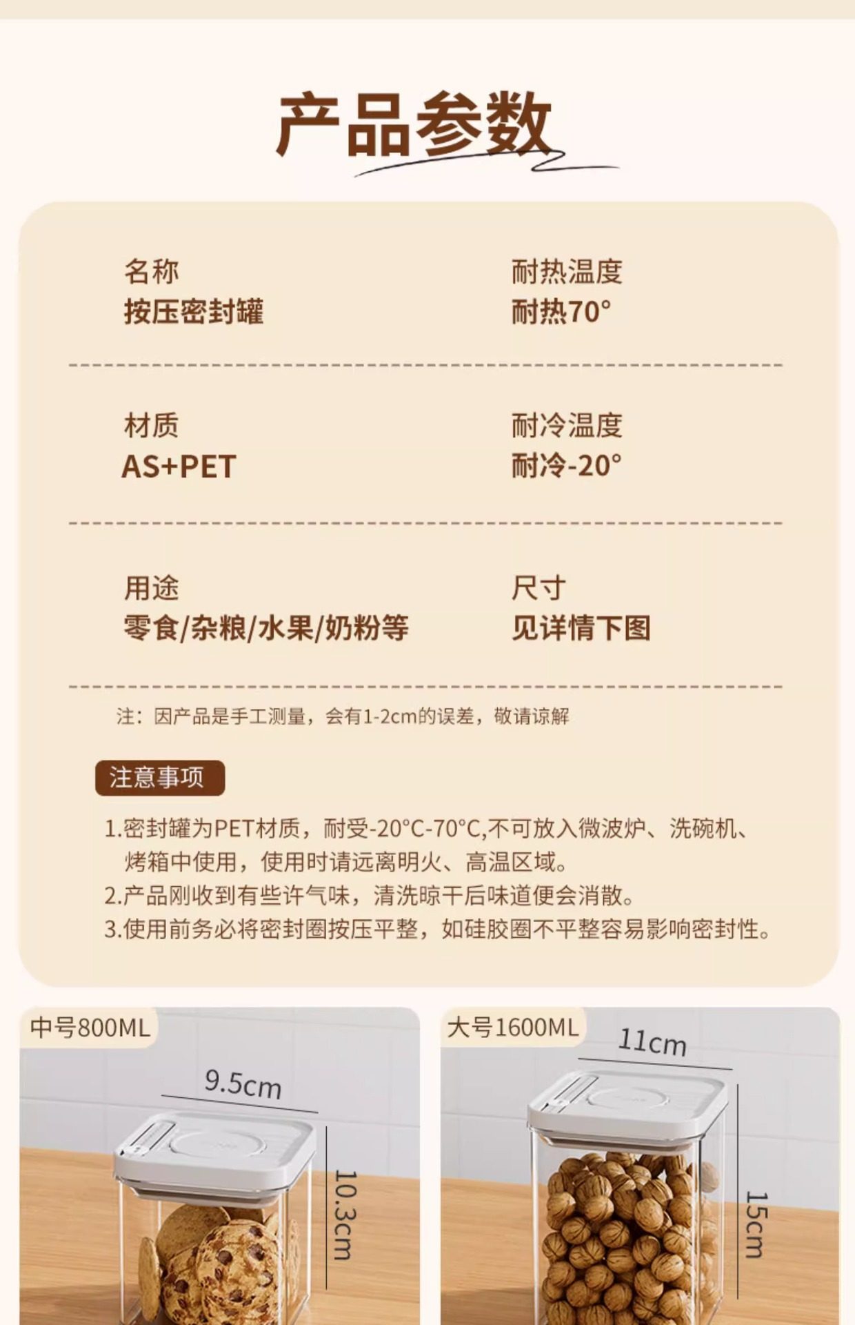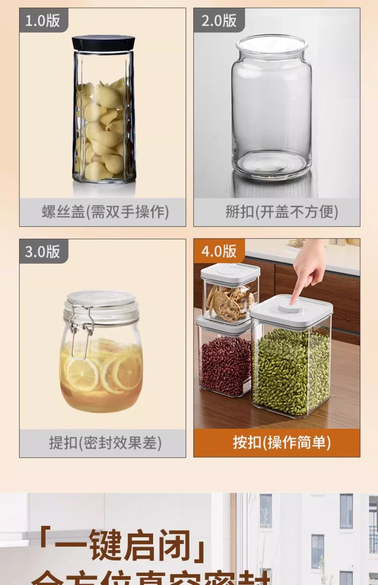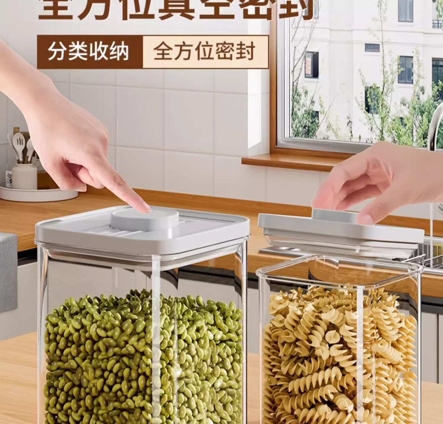 Kitchen Push-Type Sealed Jar Grains Food-Grade Storage Box Snacks Spices Moisture-Proof Plastic Storage Jar