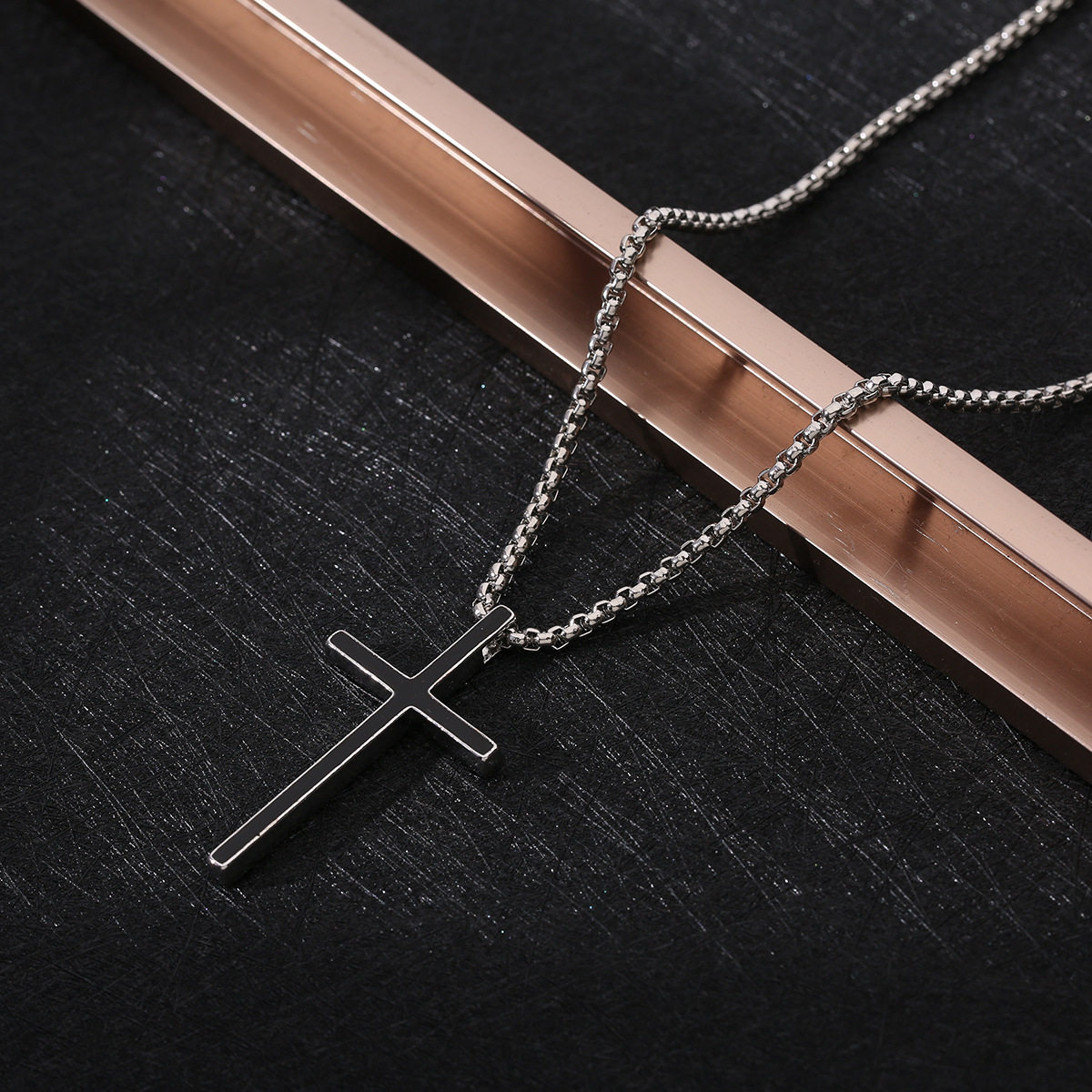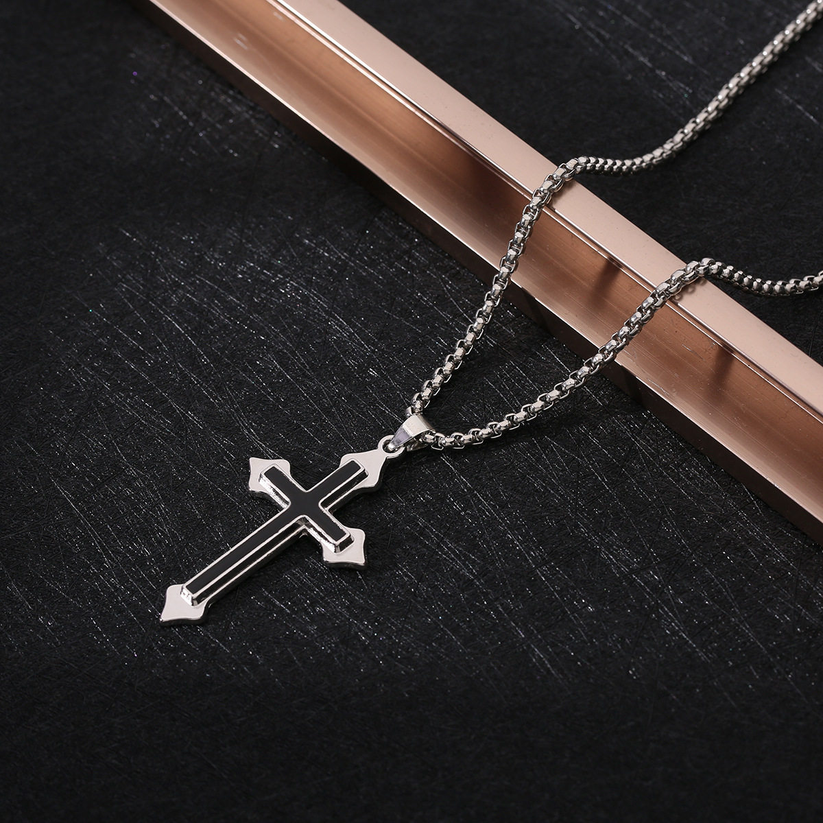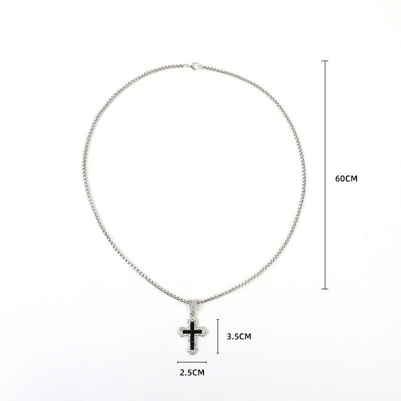 Cross-Border Cross Necklace Hip-Hop Style Zircon Pendant Jewelry Titanium Steel Versatile Choker Personalized Sparkling Jewelry Wholesale