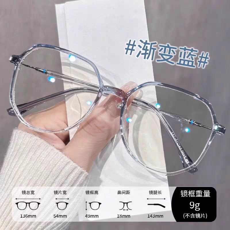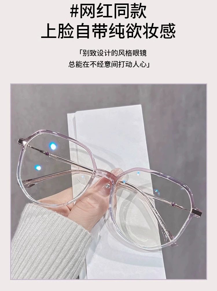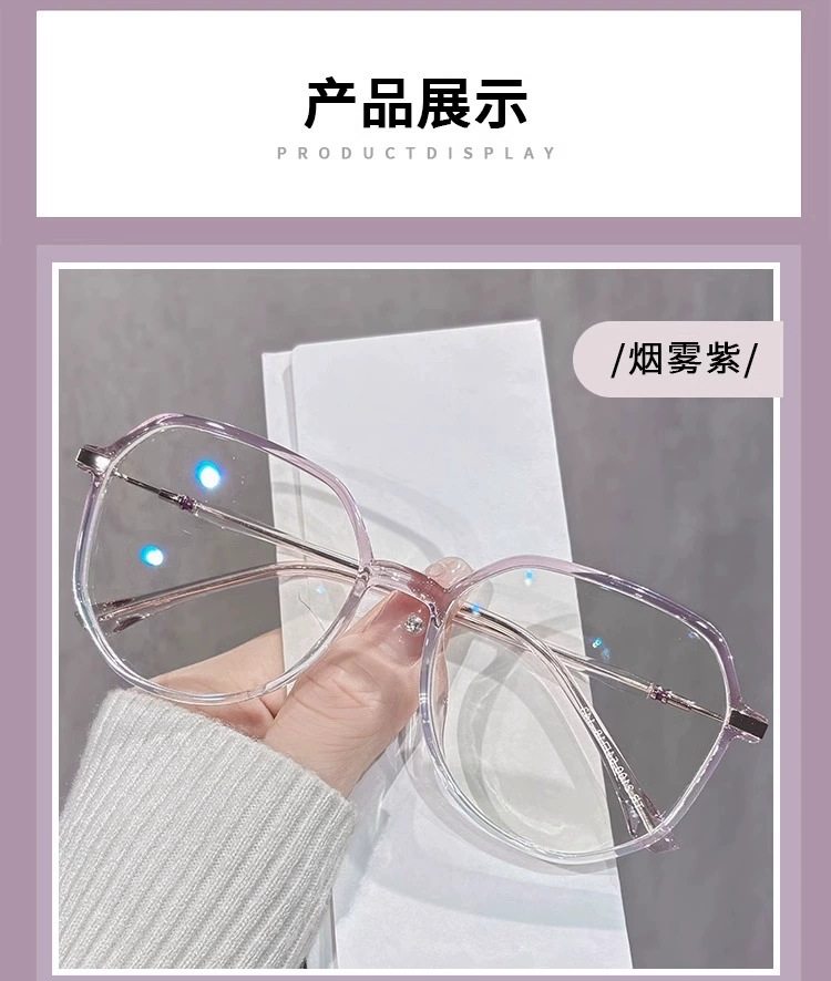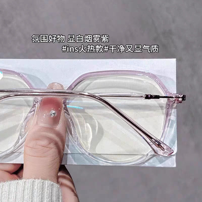 2024 new smoke purple glasses anti-blue light big frame plain look thin anti-blue light frame can be equipped with myopia degree