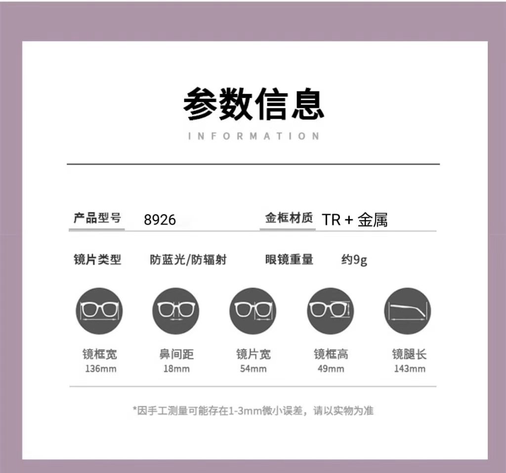 | Frame color | Smoke purple,Gradient blue,Cool gray,Transparent white,Glossy black frame |