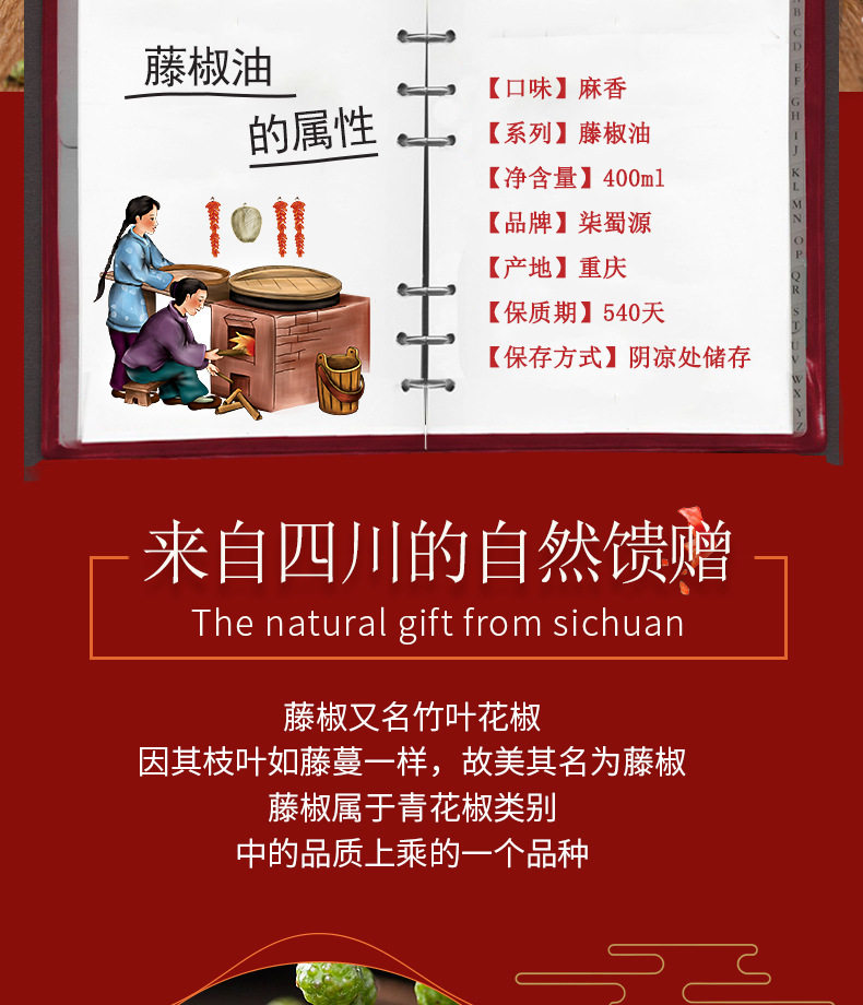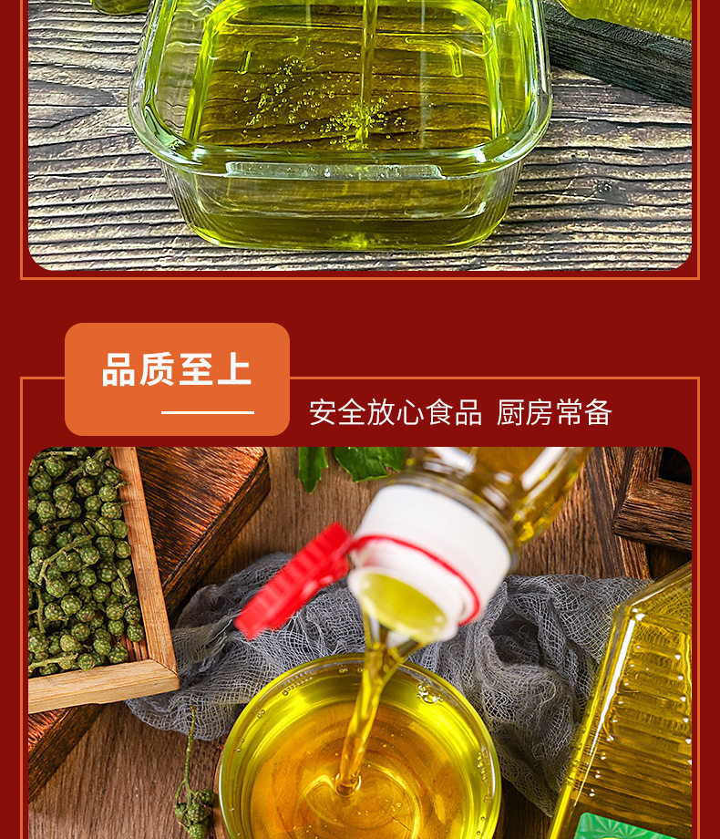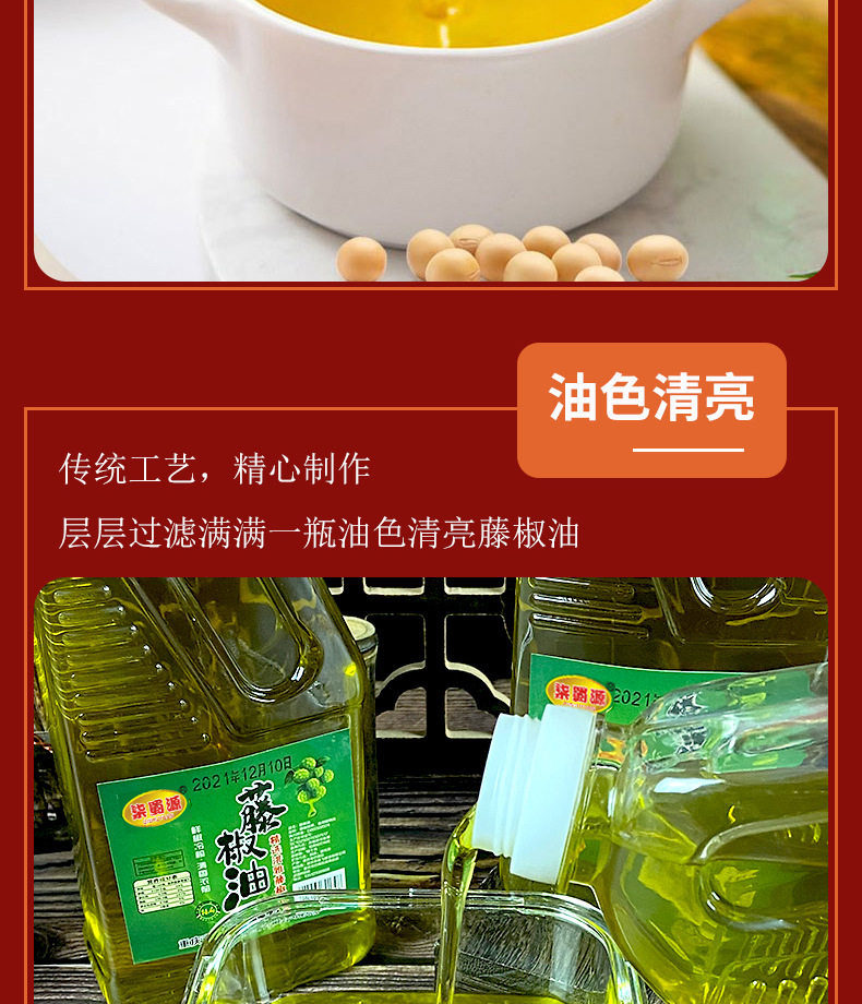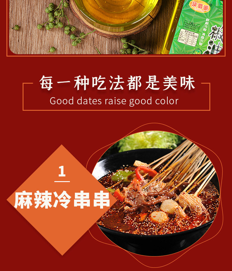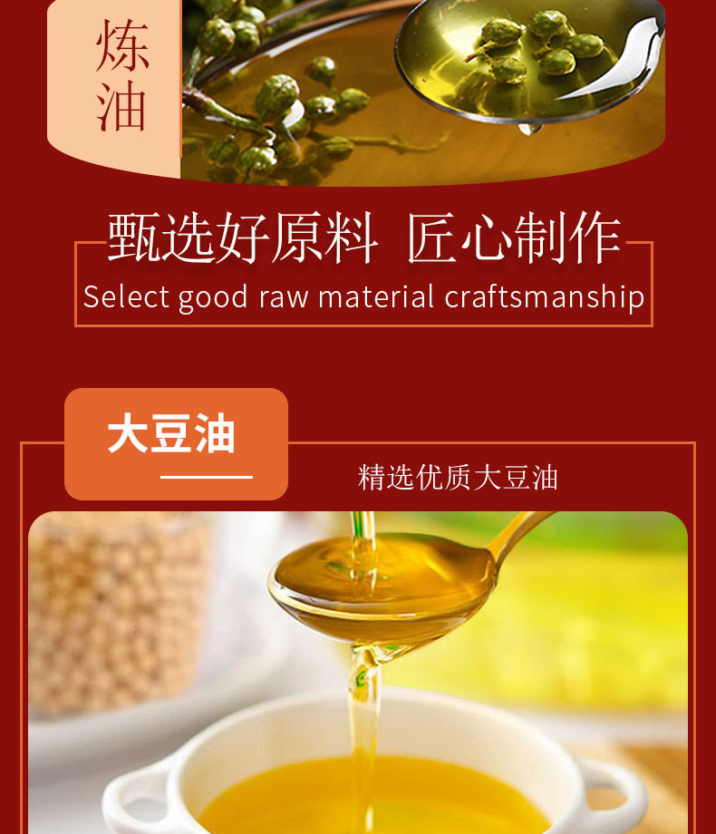 | Packaging specifications | Tian xianju pepper oil 125ml,Tian xianju rattan pepper oil 125ml,Qianjiao each flavor (sichuan peppercorn oil) 400ml,Qishuyuan (vine pepper oil) 400ml,Qishuyuan (fresh pepper oil) 400ml,Qishuyuan (sesame sesame oil) 400ml,Qishuyuan (vine pepper oil) 2.5l,Qishuyuan (vine pepper oil) 5l,Qishuyuan (green pepper oil) 2.5l,Qishuyuan (green pepper oil) 5l,125ml qishuyuan rattan pepper oil 2.3 hemp,125ml qishuyuan green pepper oil 2.3 hemp,400ml qishuyuan rattan pepper oil 2.3 hemp,400ml qishuyuan green pepper oil 2.3 hemp,2.5l qishuyuan rattan pepper oil 2.3 hemp,2.5l qishuyuan green pepper oil 2.3 hemp,5l qishuyuan red pepper oil 2.3 hemp,5l qishuyuan rattan pepper oil 2.3 hemp,5l qishuyuan green pepper oil 2.3 hemp,Qishuyuan (chili red oil) 5l,Qishuyuan (sesame sesame oil) 5l,Qianjiao each flavor (sichuan pepper oil) 400ml,Qianjiao each flavor (sichuan pepper oil) 2.5l,Qianjiao each flavor (sichuan pepper oil) 5l,Qianjiao each flavor (vine pepper oil) 2.5l,Qianjiao each flavor (vine pepper oil) 5l,Qianjiao each flavor (sichuan peppercorn oil) 2.5l,Qianjiao each flavor (sichuan pepper oil) 5l,Qishuyuan (vine pepper oil) 2.5l (medium hemp),Qishuyuan (vine pepper oil) 5l (medium hemp),Qishuyuan (sichuan pepper oil) 2.5l (medium hemp),Qishuyuan (sichuan pepper oil) 5l (medium hemp),Tian xianju (vine pepper oil) 2.5l,Tian xianju (vine pepper oil) 5l,Tian xianju (sesame oil) 400ml,Tian xianju (sesame oil) 2.5l,Tian xianju (sesame oil) 5l,Tian xianju sichuan pepper oil 2.5l,Tian xianju sichuan pepper oil 5 liters,Tian xianju rattan pepper oil (very spicy) 5l |