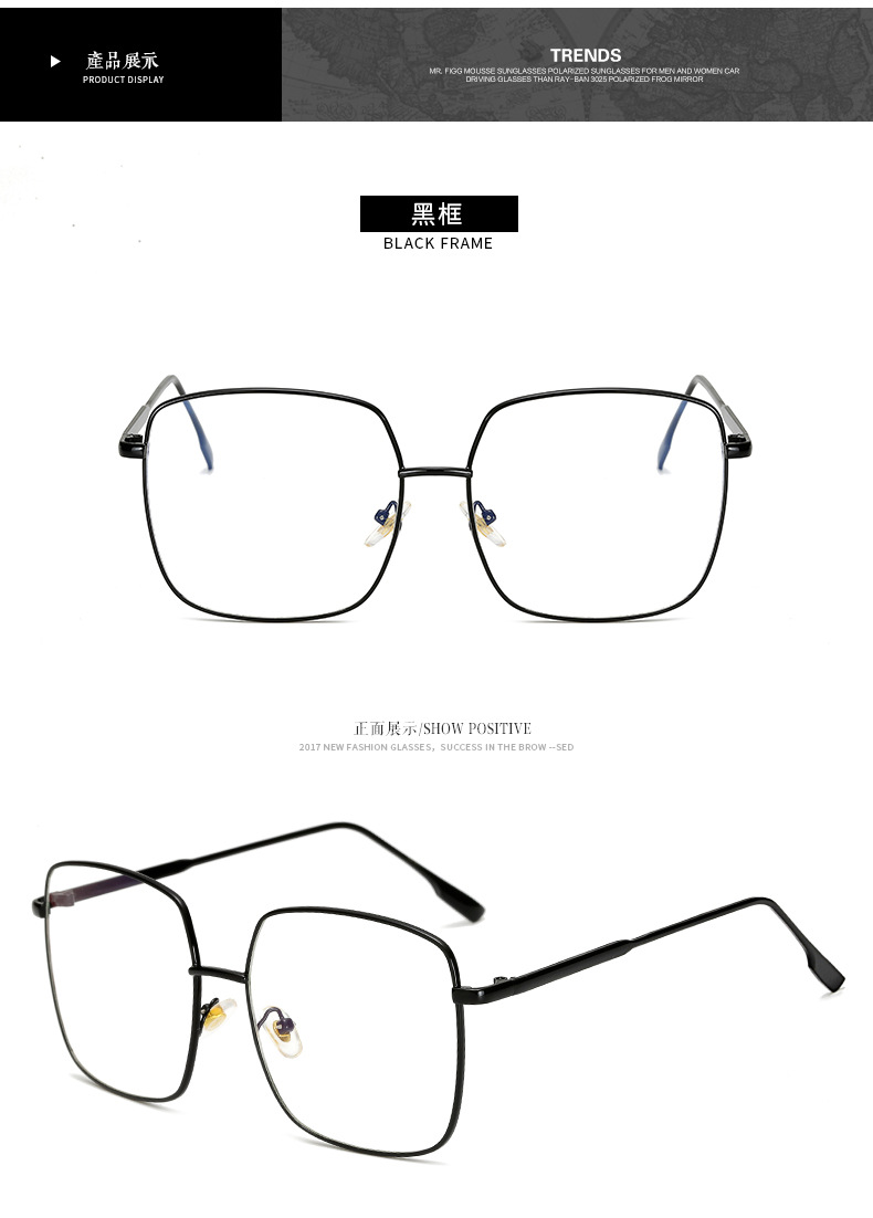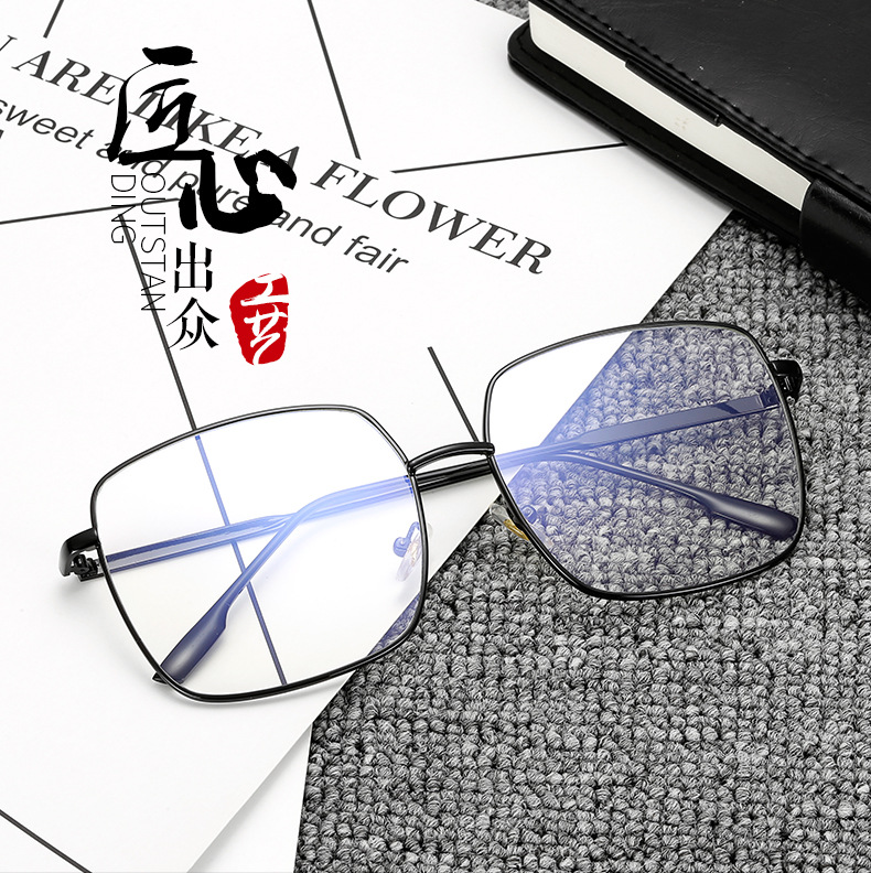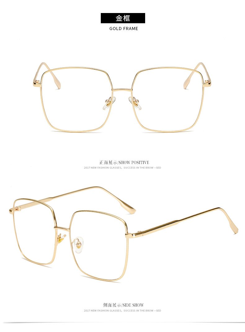 Internet Celebrity Same Style Glasses Frame for Women Harajuku Eye Frame for Men Retro Square Large Frame Metal Glasses Myopia Glasses Trendy