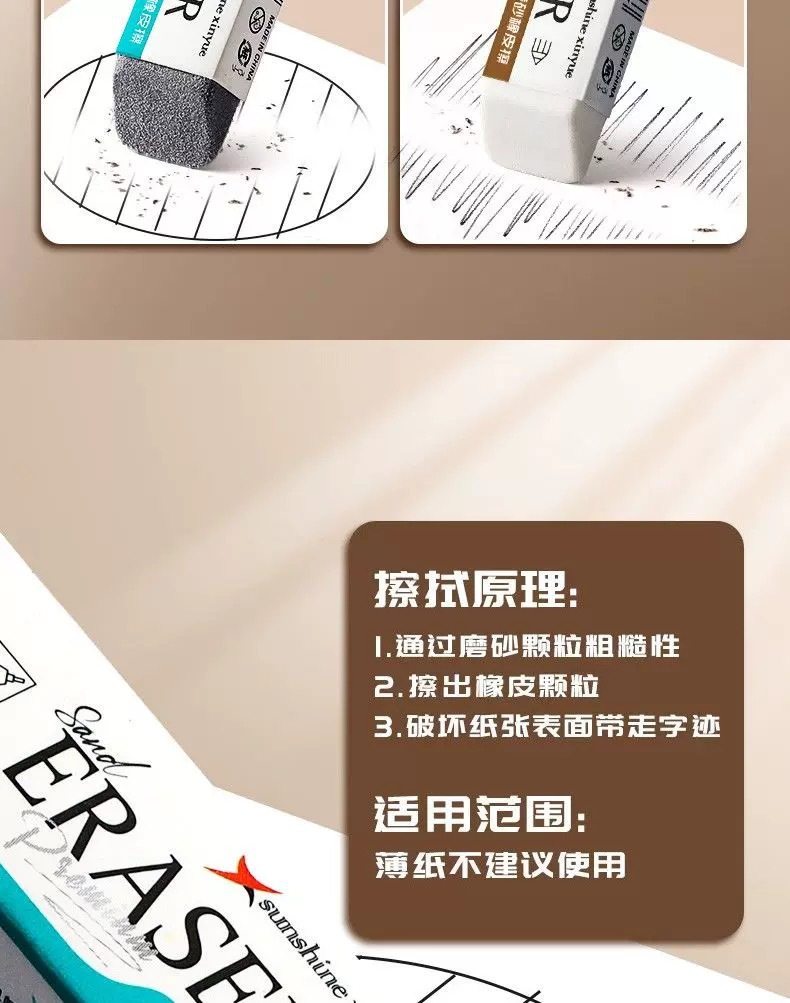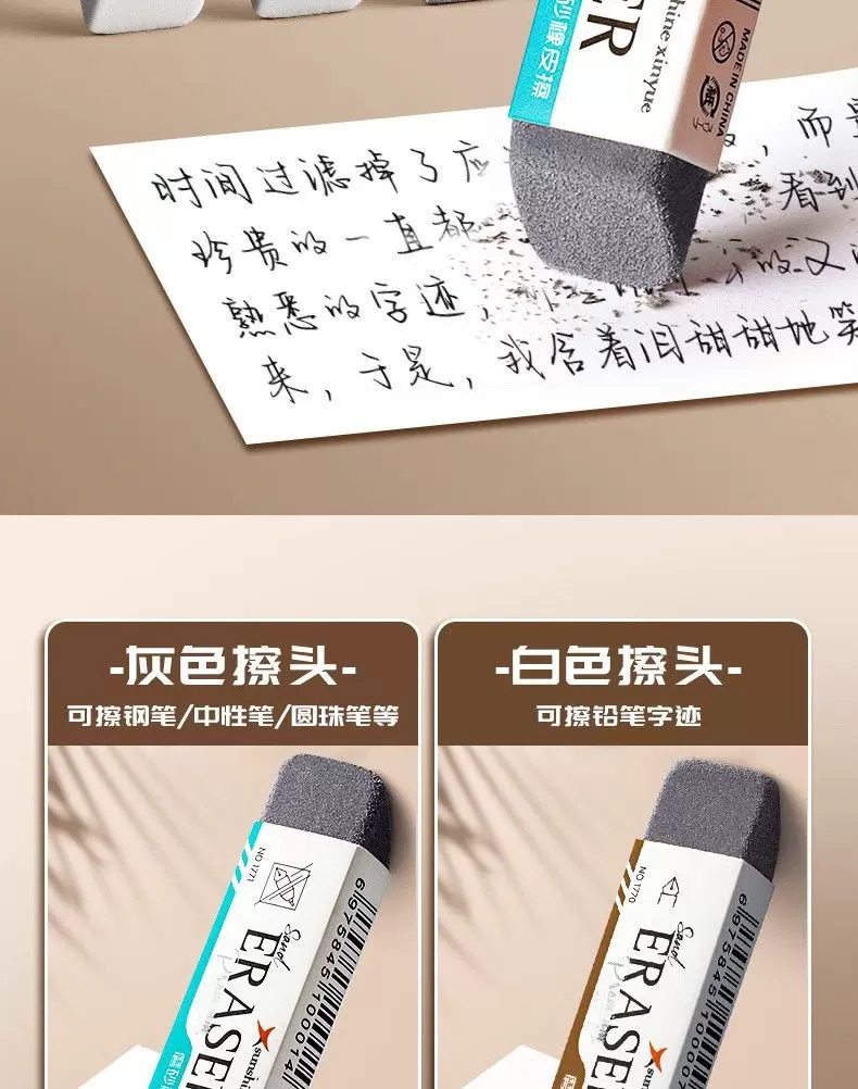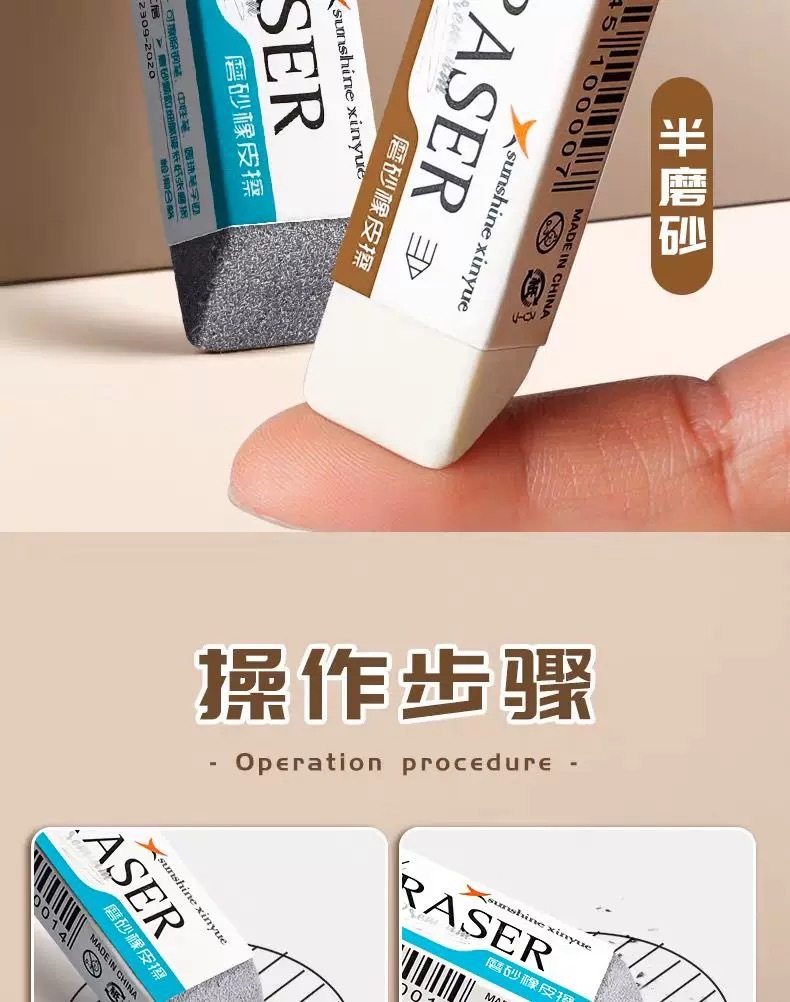 True color half sand eraser for student writing erasable pen pencil frosted double-headed dual-purpose eraser wholesale