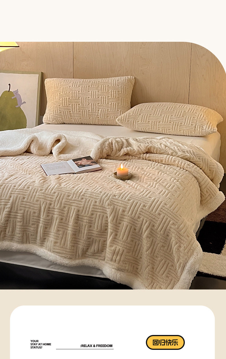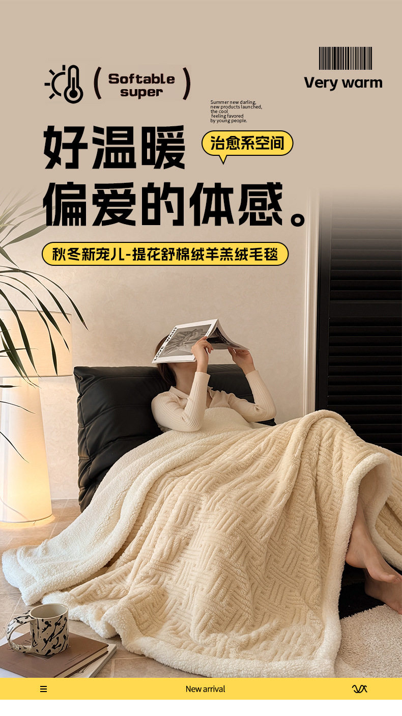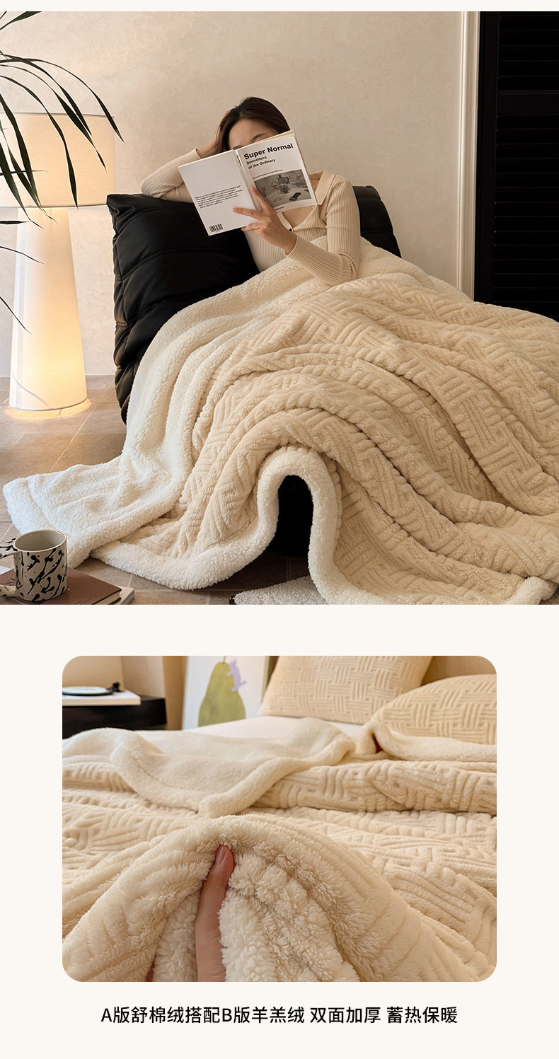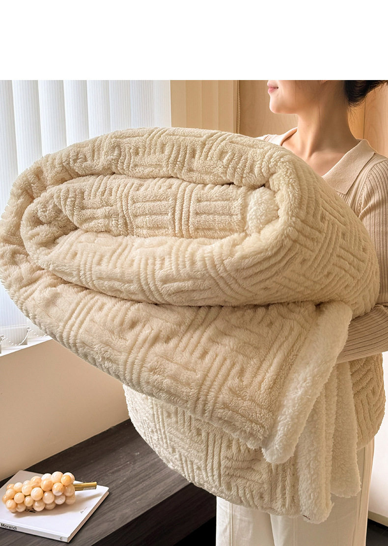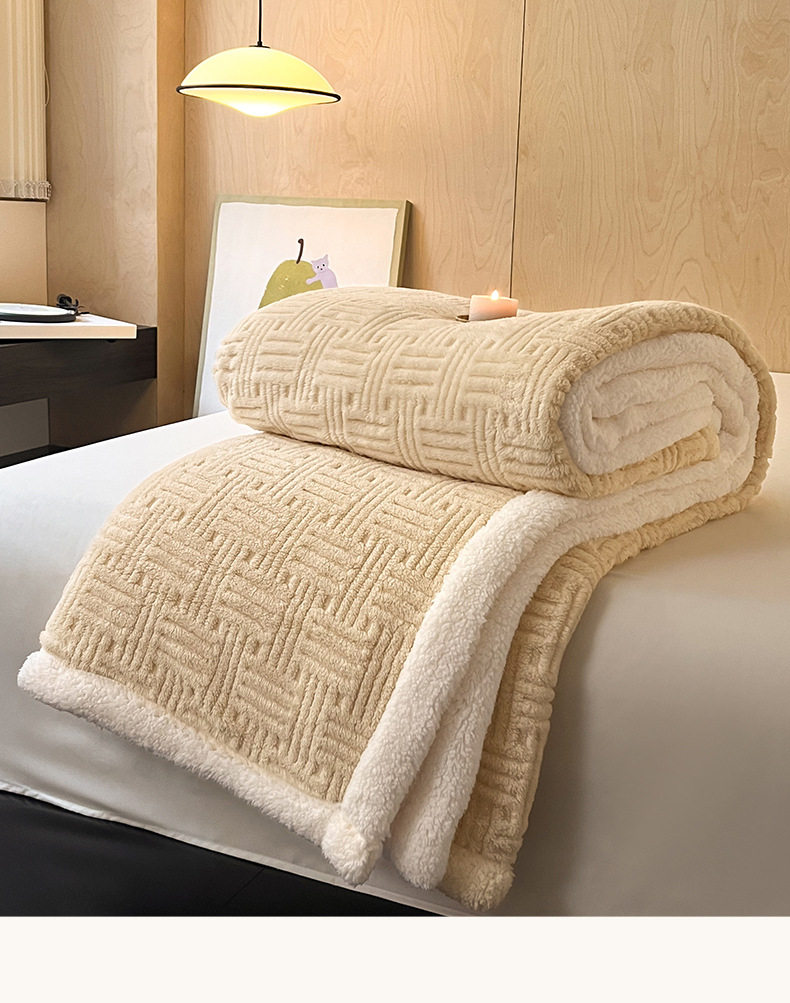 Foreign Trade New Jacquard Cotton Fleece Blanket Thickened Warm Lamb Fleece Blanket Class A Double-layer Office Nap Blanket